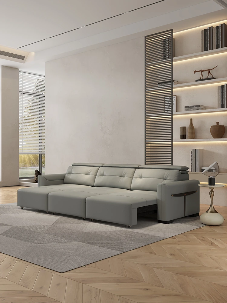 イタリアンレザー製電動マルチファンクションソファベッド - モダンでシンプルなデザイン、リビングにぴったり!自動伸縮機能で便利な二用ソファ、快適さとスタイルを両立させた一品。