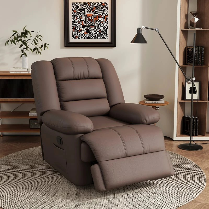 電動機能付きリクライニングチェア - ファーストクラスの快適さを実現!本革仕立ての多機能ソファで、一人の贅沢な時間をお楽しみください。おしゃれで機能的、あなたのリビングに最適です!