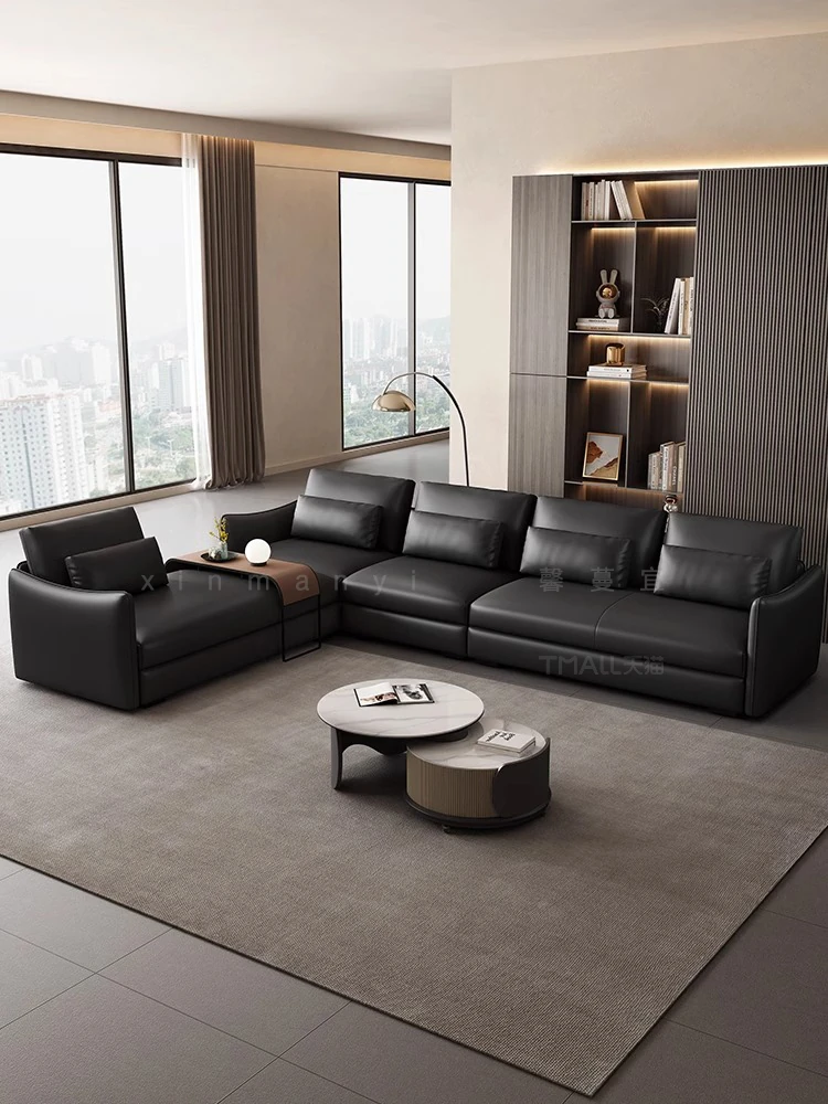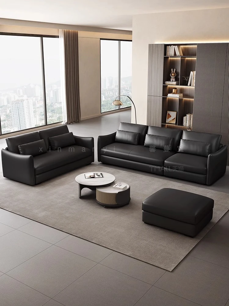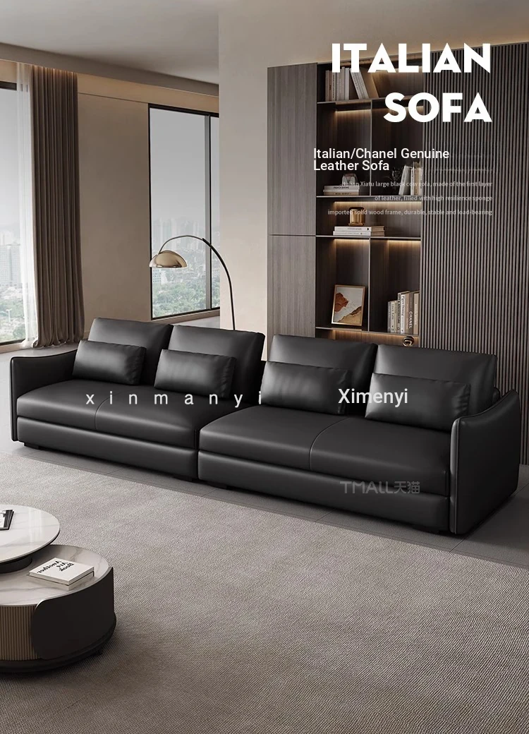 Chanel Genuine Leather Black Sofa - Italian Minimalist Design, Down-Filled Top-Grain Cowhide, Luxurious 4-Seater for Small Spaces, Perfect for Modern Living Rooms