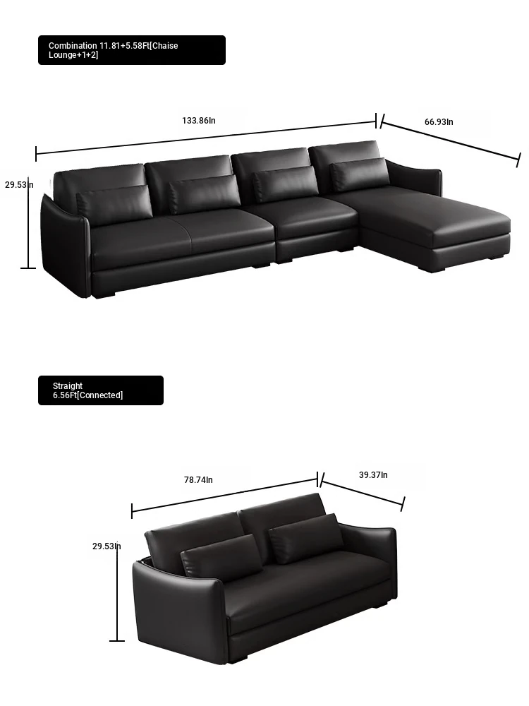 [Gaoding Original S-Class thickened Head Cowhide + Environmental-Friendly Goose Down Seat Bag Chanel Sofa] Straight Row 141.73 in