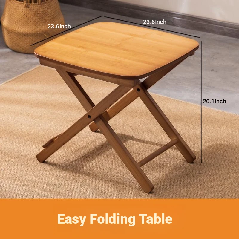 Compact Bamboo Folding Dining Table - Ideal for Small Spaces, Outdoor Use, and Easy Setup - Perfect Square Table for Balconies and Pop-up Stalls