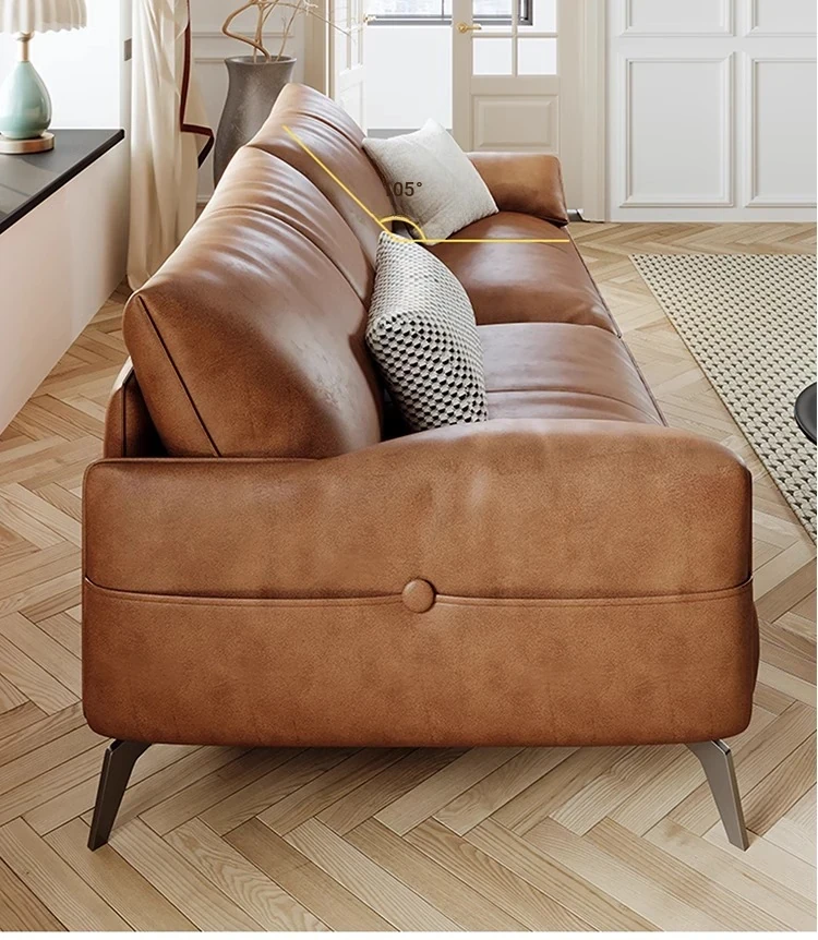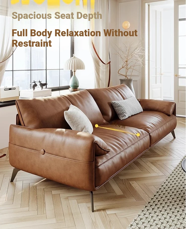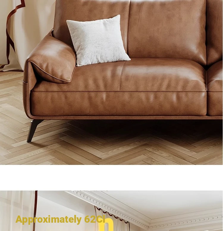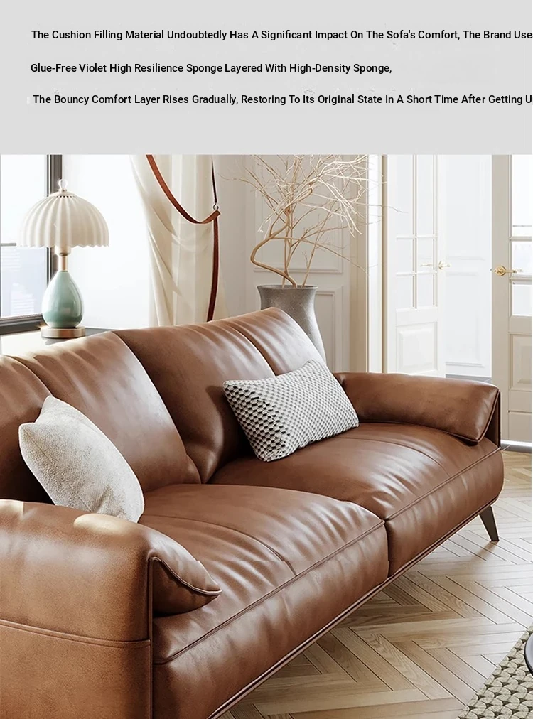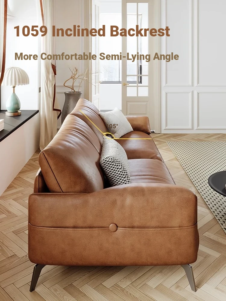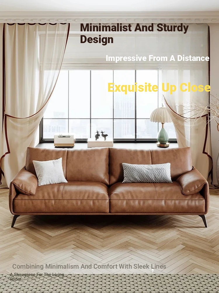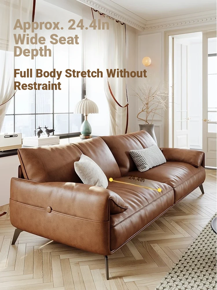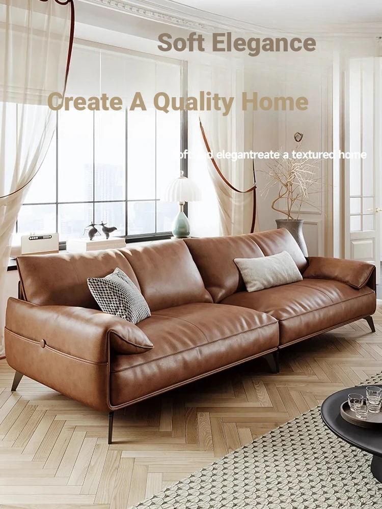 Genuine Leather Italian Minimalist Sofa – Premium Top-Grain Cowhide, Retro Brown, High Legs, Elephant Ear Design for Living Room – Perfect for Home Decor