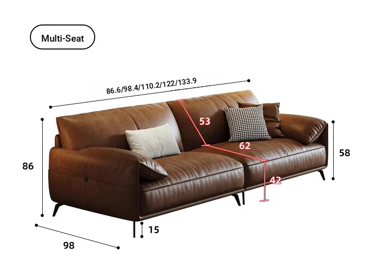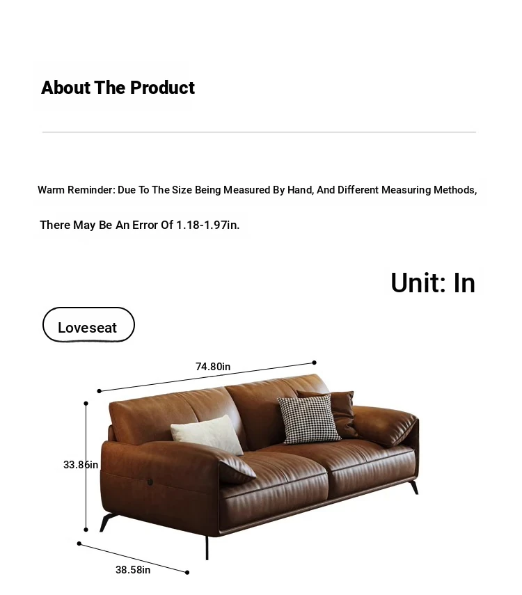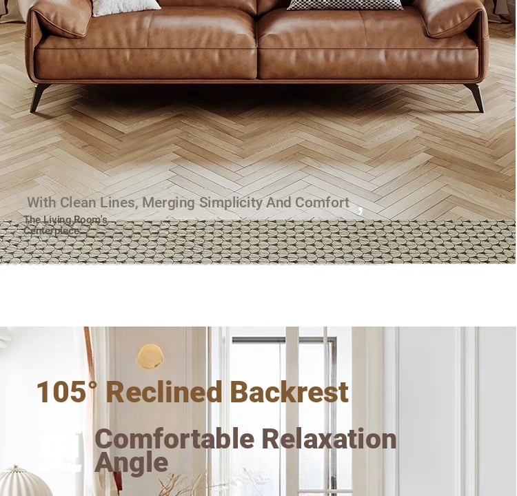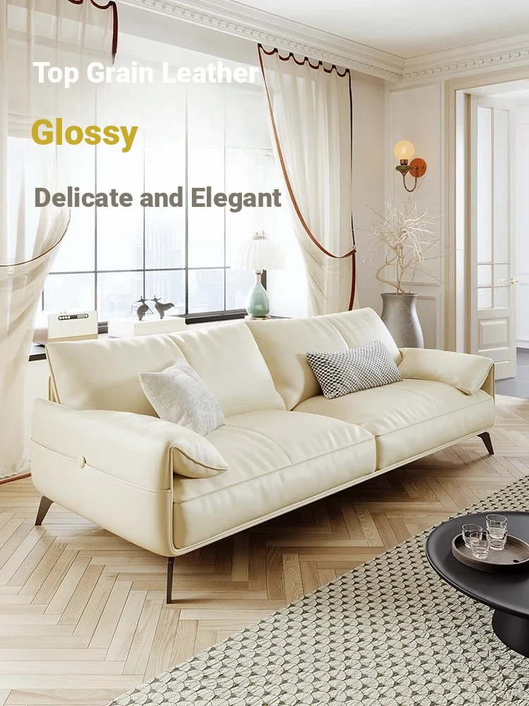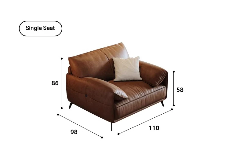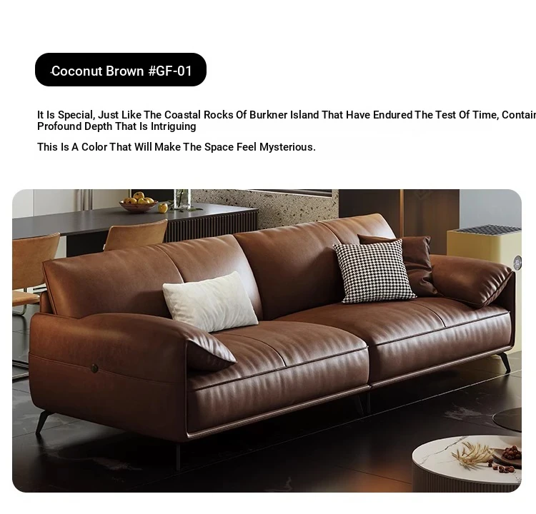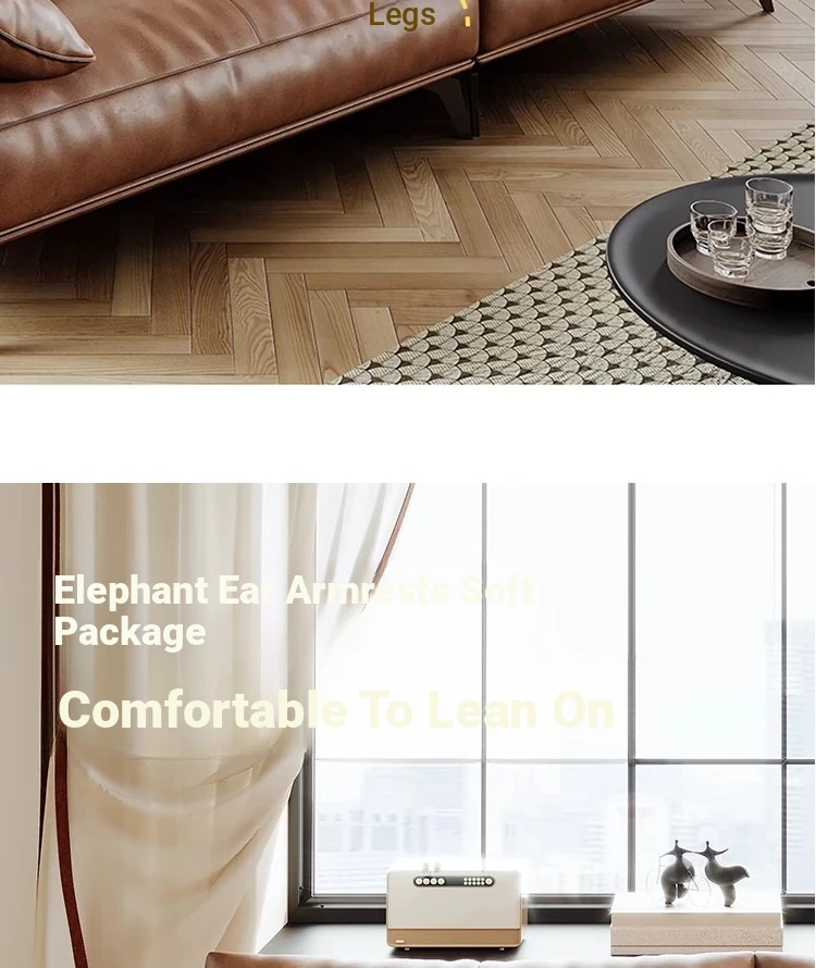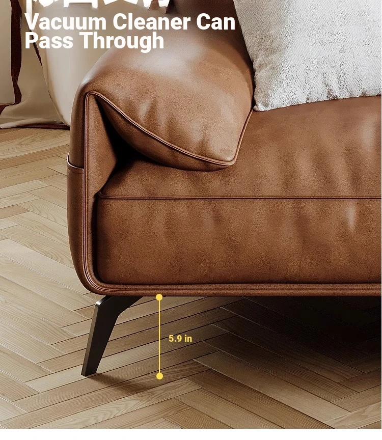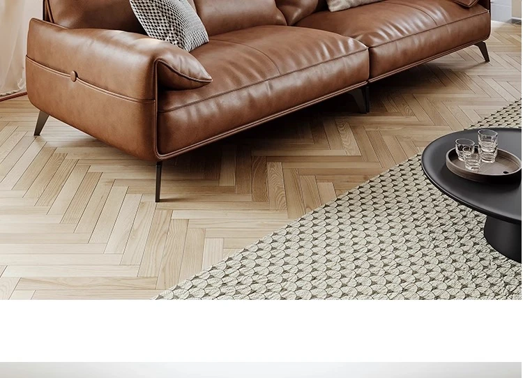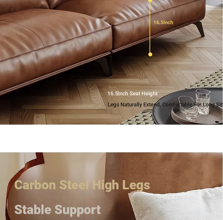 Genuine Leather Italian Minimalist Sofa – Premium Top-Grain Cowhide, Retro Brown, High Legs, Elephant Ear Design for Living Room – Perfect for Home Decor