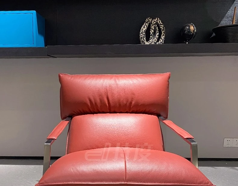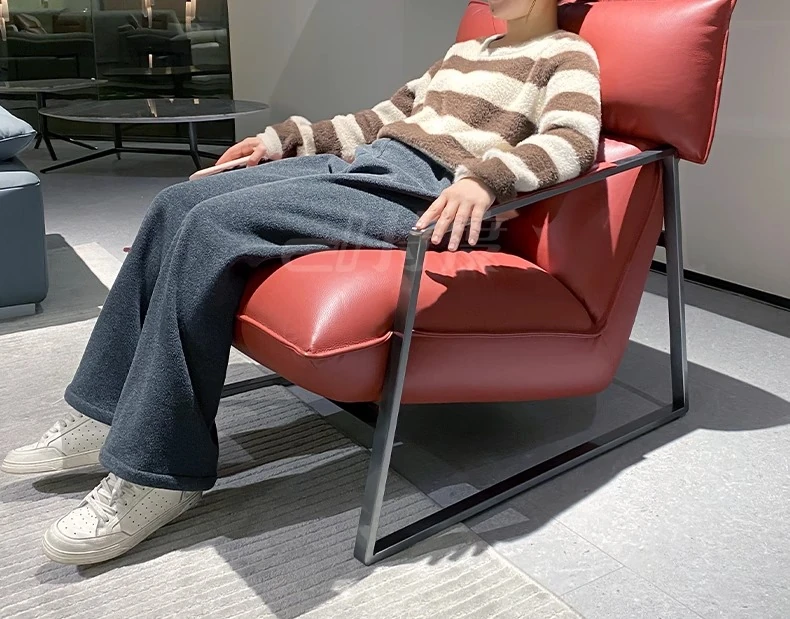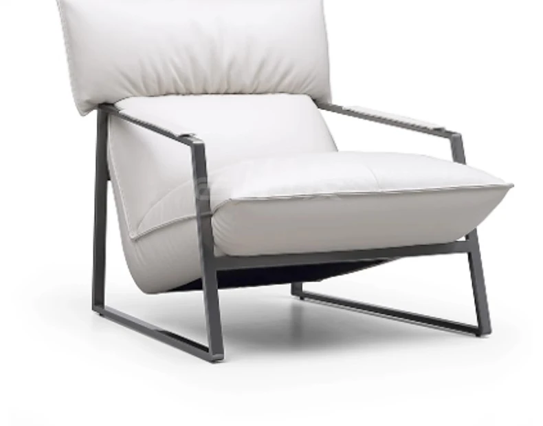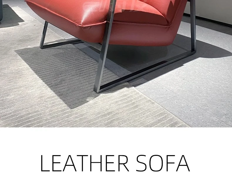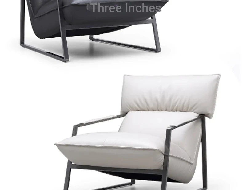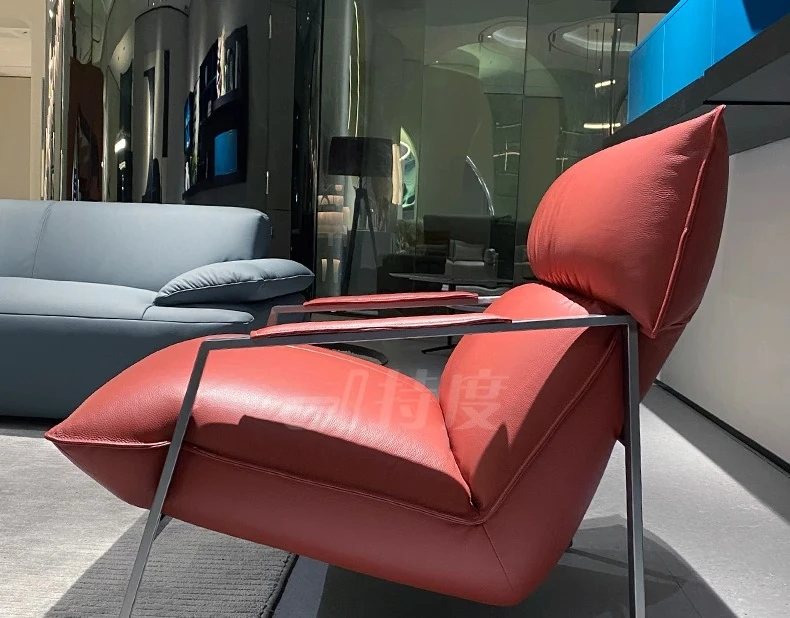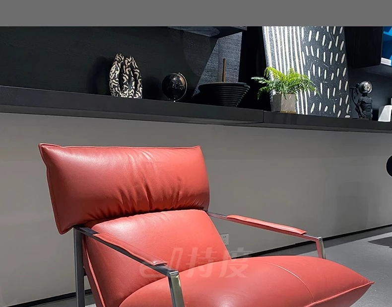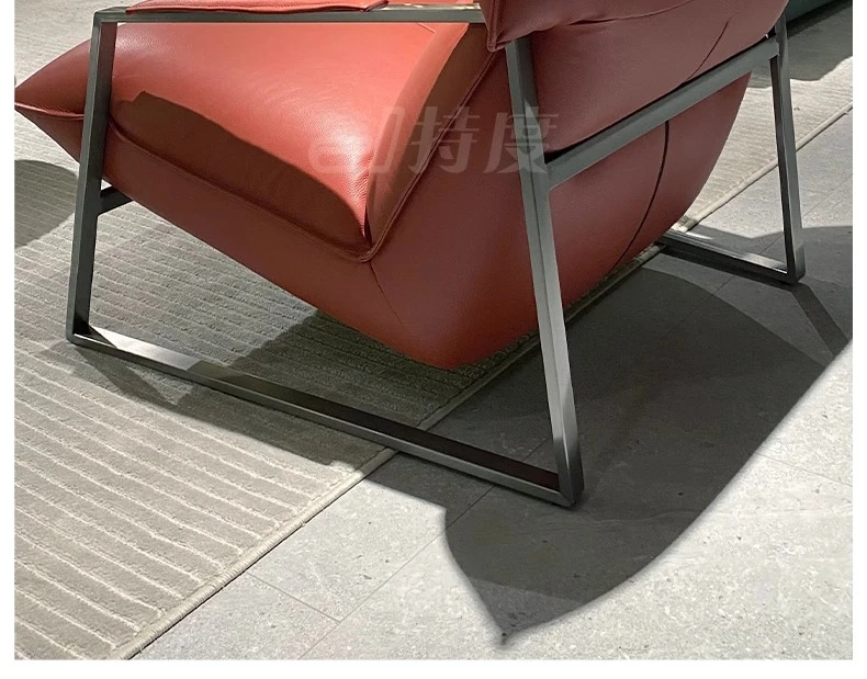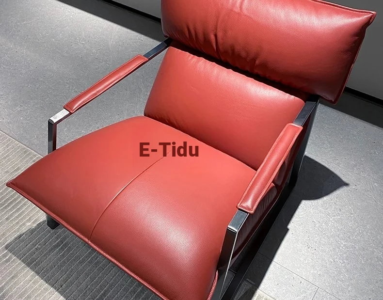 Genuine Leather Lazy Sofa Chair - Italian Minimalist High-End Lounge Chair for Living Room, Bedroom, and Balcony - Trendy Designer Single Seat for Ultimate Comfort and Style