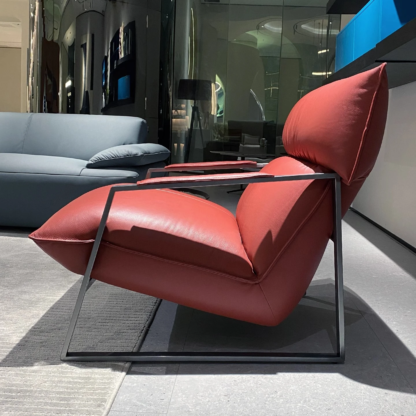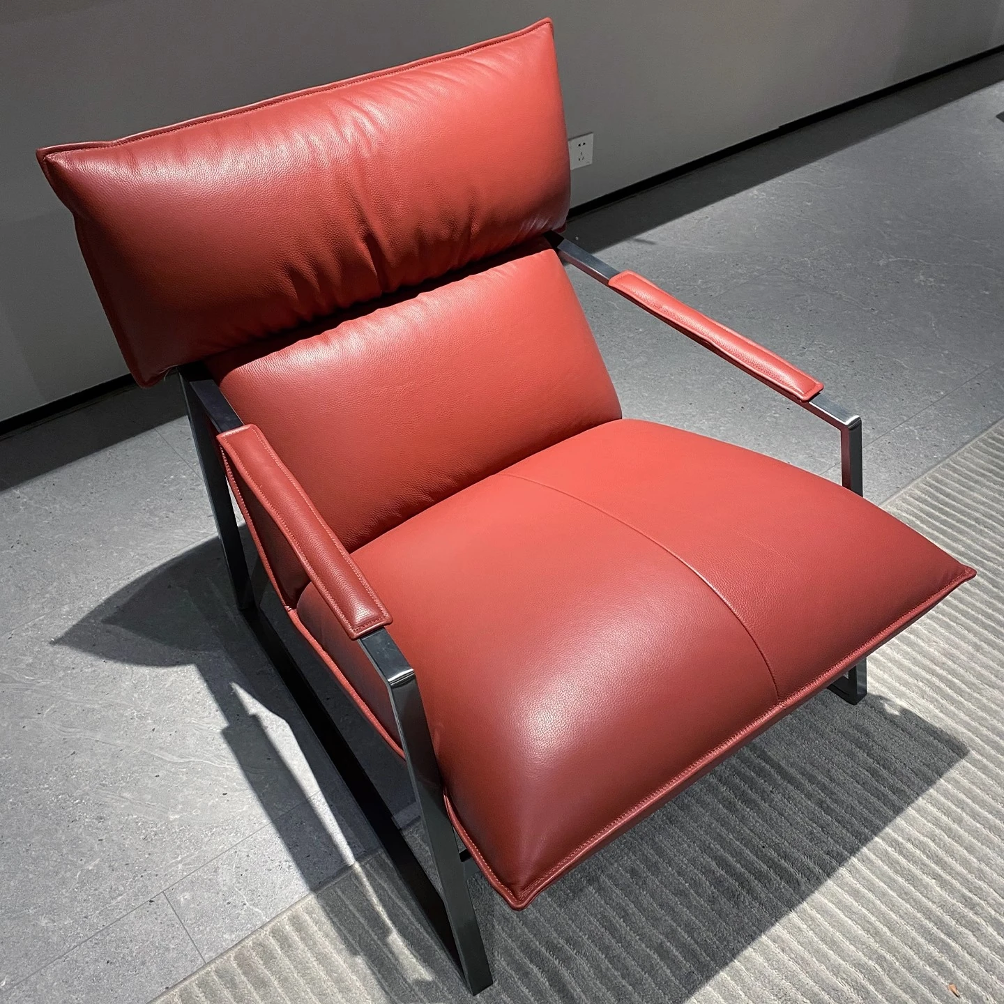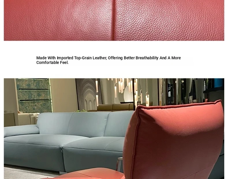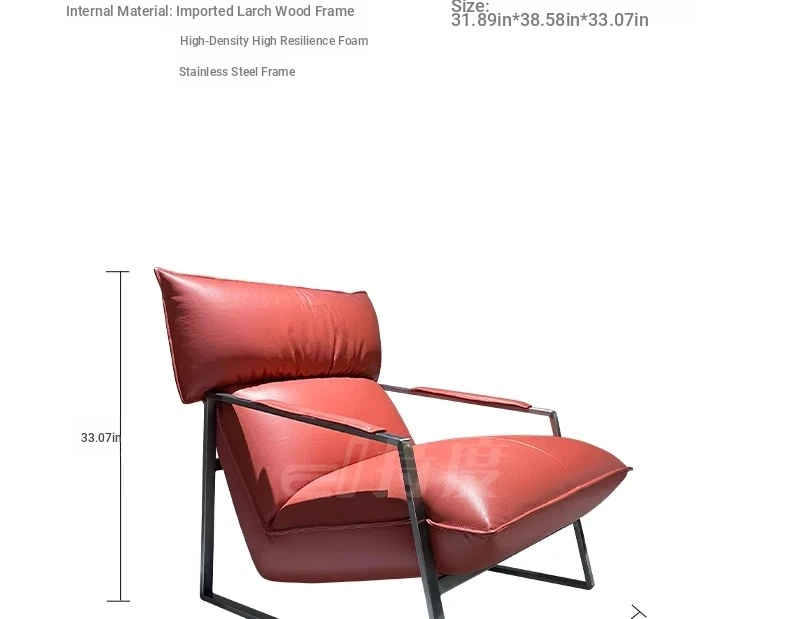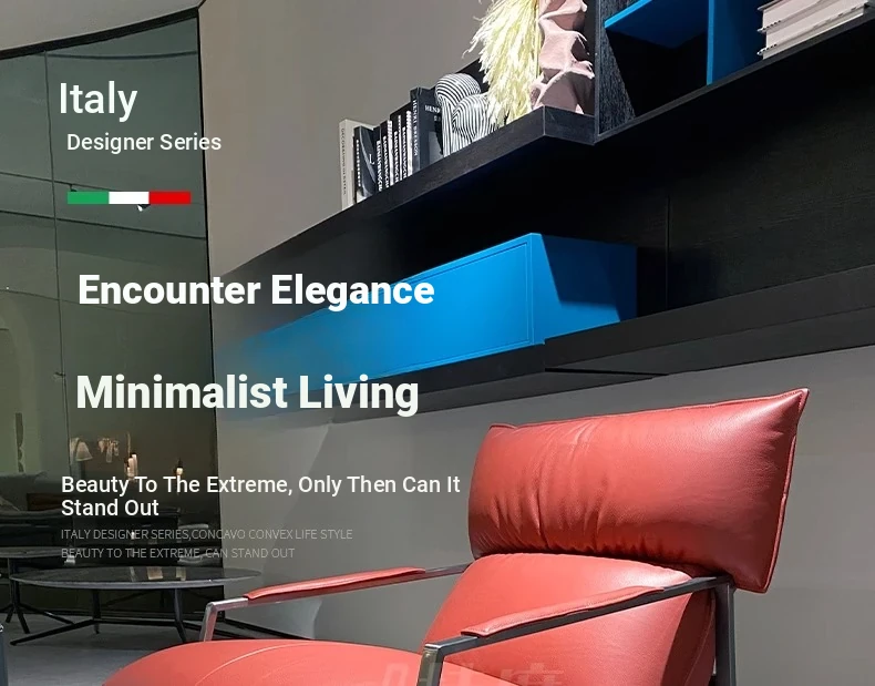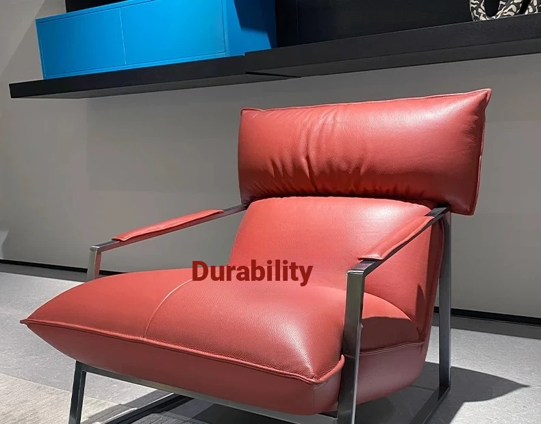 Genuine Leather Lazy Sofa Chair - Italian Minimalist High-End Lounge Chair for Living Room, Bedroom, and Balcony - Trendy Designer Single Seat for Ultimate Comfort and Style