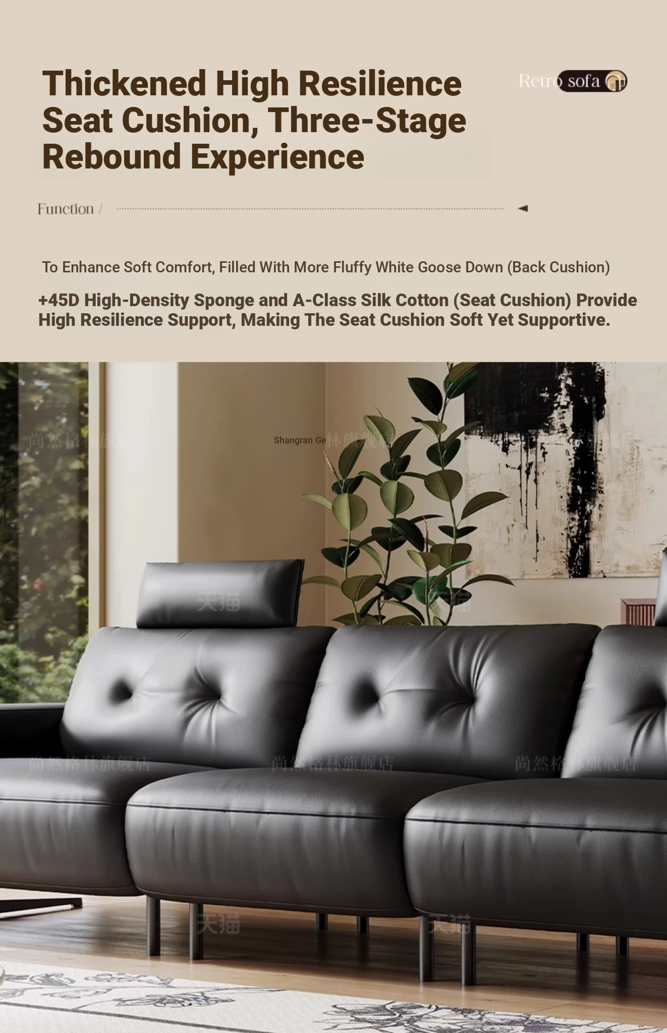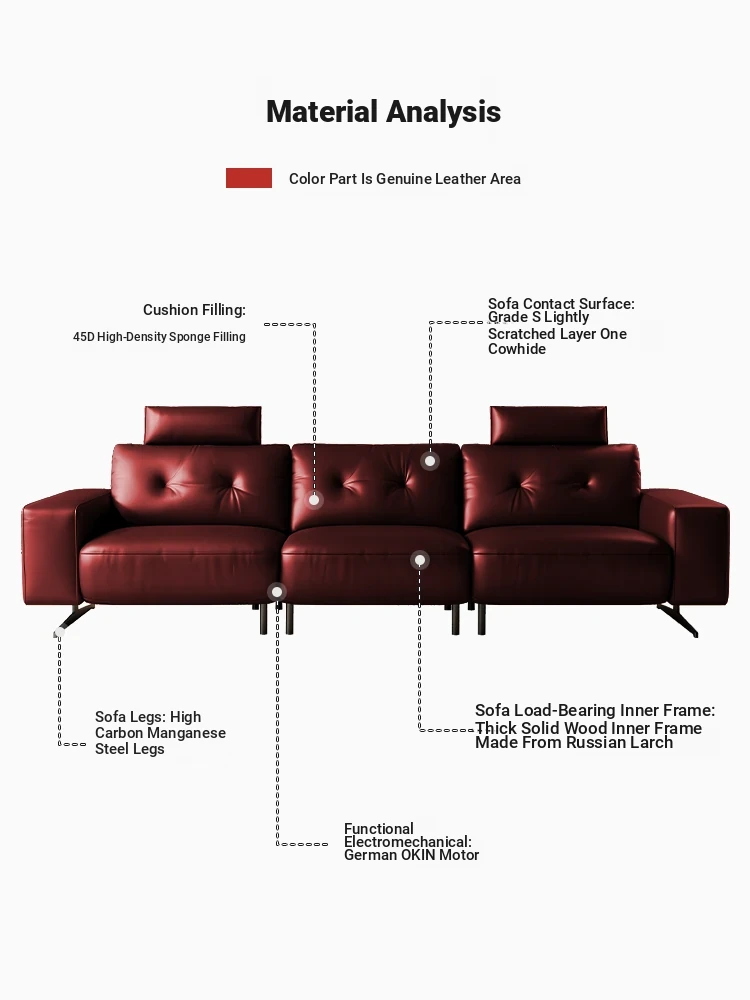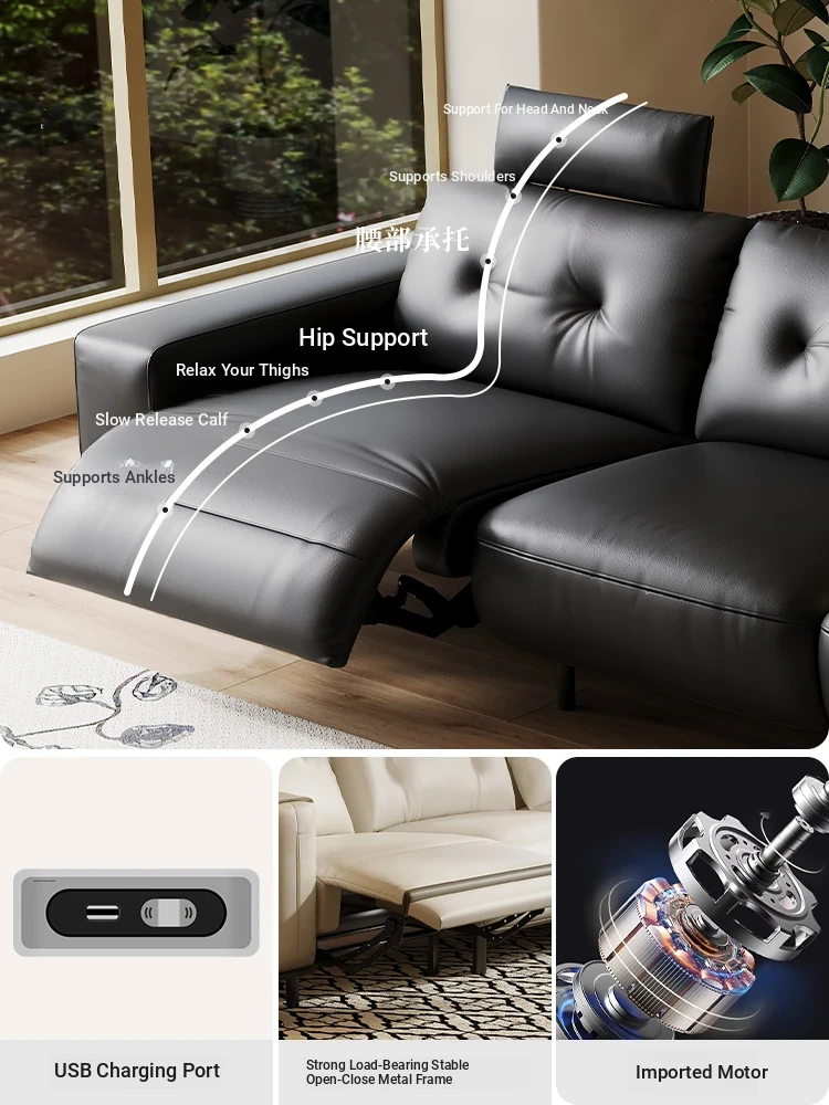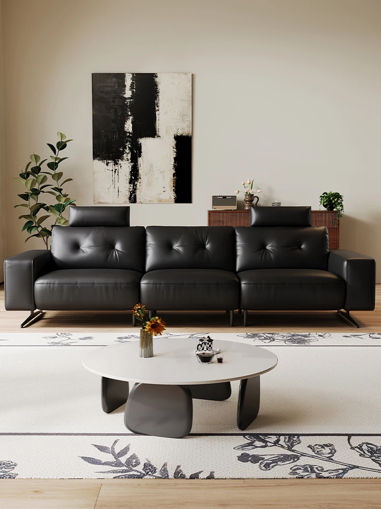 Italian Luxury Genuine Leather Sofa - Multifunctional Electric Reclining 3-Seater for Living Room, Perfect for Small to Medium Spaces, Sleek Black Minimalist Design