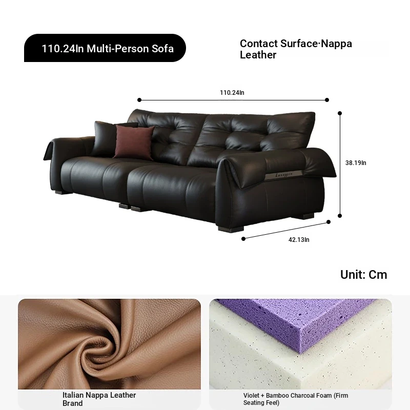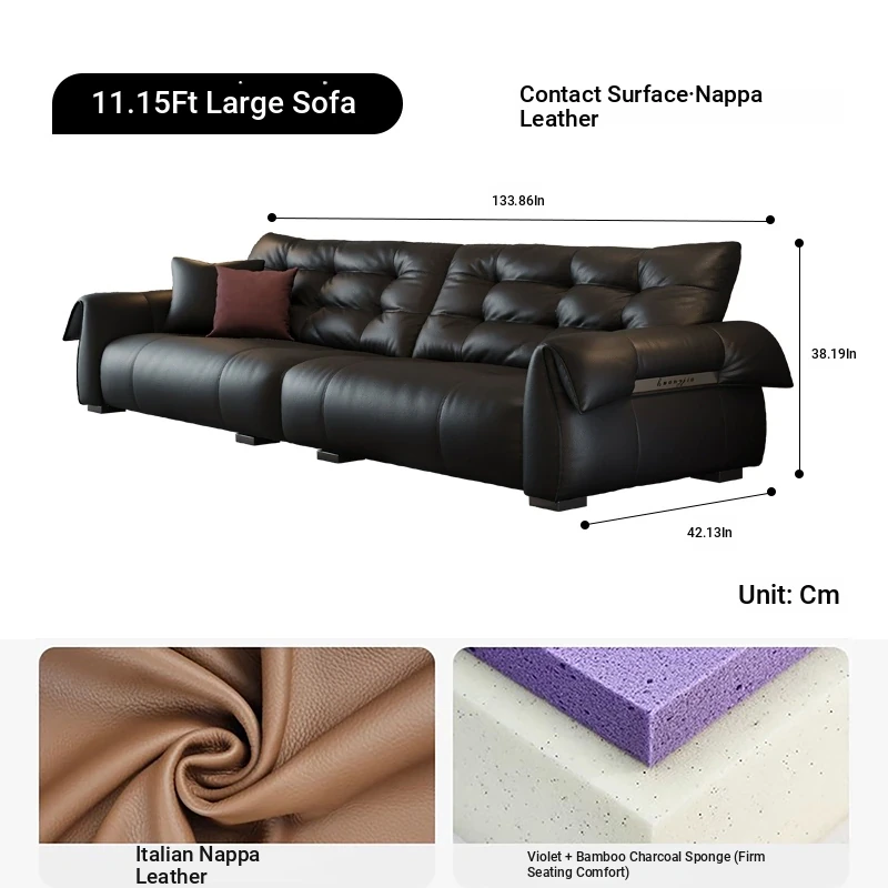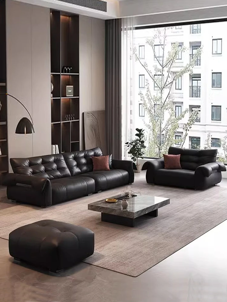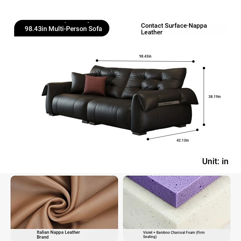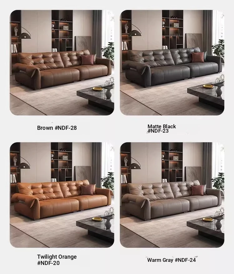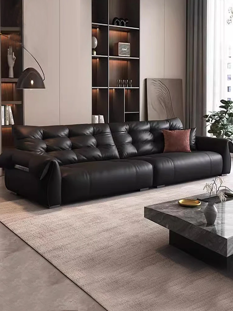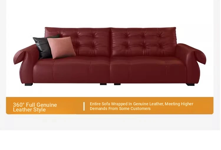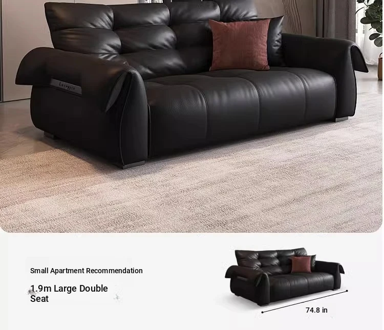 Italian Minimalist Genuine Leather Sofa - Modern and Simple Design for Small Spaces, 2025 New Arrival, Top-Quality Full Grain Leather, Straight Line Style