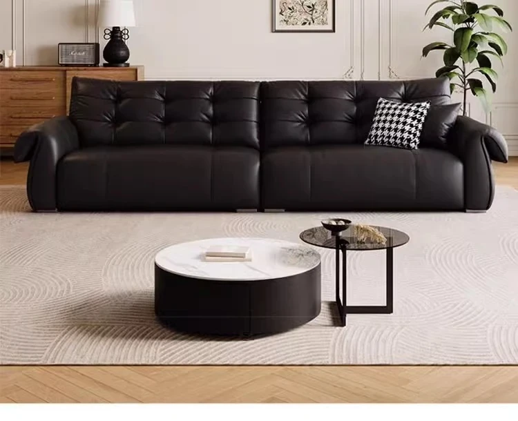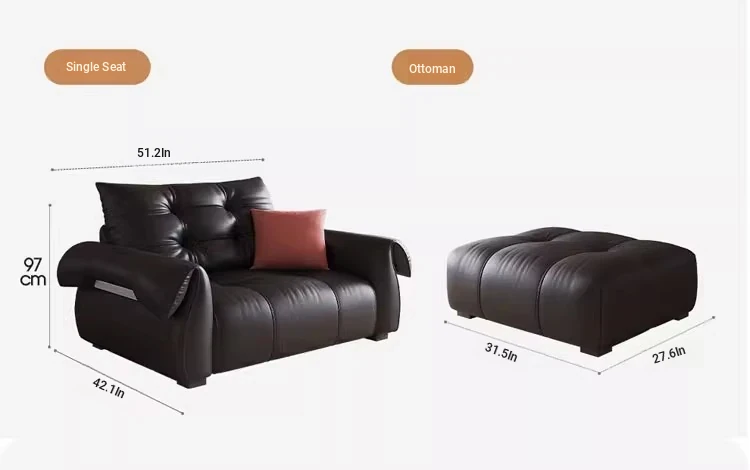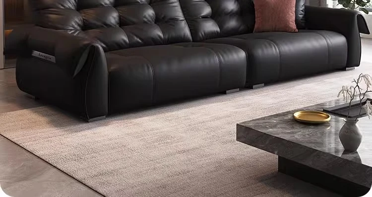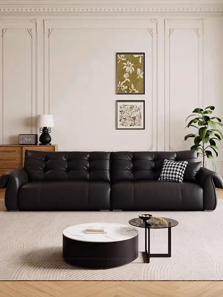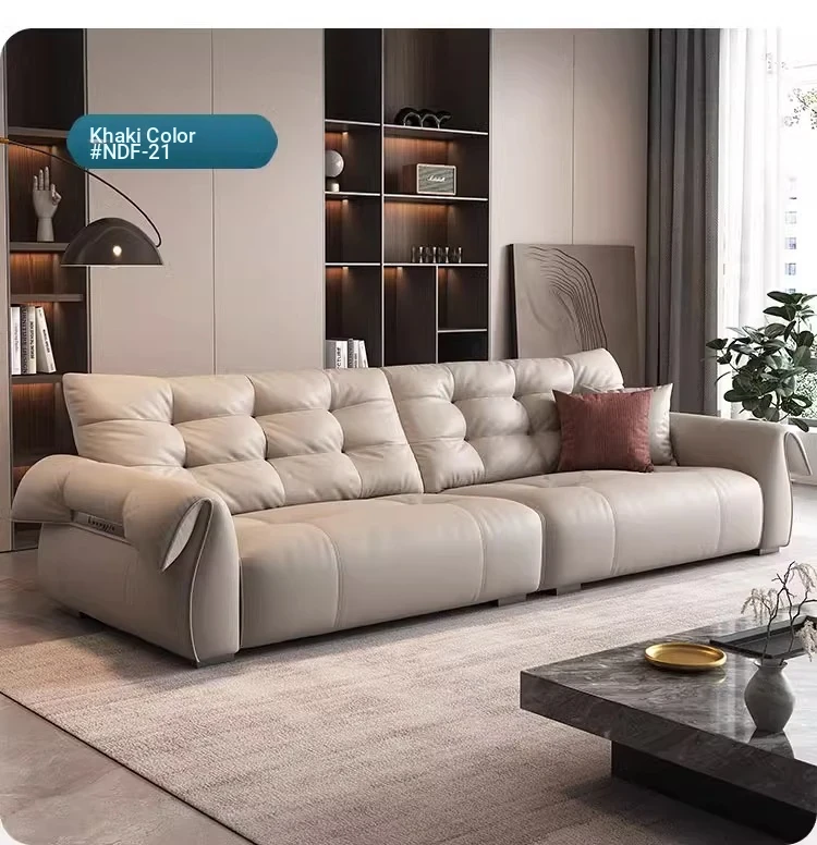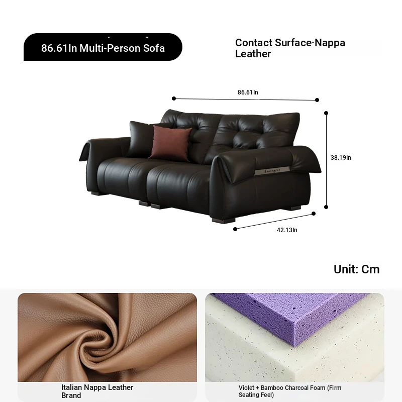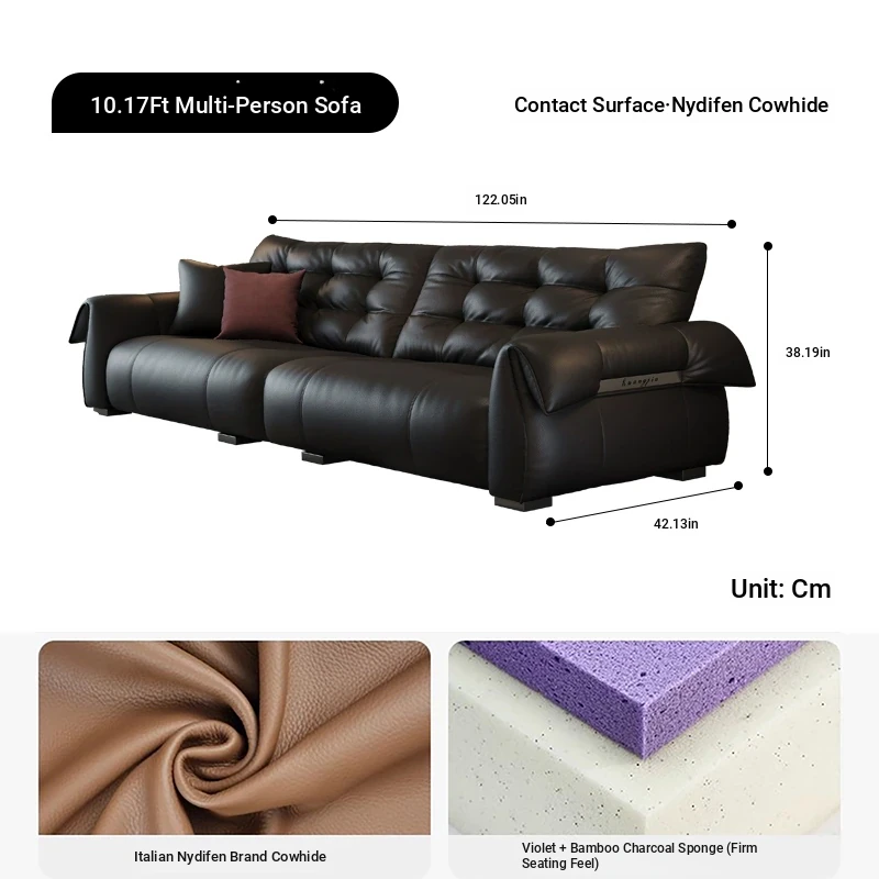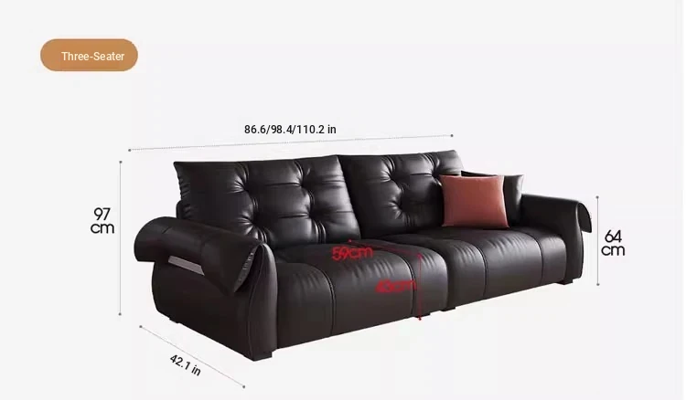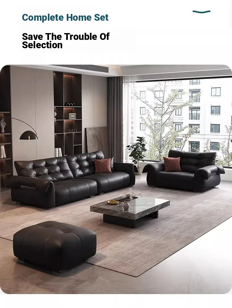 Italian Minimalist Genuine Leather Sofa - Modern and Simple Design for Small Spaces, 2025 New Arrival, Top-Quality Full Grain Leather, Straight Line Style