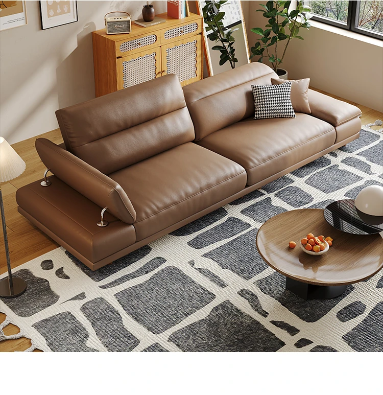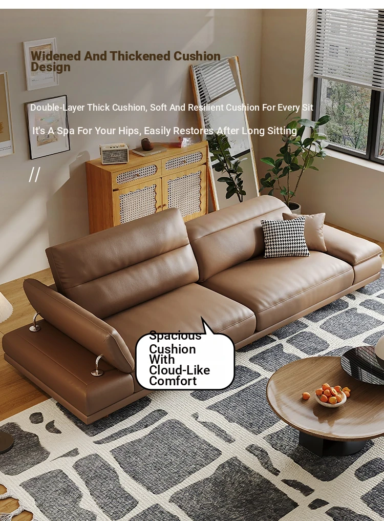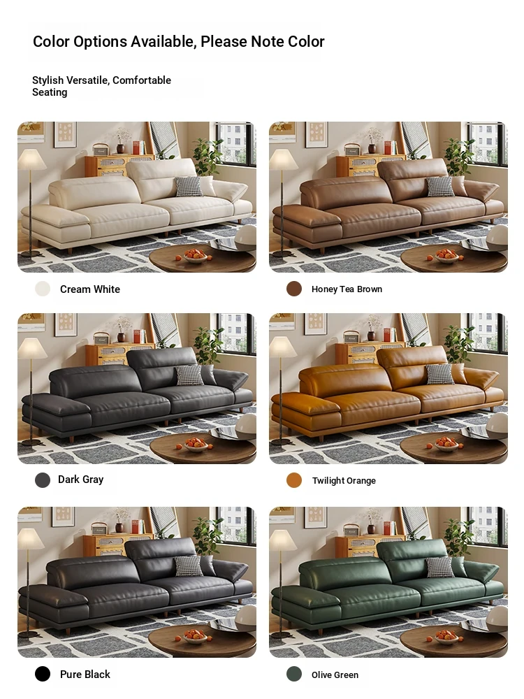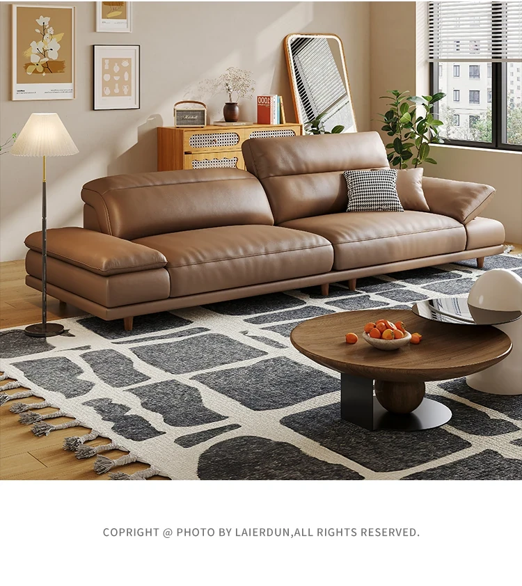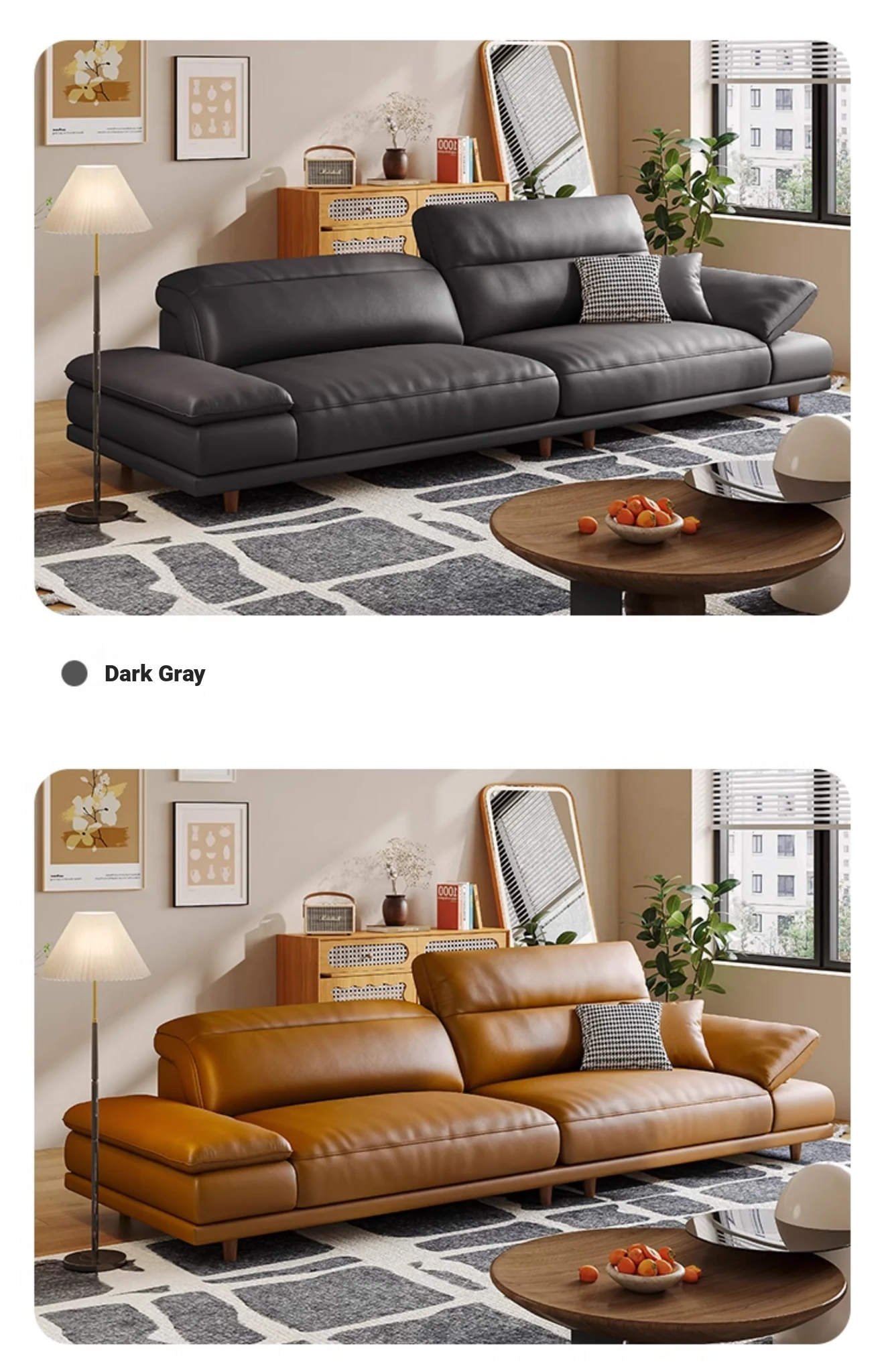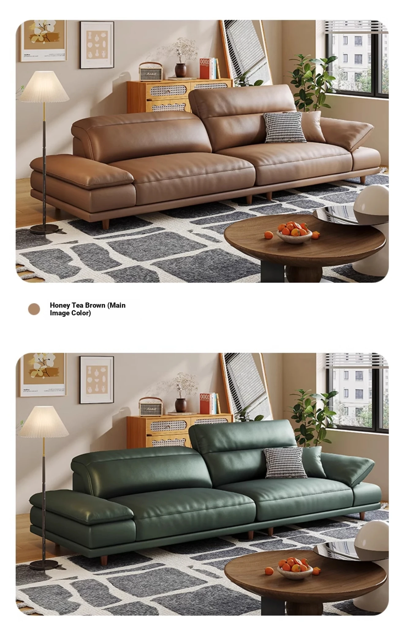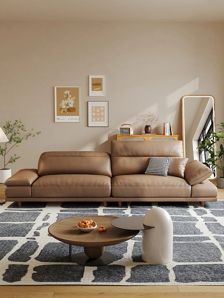 Italian Minimalist Genuine Leather Sofa - Top Grain Cowhide, Nordic Simple Design, Retro Straight-Line 3-Seater for Small Living Spaces