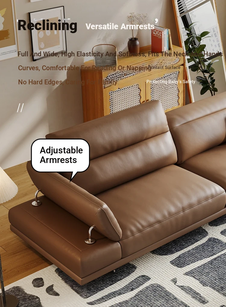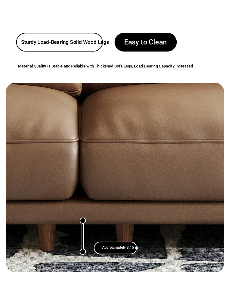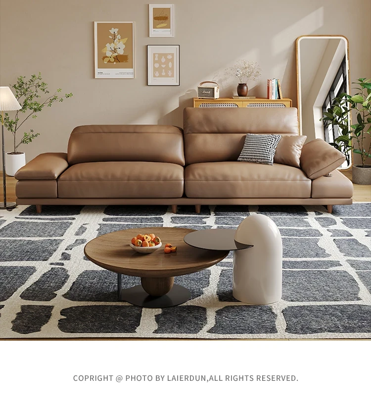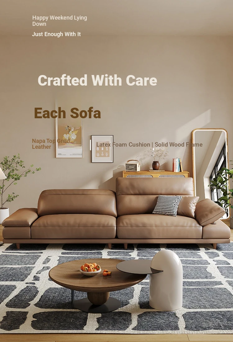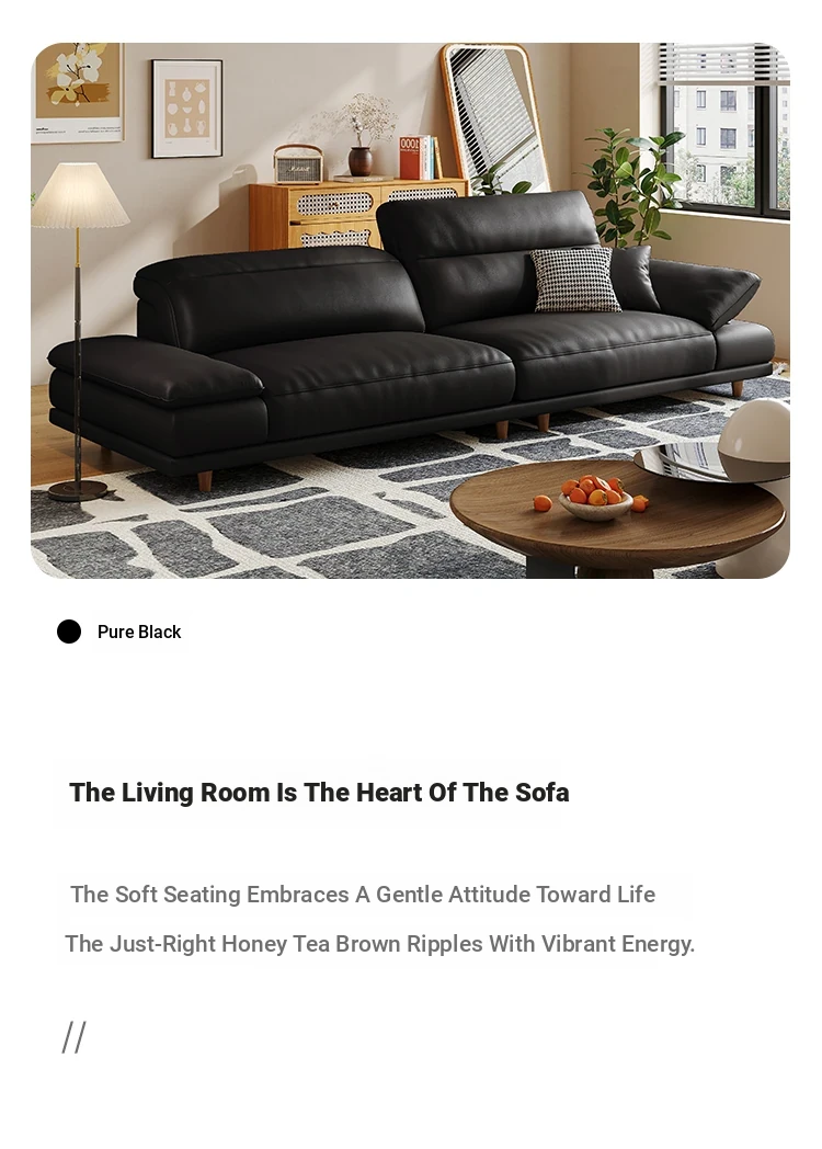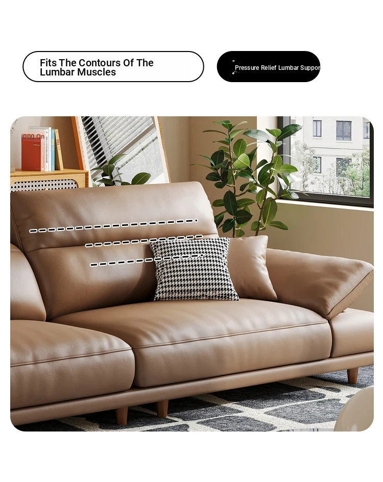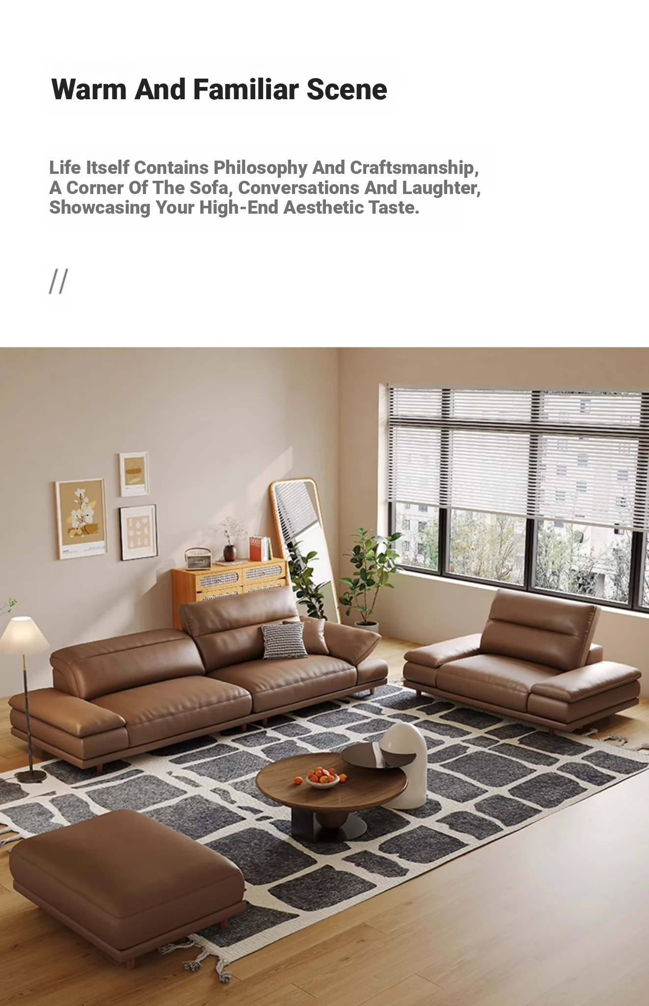 Italian Minimalist Genuine Leather Sofa - Top Grain Cowhide, Nordic Simple Design, Retro Straight-Line 3-Seater for Small Living Spaces