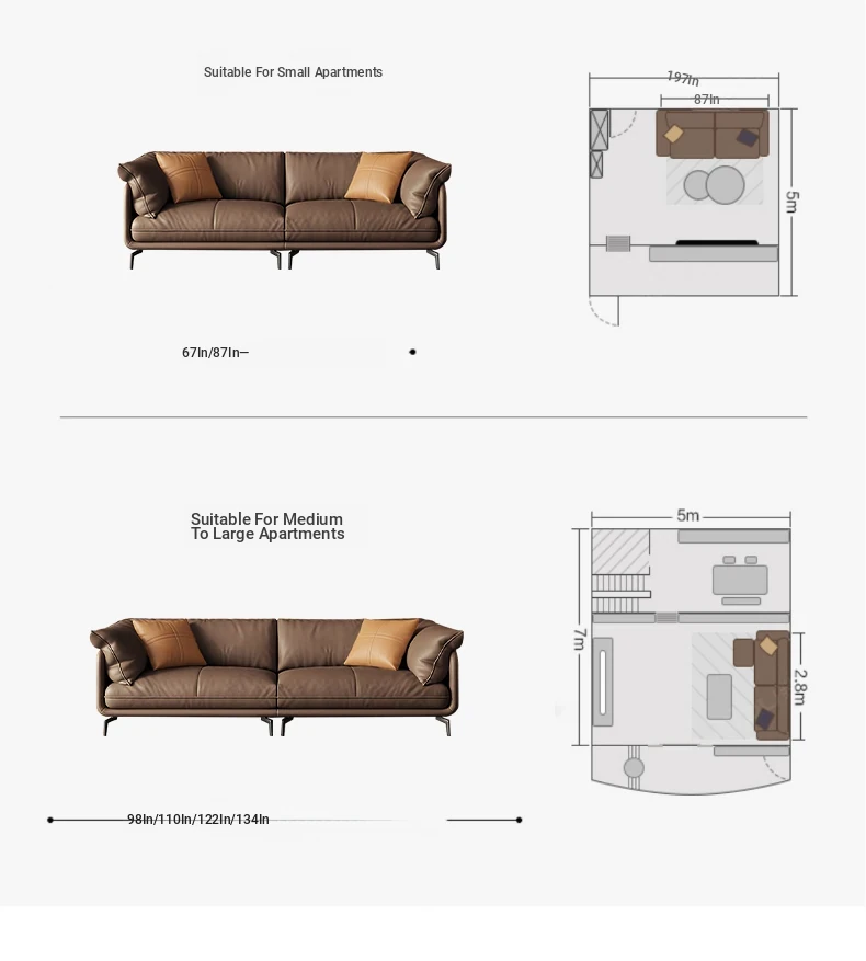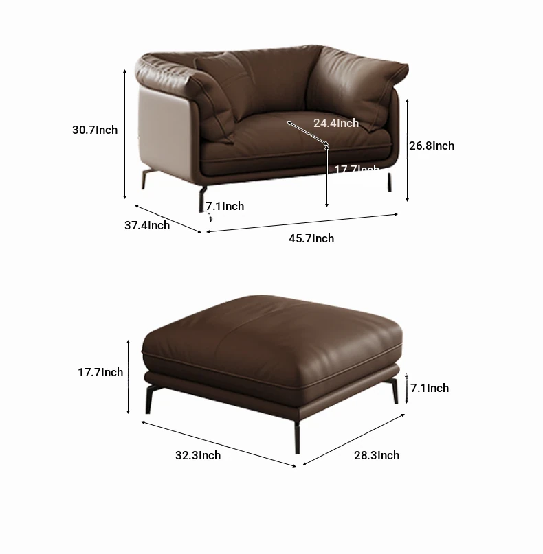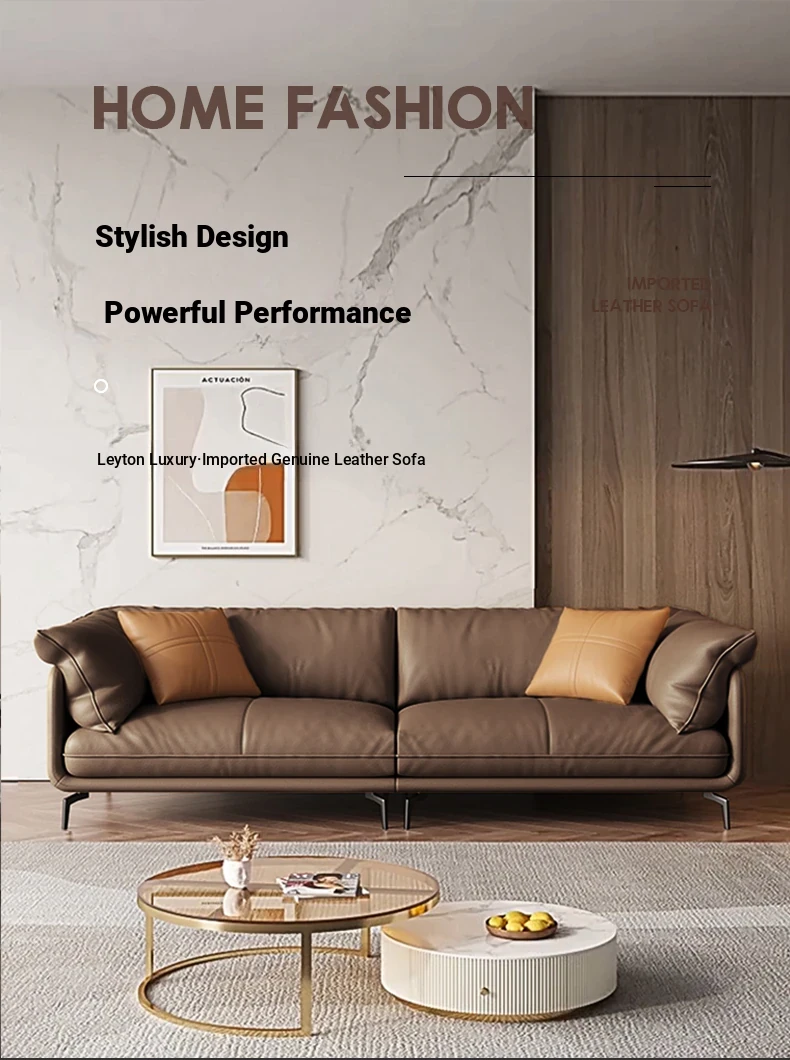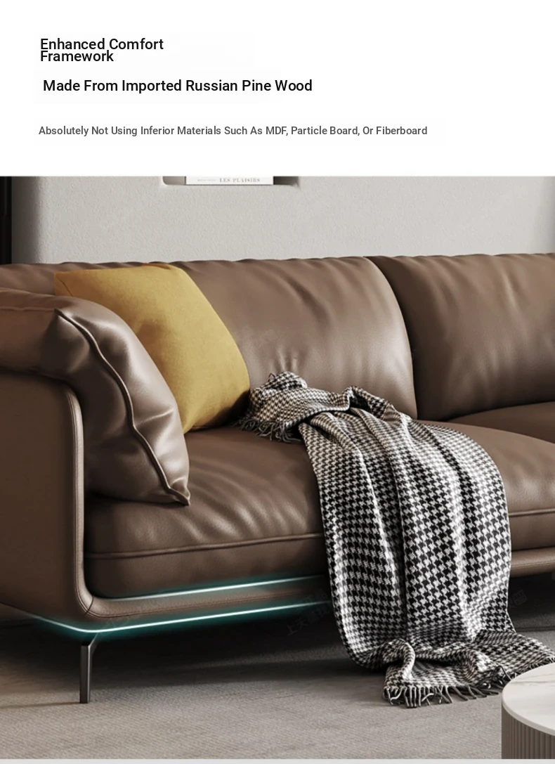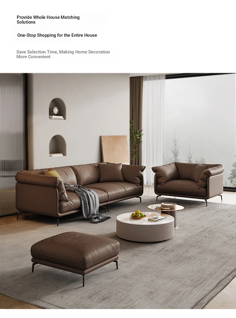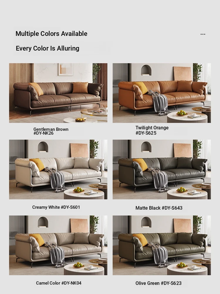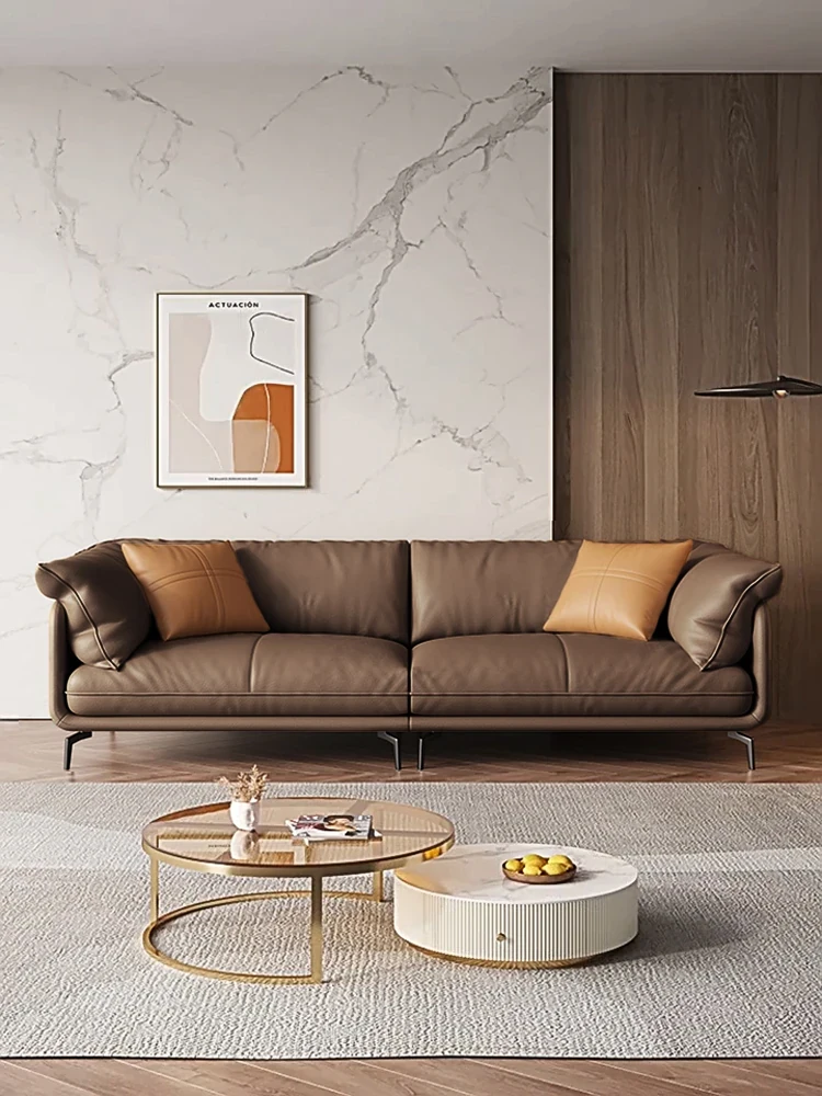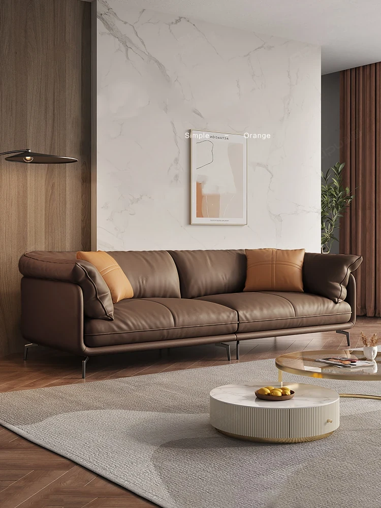 Italian Minimalist Genuine Leather Sofa - Top Grain Cowhide, Perfect for Small Living Spaces, Luxurious Yet Simple Modern Retro Design, Straight-Line Configuration.