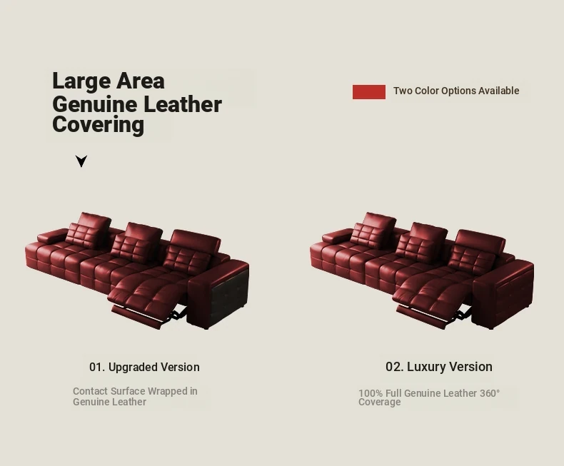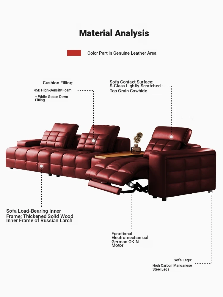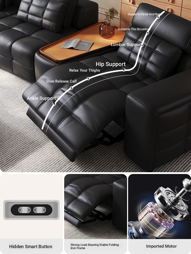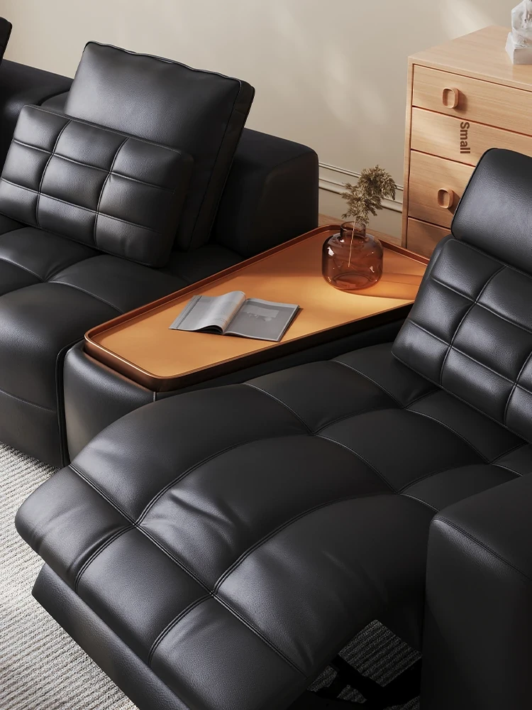 Lawrence Genuine Leather Sofa - Italian Minimalist Design for Villas and Large Spaces, Multi-Functional Electric Recliner Couch