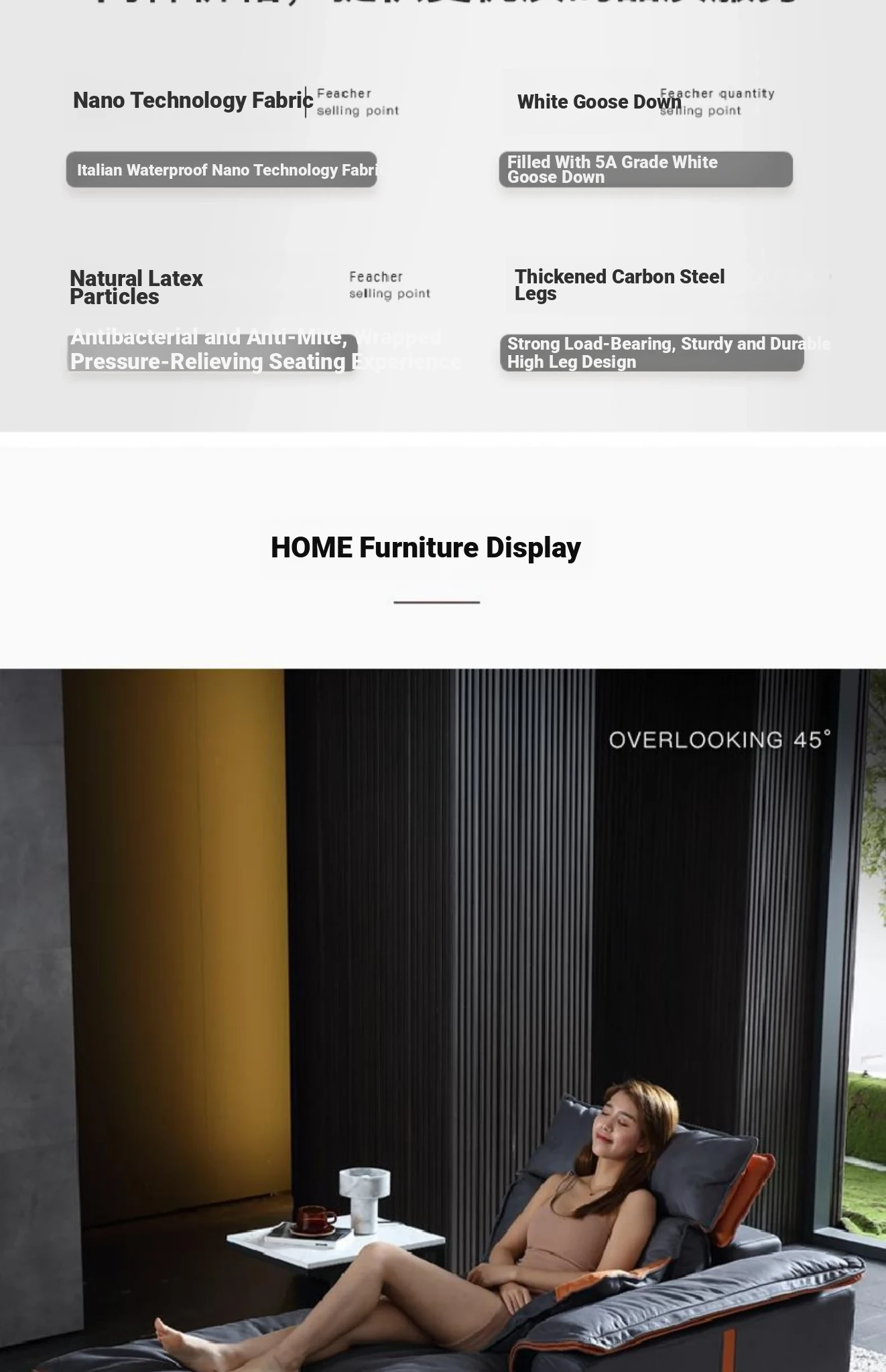 Luxury Minimalist Single Recliner Sofa - Italian Style Tech Fabric Chaise Lounge with Down Filling for Ultimate Comfort - Perfect for Relaxation and Napping