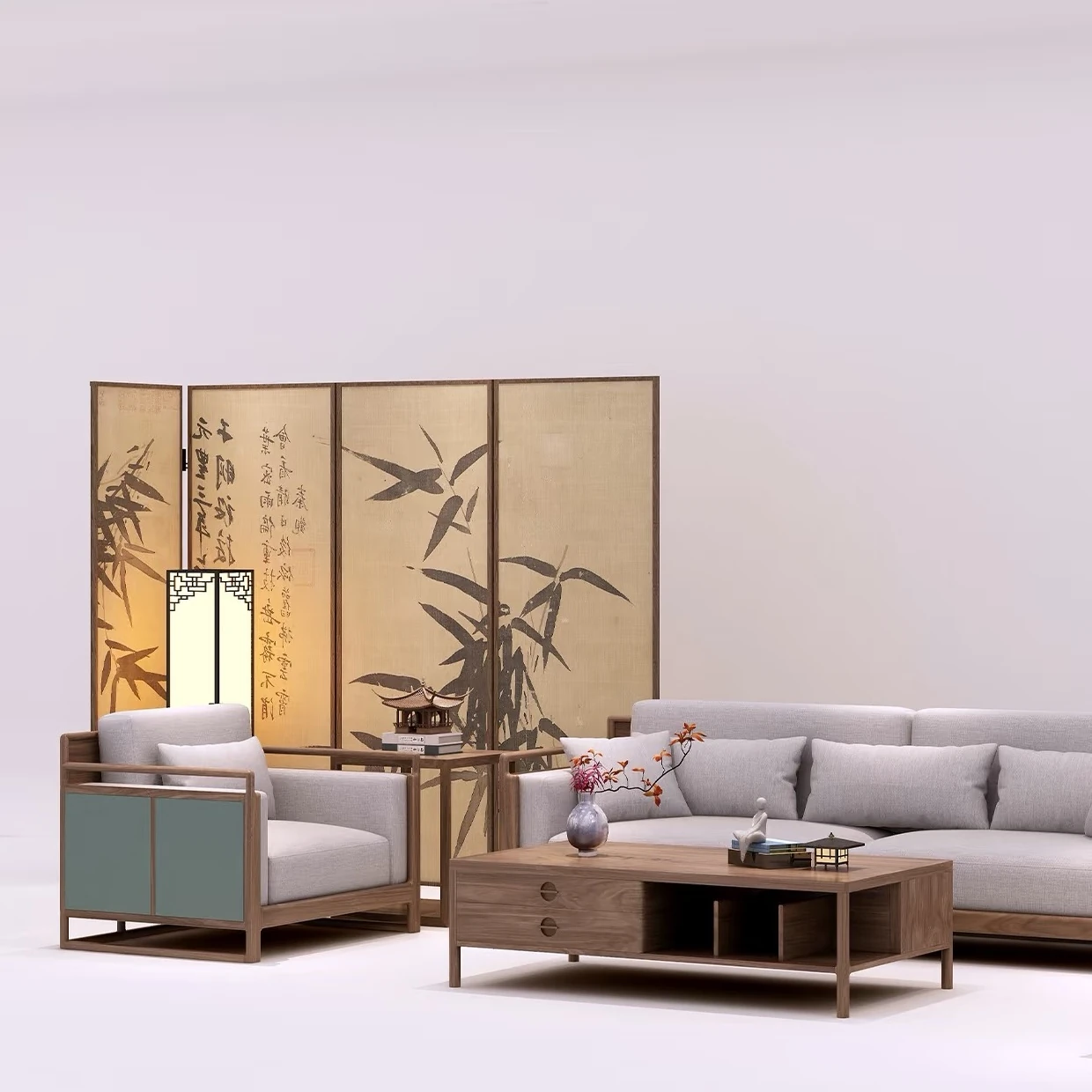 New Chinese Style Solid Wood Sofa Set - Elegant Zen Aesthetic for Villa Living Rooms, Inspired by Song Dynasty Artistry