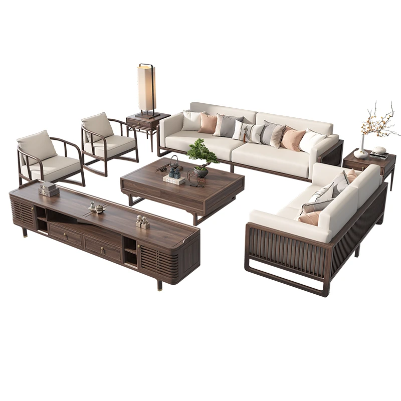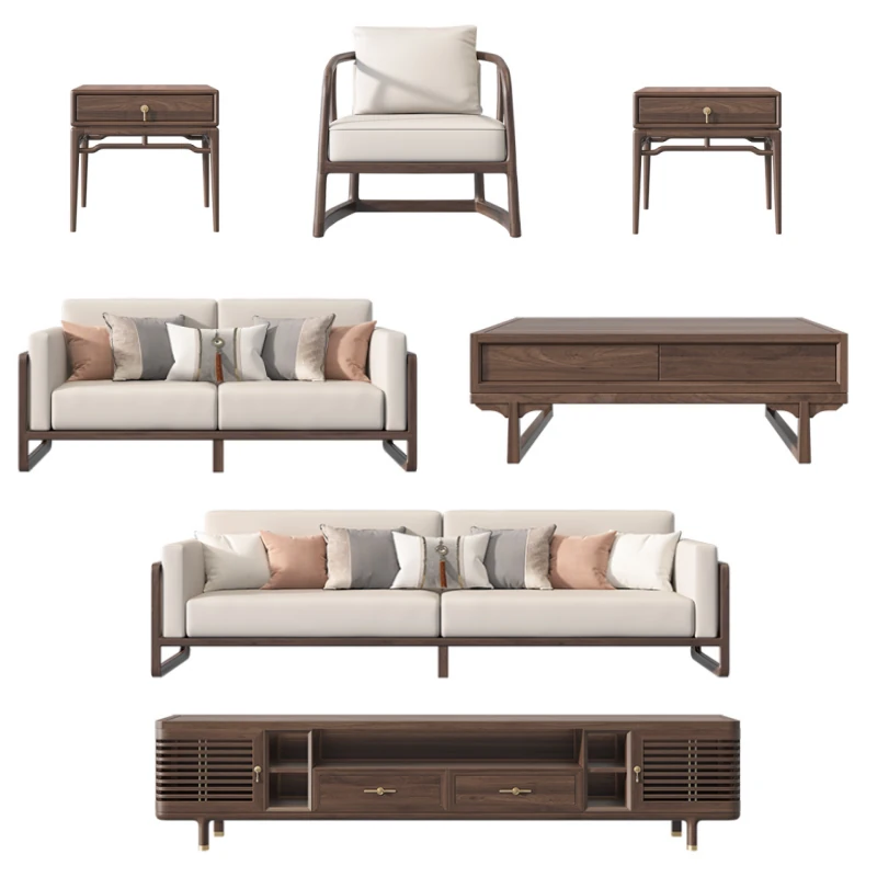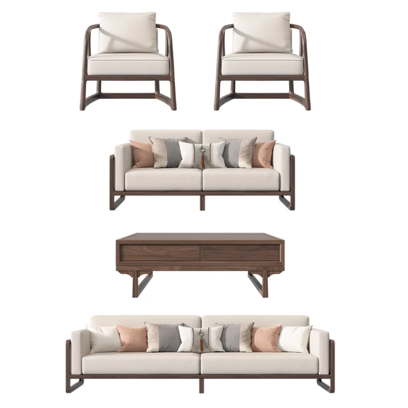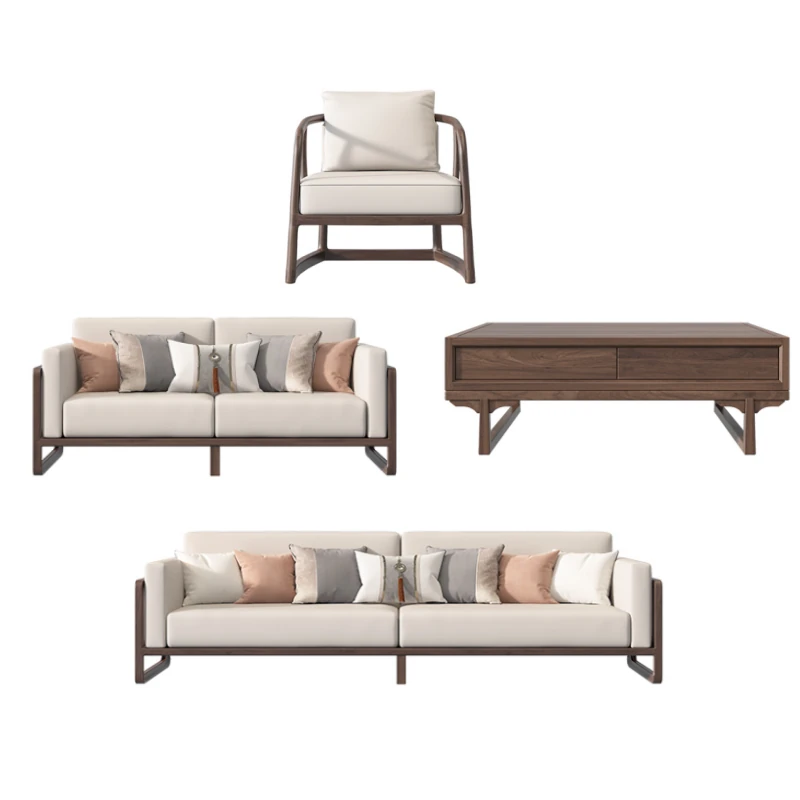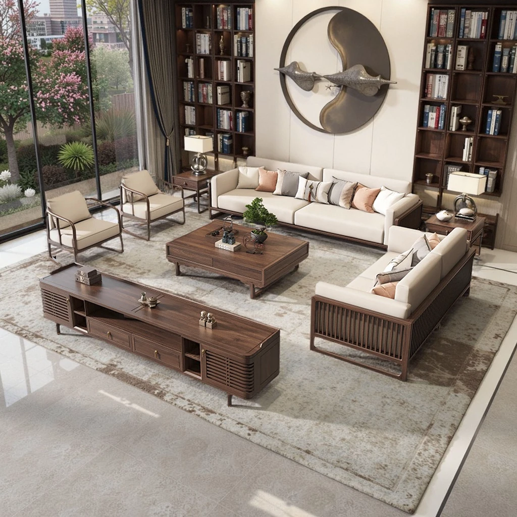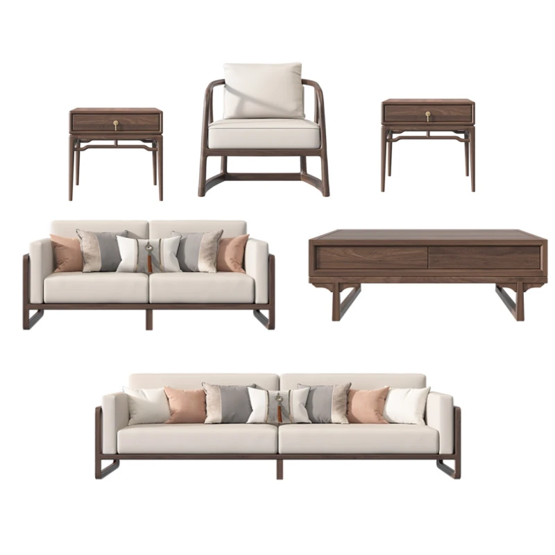 New Chinese Style Solid Wood Sofa Set in Black Walnut - 2025 Latest Wabi-Sabi Aesthetic with Song Dynasty Influence for Zen-Inspired Living Room Furniture