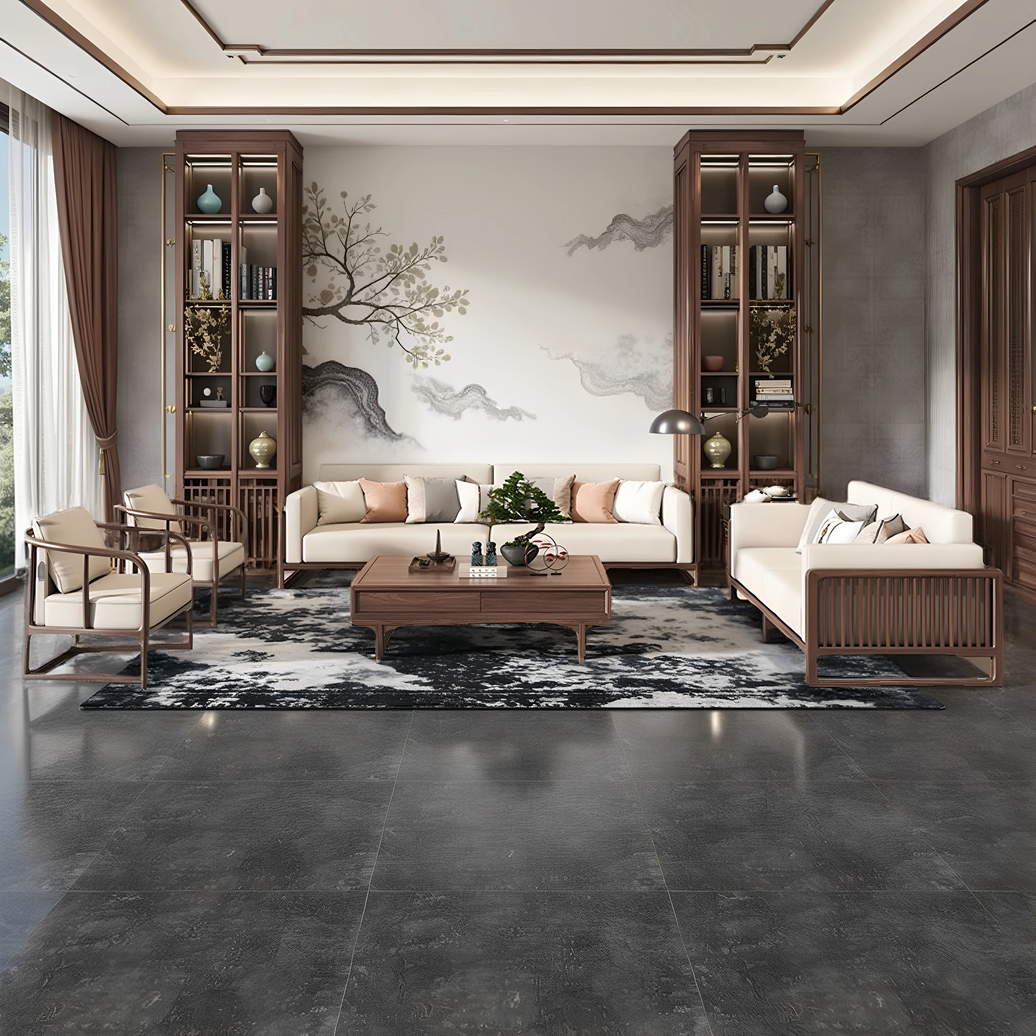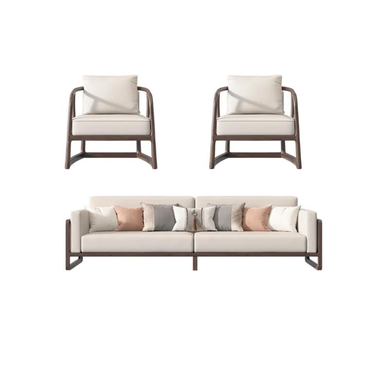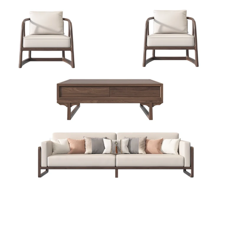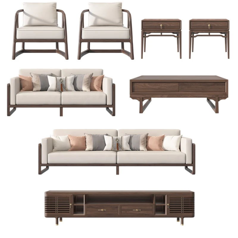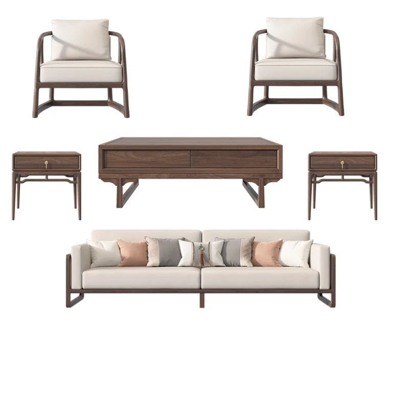 New Chinese Style Solid Wood Sofa Set in Black Walnut - 2025 Latest Wabi-Sabi Aesthetic with Song Dynasty Influence for Zen-Inspired Living Room Furniture