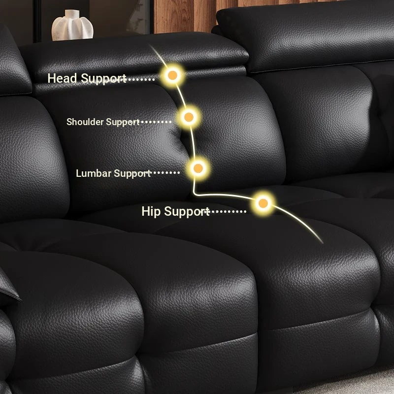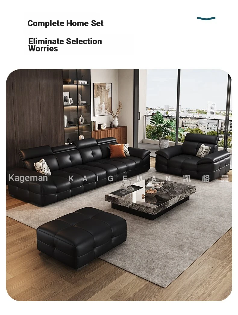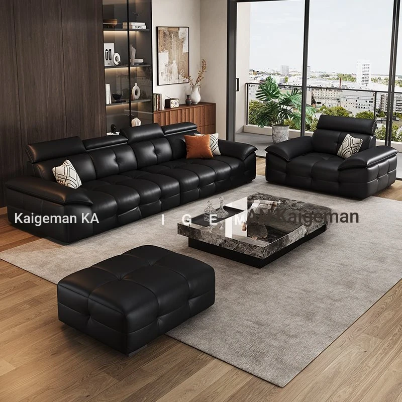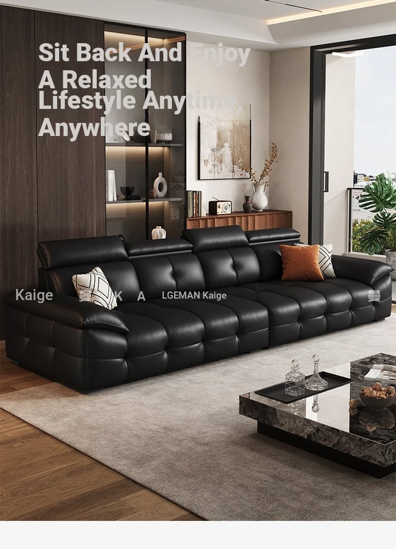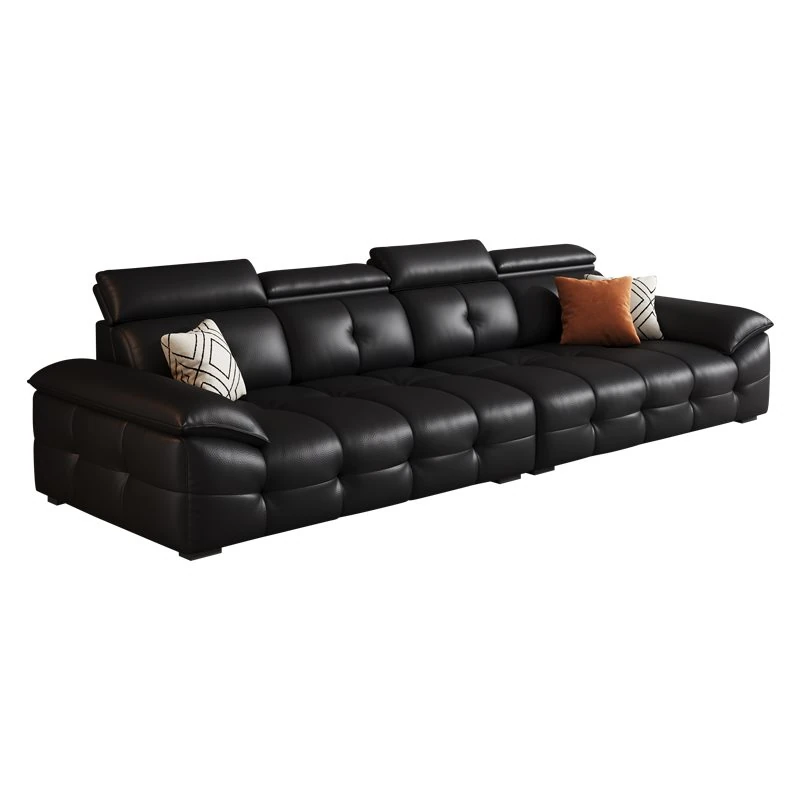 Qu Mei Home Luxury Black Piano Key Sofa - High Back, Straight Design, Genuine Leather, Spacious 3-Seater for Large Living Rooms - 2025 New Arrival