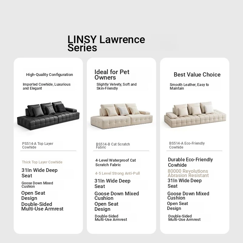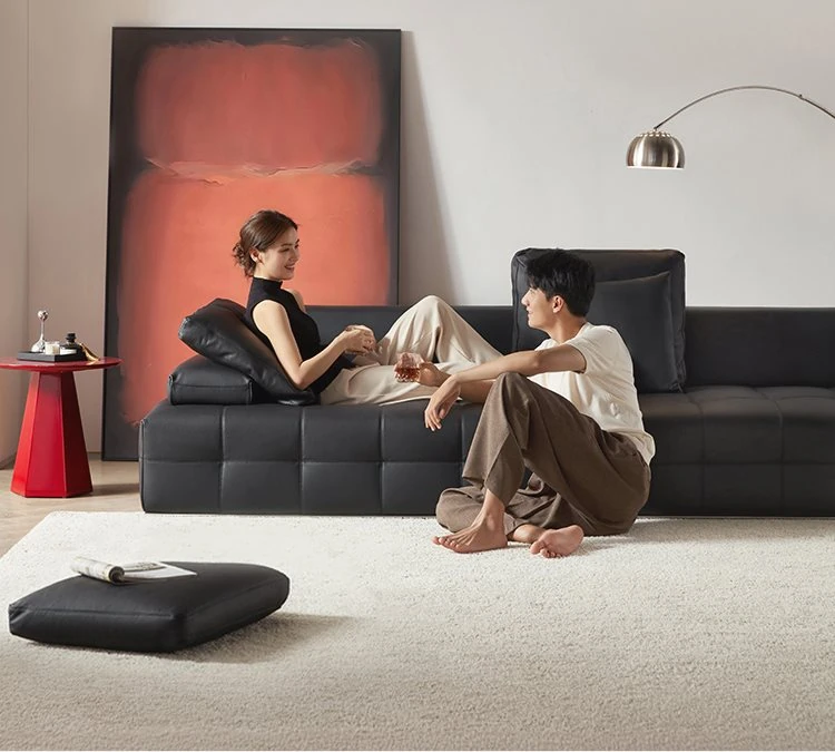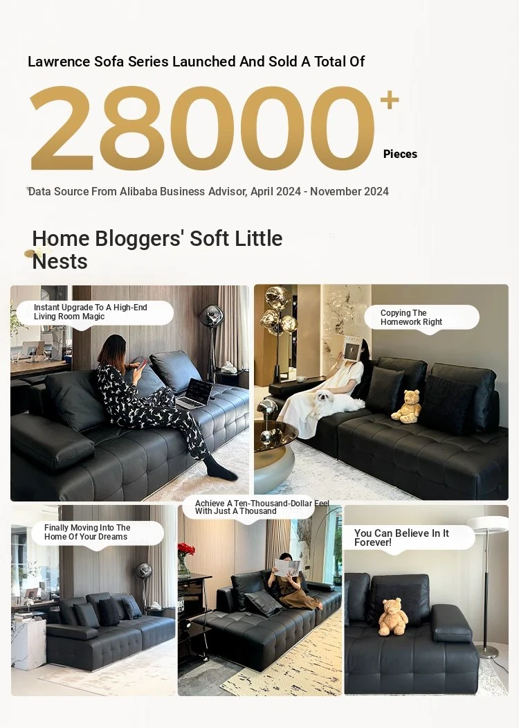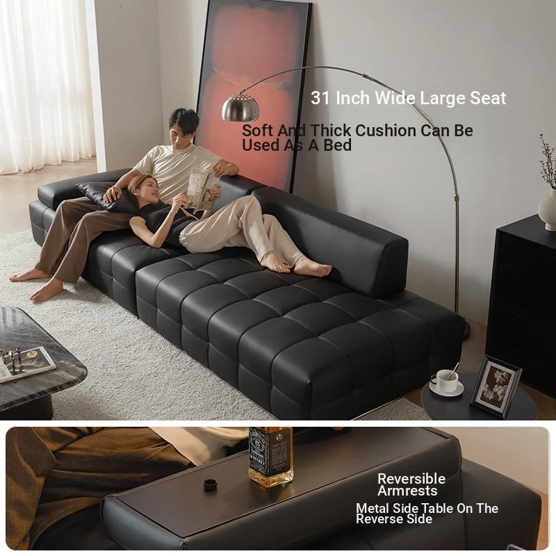 QuMei Home Lawrence Black Genuine Leather Sofa - 2025 New Model, Spacious Design for Living Room, Elegant Black Bull Leather Finish