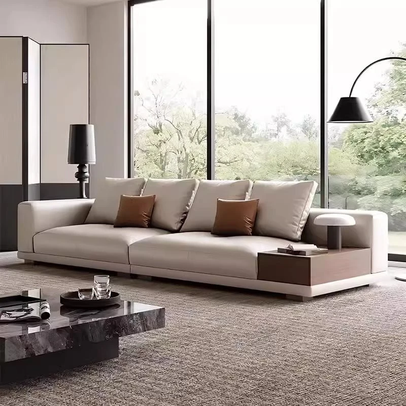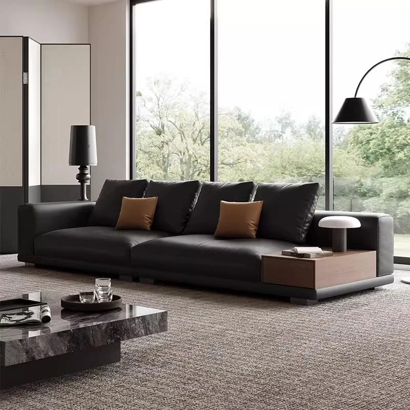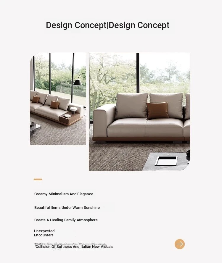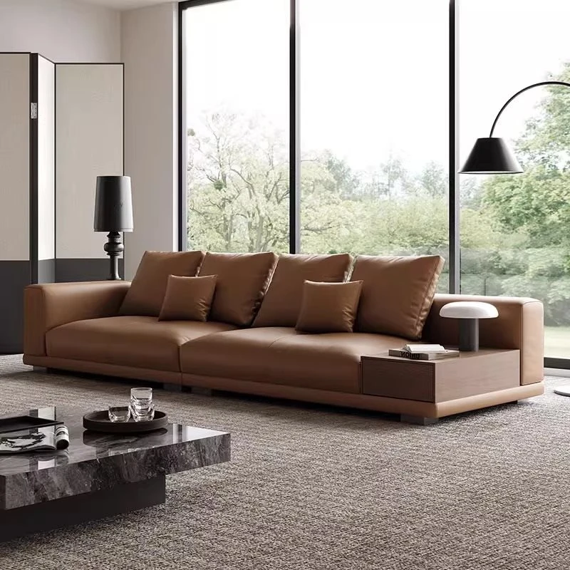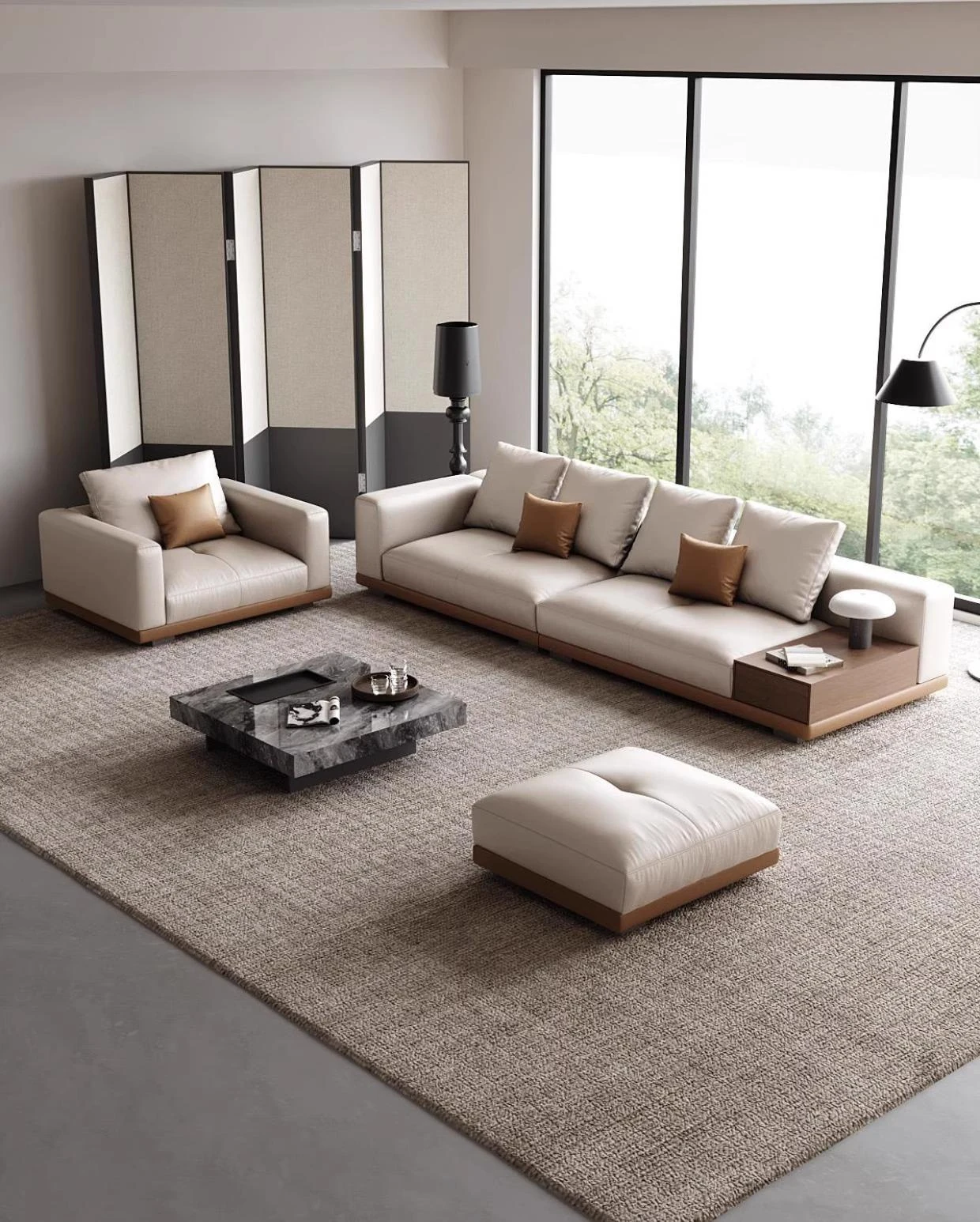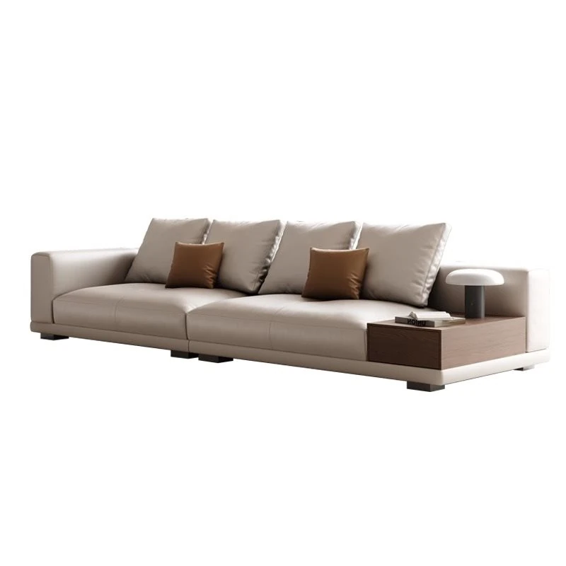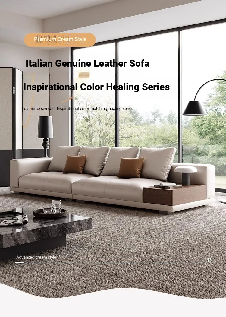 QuMei Minimalist Connolly Genuine Leather Sofa - Stylish Four-Seater for Living Rooms, Villas, and Open Spaces - Perfect for Any Home Size