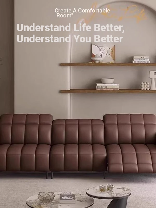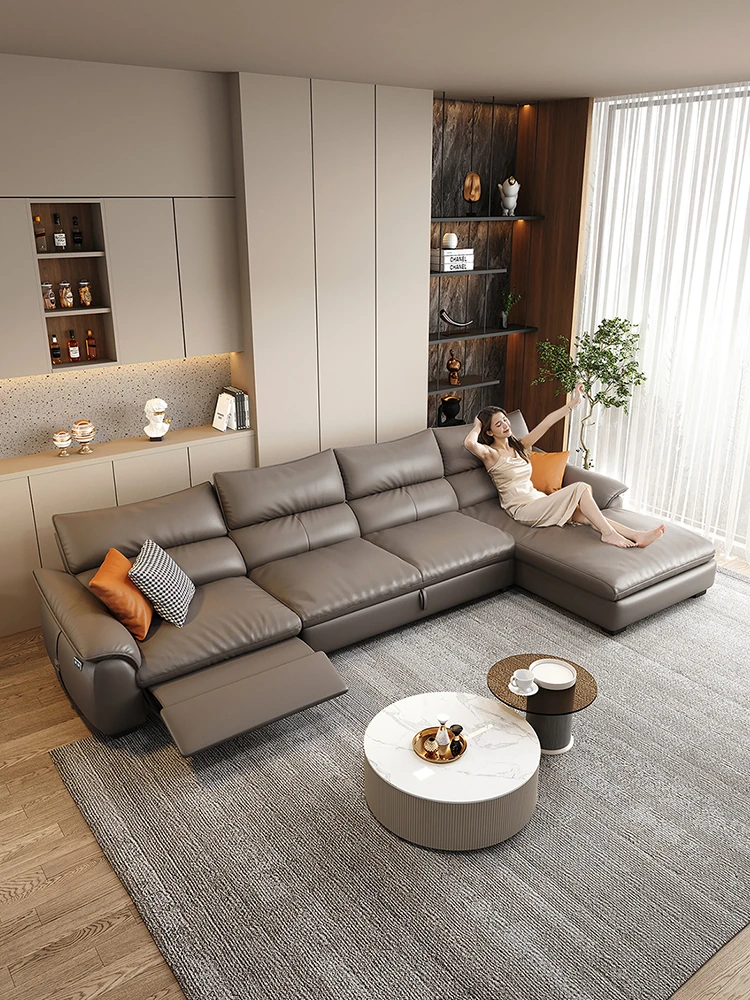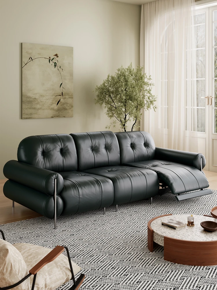 Italian Minimalist Genuine Leather Sofa Set - Luxurious Top-Grain Cowhide, Electric Reclining Features, Perfect for Modern Living Rooms with Wabi-Sabi Aesthetic.