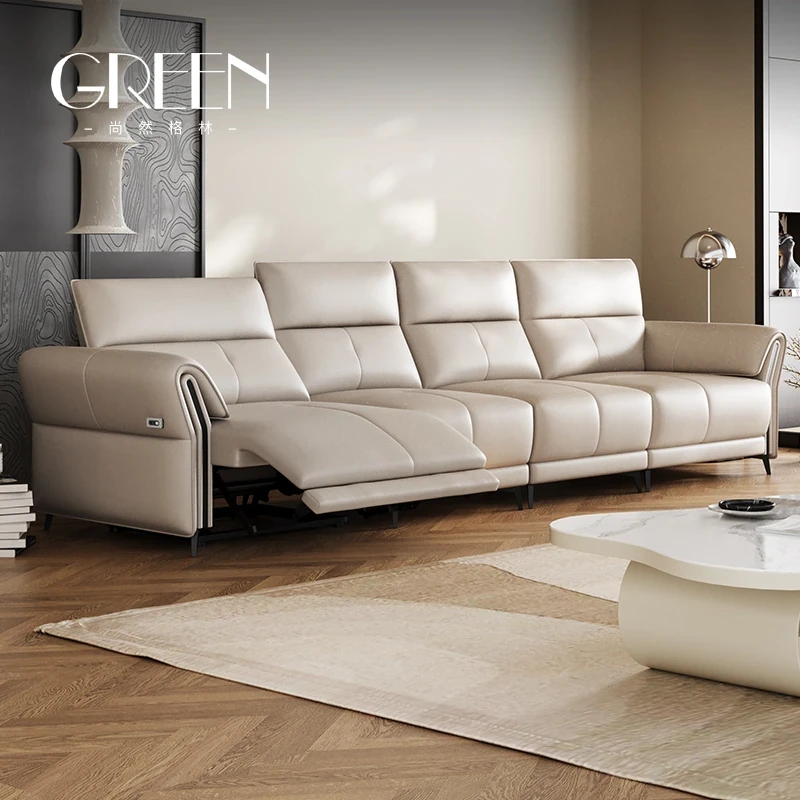 Italian Minimalist Electric Sofa for Small Spaces - Luxury Leather Capsule Design, Perfect for 3-4 People in Your Living Room