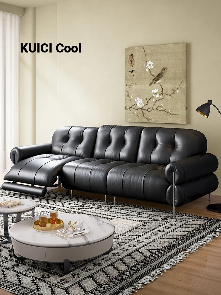 2025 New Vintage French Electric Sofa - Wall-Hugging, Retractable Leather Cloud Chair in Black
