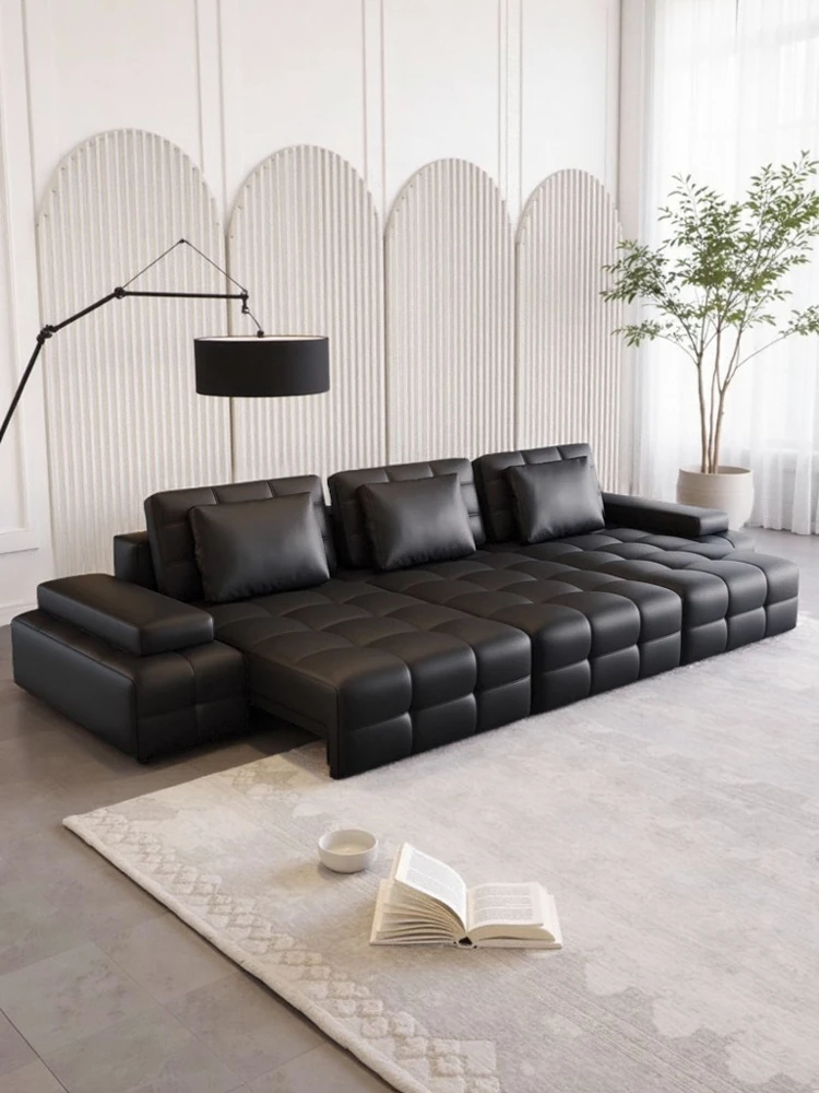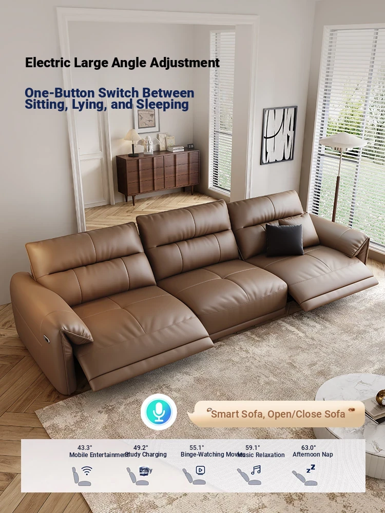 Modern Adjustable Electric Sofa Bed - Space-Saving Design for Minimalist Living Rooms, Deep Seating with Dual Functionality, Made of Genuine Leather