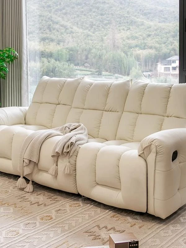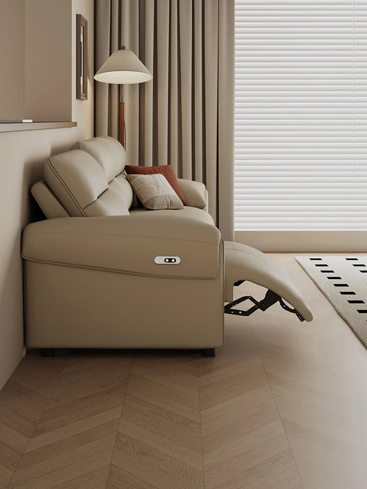 Genuine Leather Electric Reclining Sofa - Creamy Modern Design for Small Spaces, Adjustable Space Capsule Style for Living Rooms