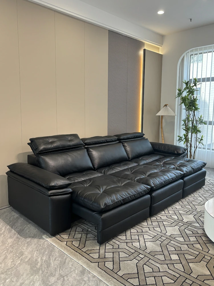 Zero Wall Cloud Electric Multifunctional Genuine Leather Sofa - French Vintage Style Black Top Grain Leather Sofa Bed for Your Stylish Living Room