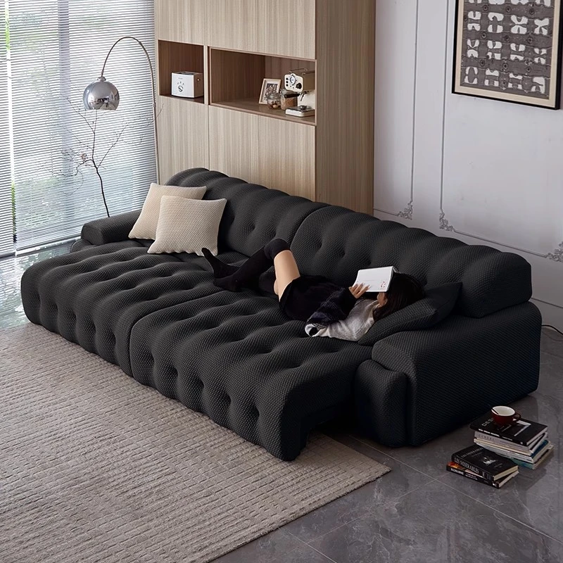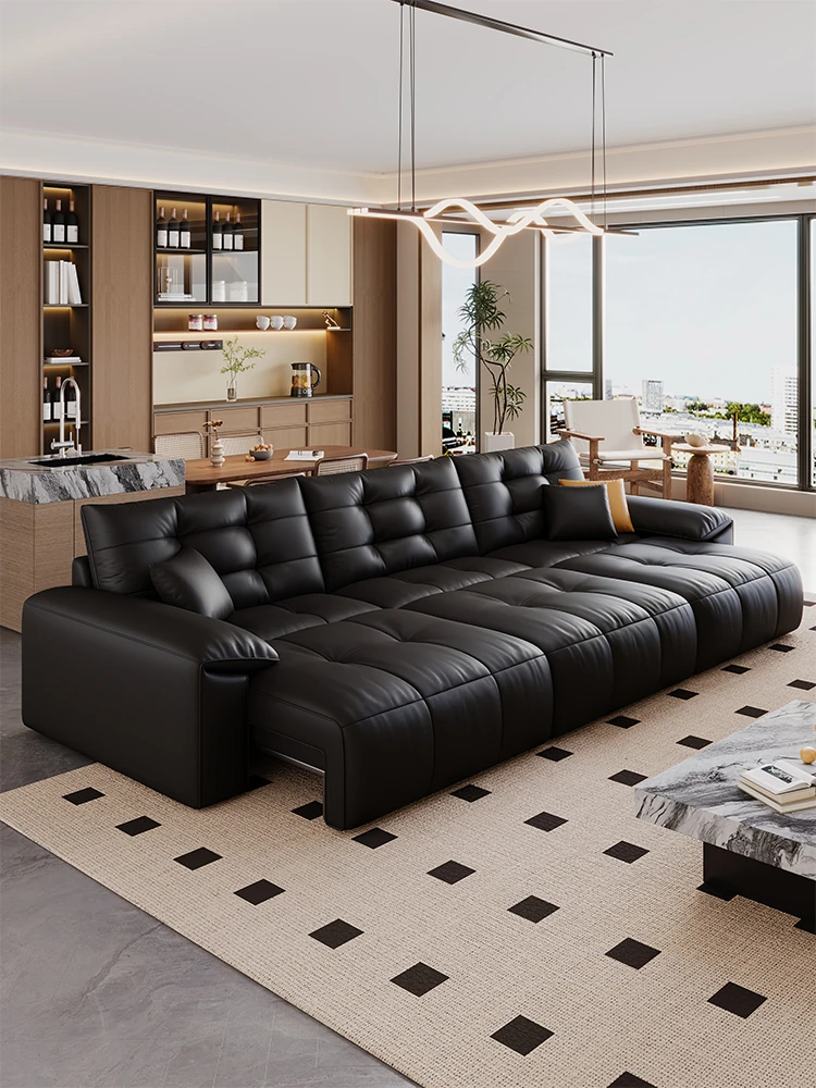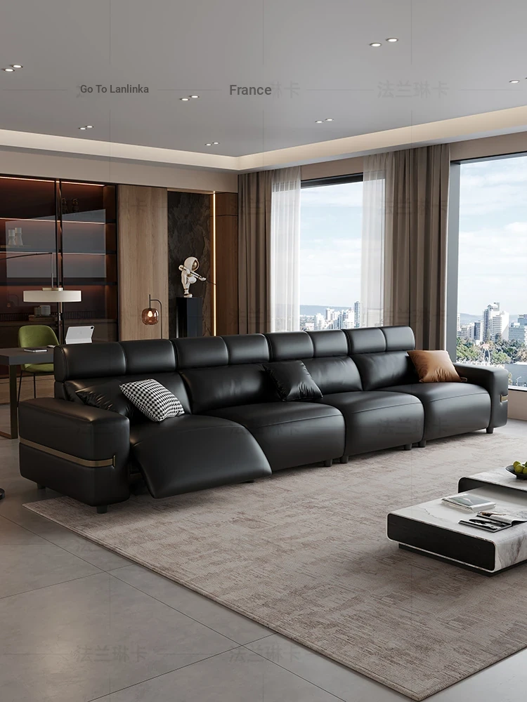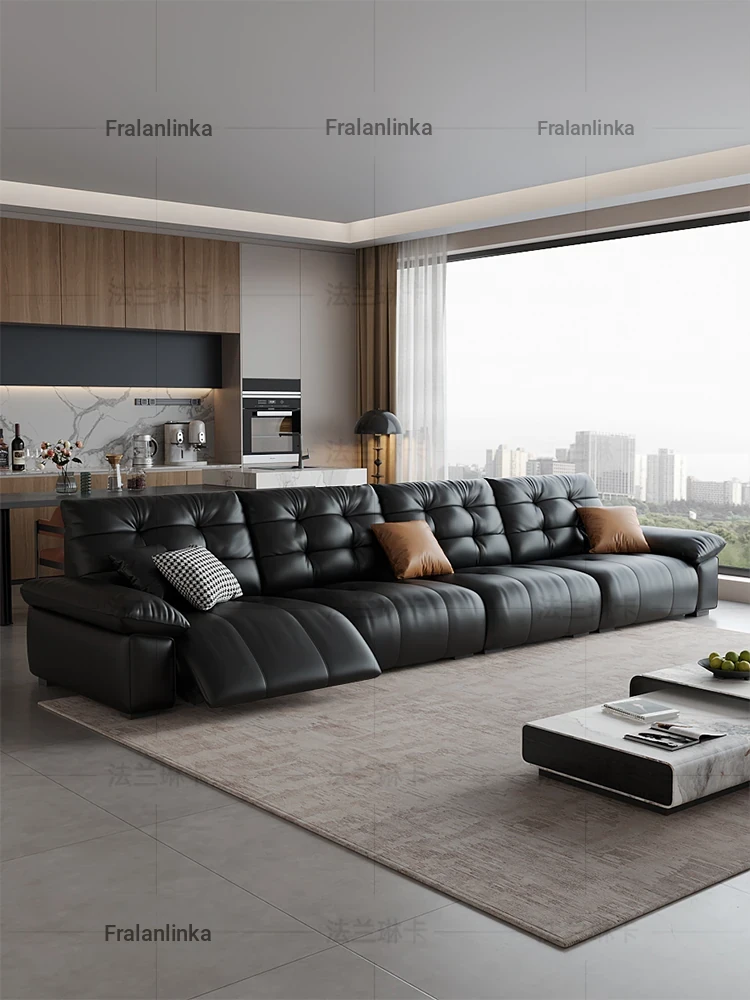 Modern Italian Minimalist Electric Multifunctional Genuine Leather Sofa - Sleek Black Straight-Line Design for Your Living Room - Stylish New Addition!