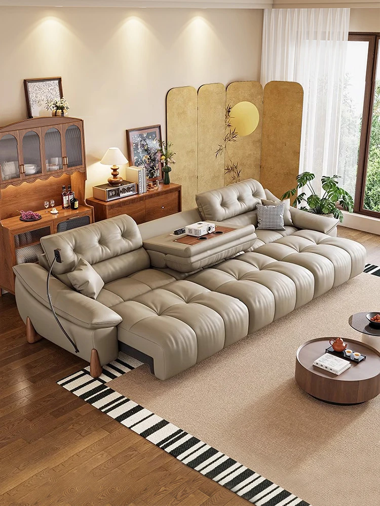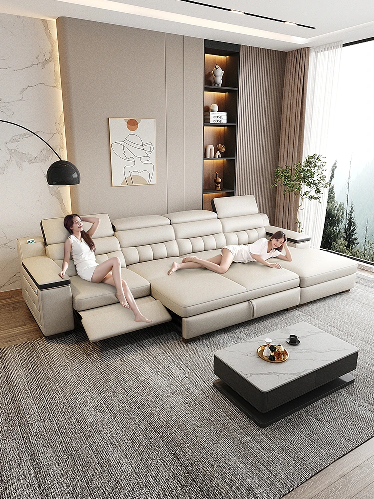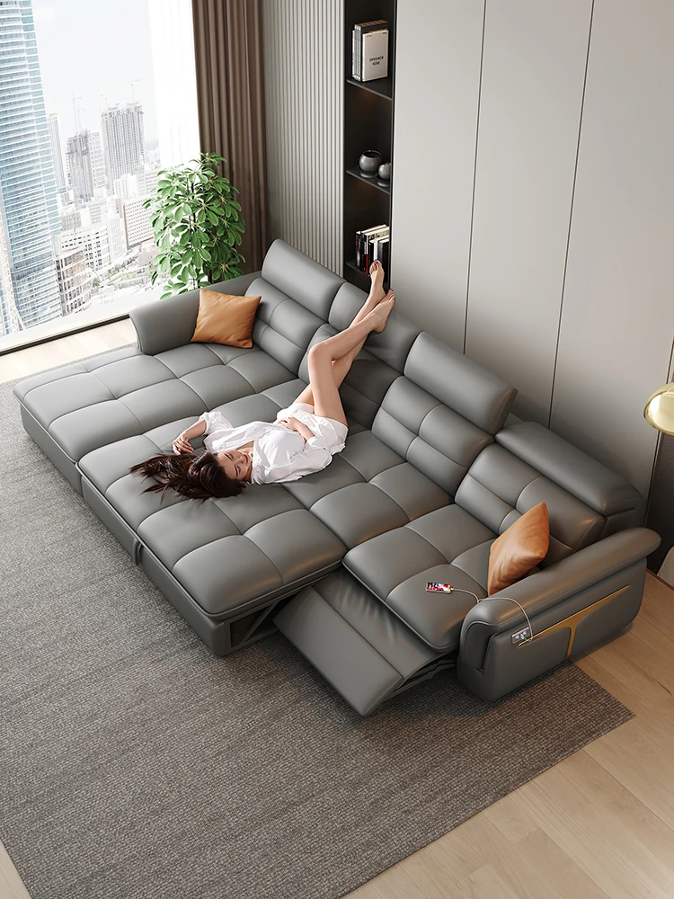 2024 New Arrival: Modern Minimalist Genuine Leather Sofa Bed - Electric Multifunctional Design, Perfect for 3-4 People Living Room Combo