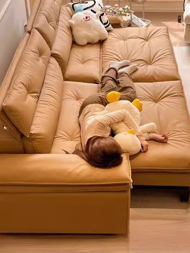 Modern Minimalist Wall-Free All-Electric Nappa Leather Sofa Bed - Versatile Extendable Genuine Leather Sofa for Living Room