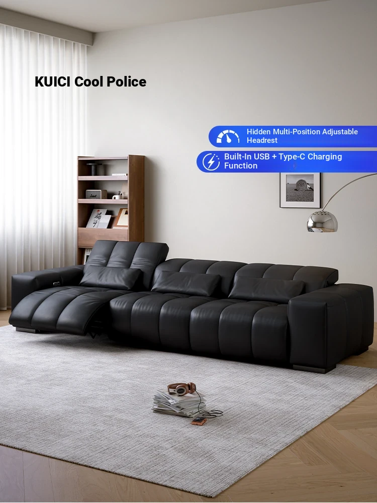 Piano Key Functional Genuine Leather Sofa - First-Class Style for Living Room, Wall-Mounted, Electric Reclining, Premium Cowhide Sofa for Small Spaces