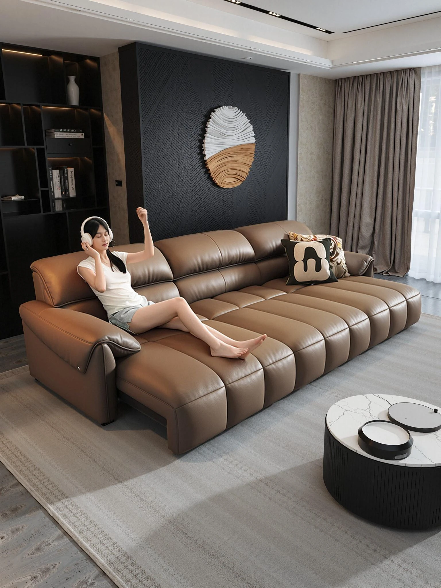 Modern Minimalist Electric Sofa Set - Multifunctional Expandable Lounge - Genuine Leather Sofa in Top-Grade Cowhide for Any Living Space