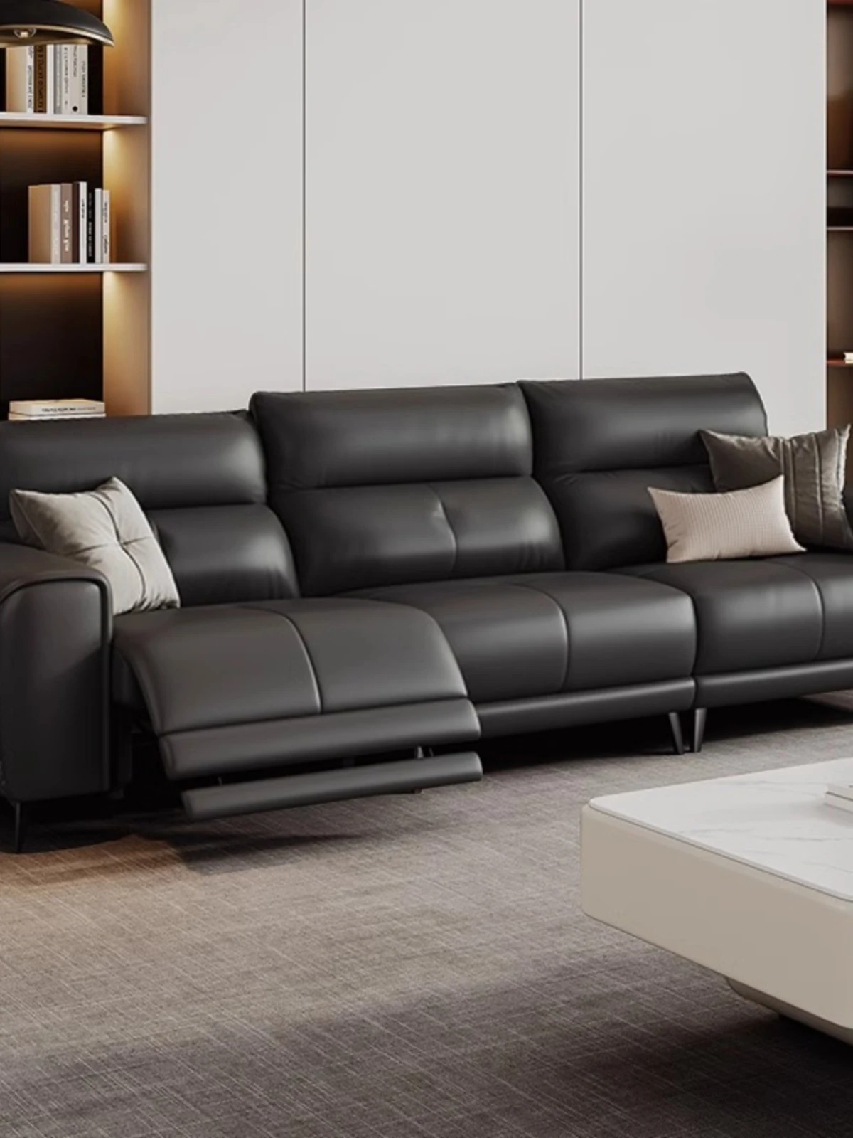 Italian Minimalist Electric Reclining Genuine Leather Sofa - Wall-Hugging Design for Modern Living Rooms, Adjustable and Space-Saving with Straight Lines
