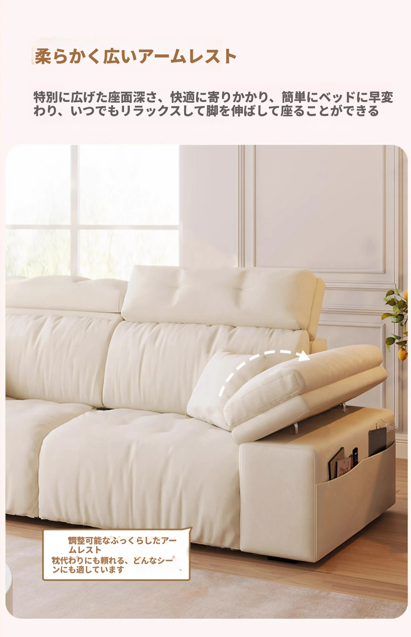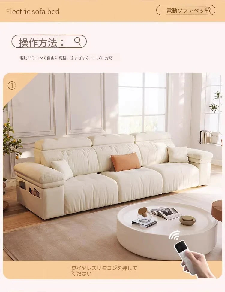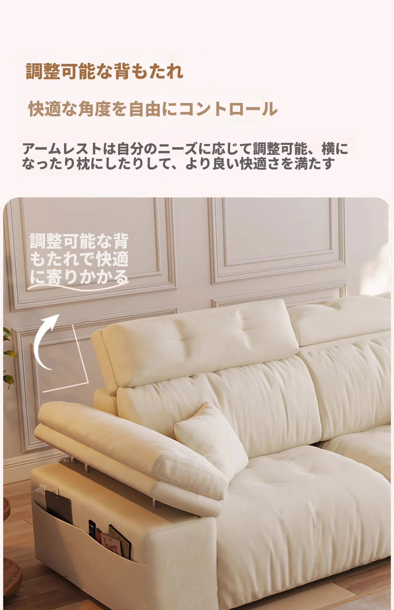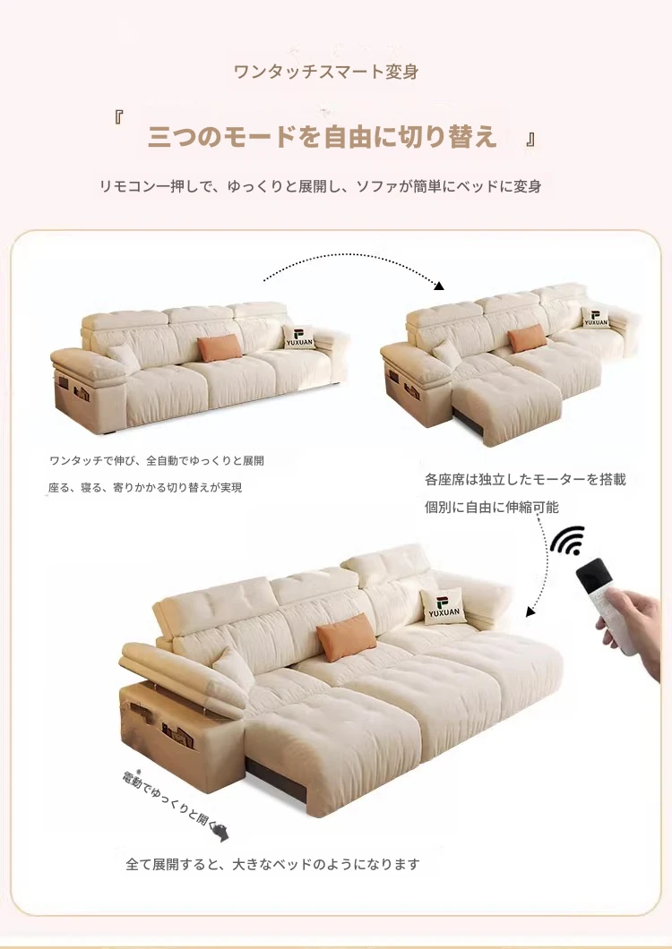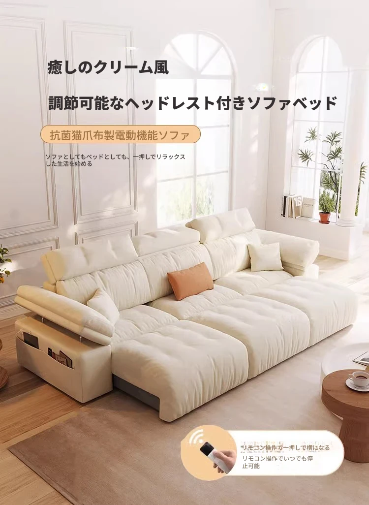 2025年新作!クリーミー風電動多機能ソファベッド - 猫の爪にも強い布製、伸縮調整可能で折りたたみ式、壁にもぴったりフィット!快適さとスタイルを兼ね備えた理想的なインテリア。