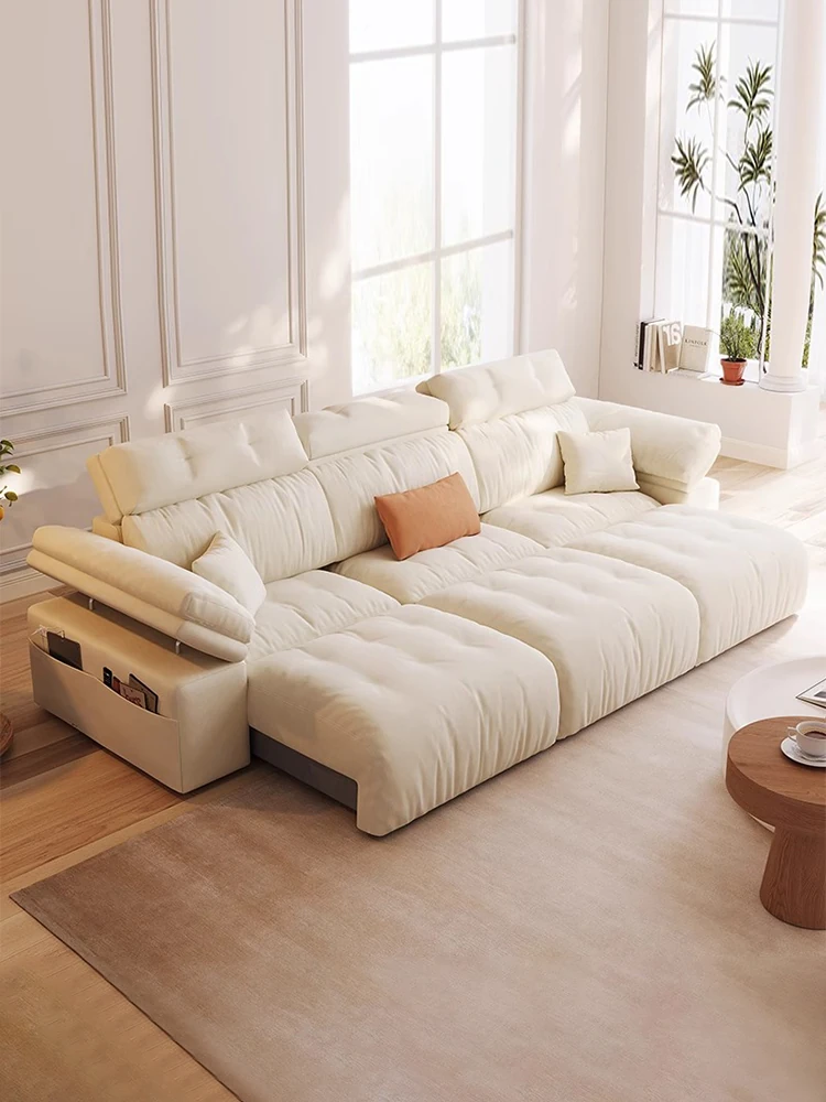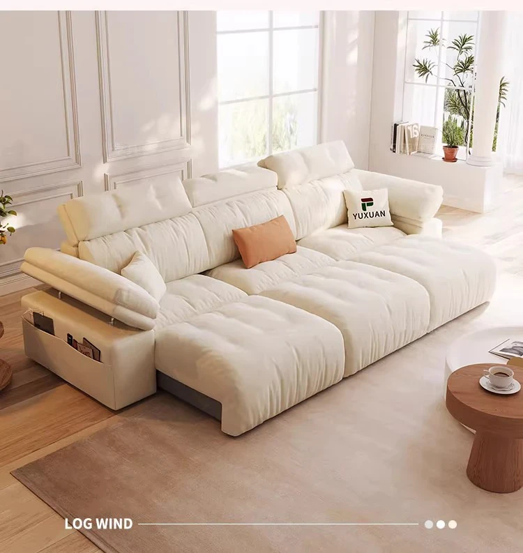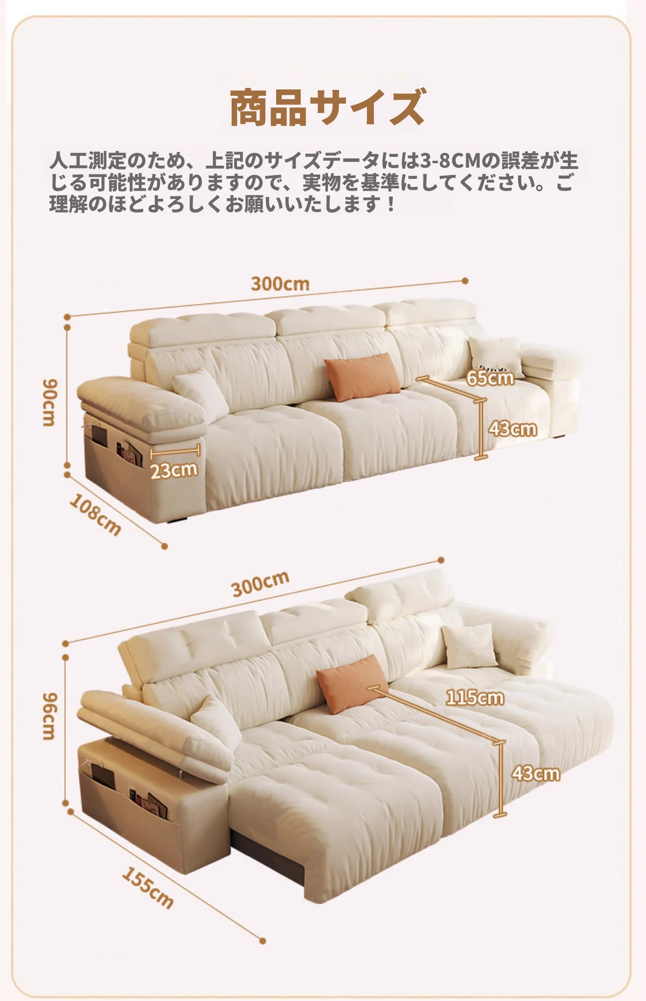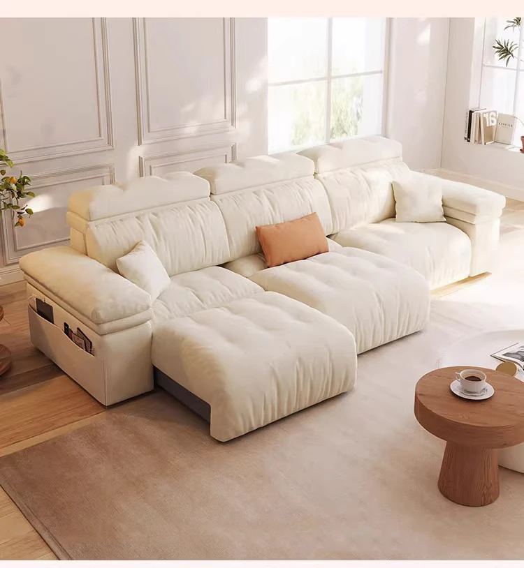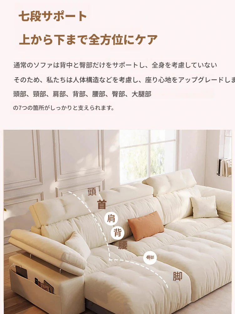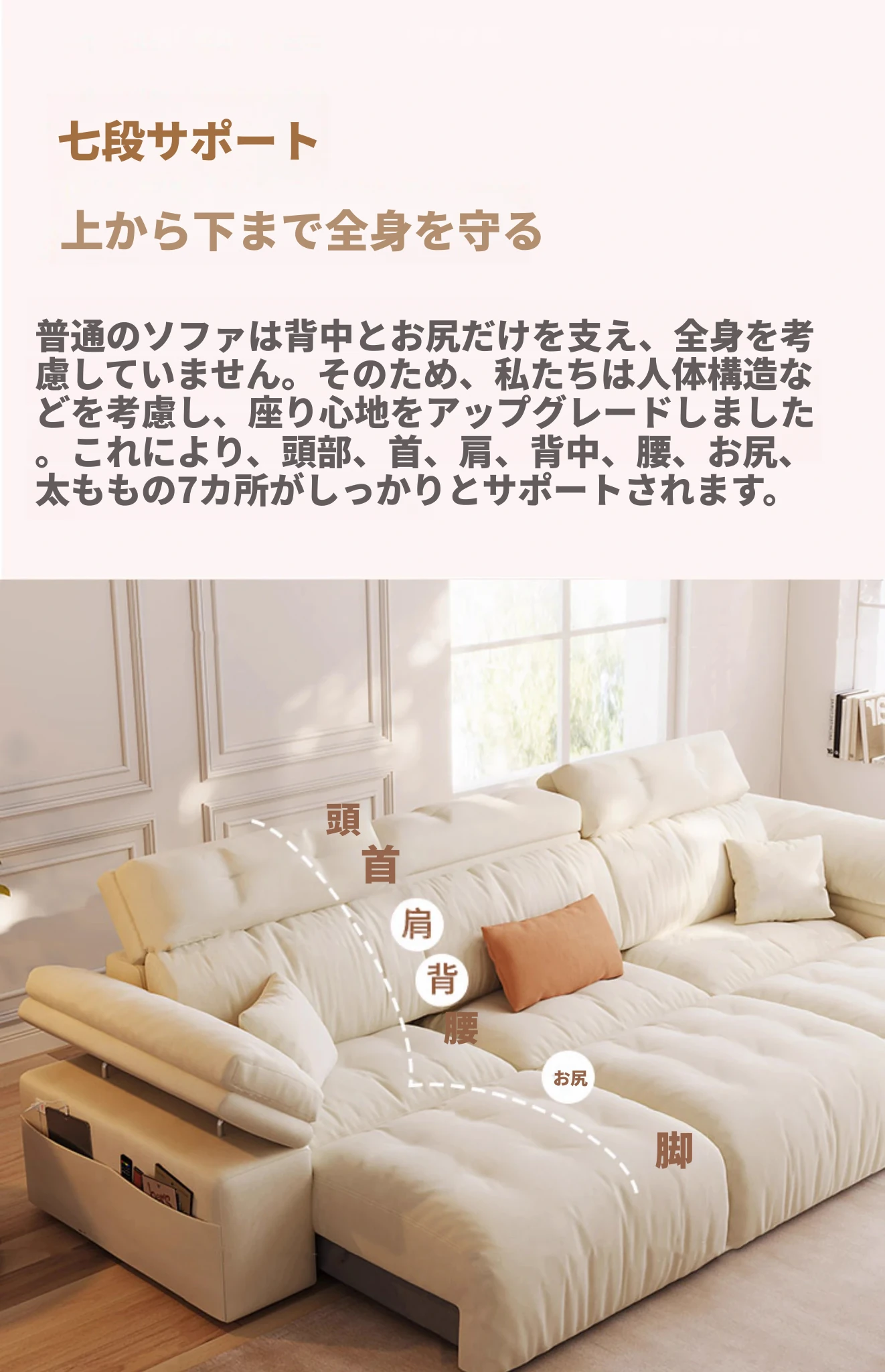 2025年新作!クリーミー風電動多機能ソファベッド - 猫の爪にも強い布製、伸縮調整可能で折りたたみ式、壁にもぴったりフィット!快適さとスタイルを兼ね備えた理想的なインテリア。