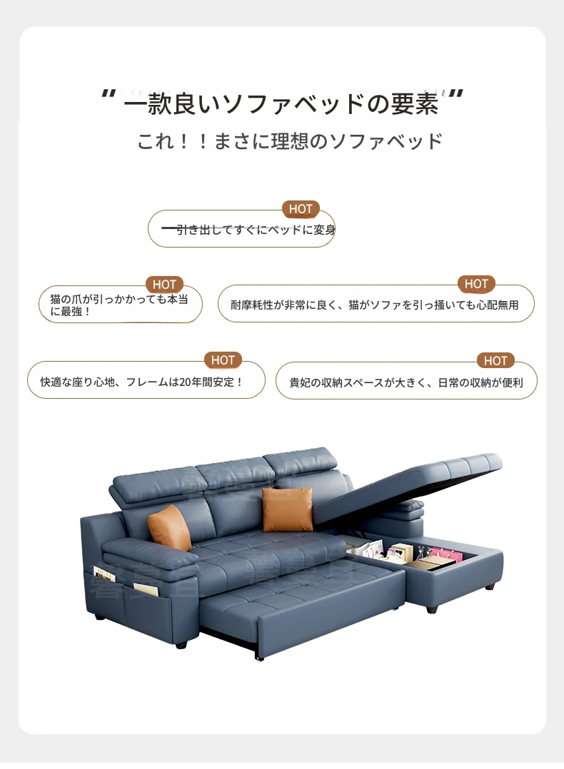 2025年新作!折りたたみソファベッド - 高級感あふれる多機能リビング用、収納付きで猫の爪対策もバッチリ!おしゃれなファブリックで、空間を有効活用できる貴婦人スタイル。