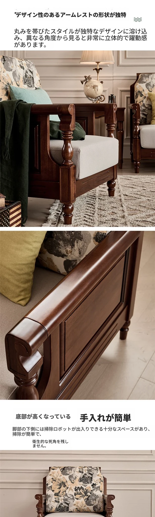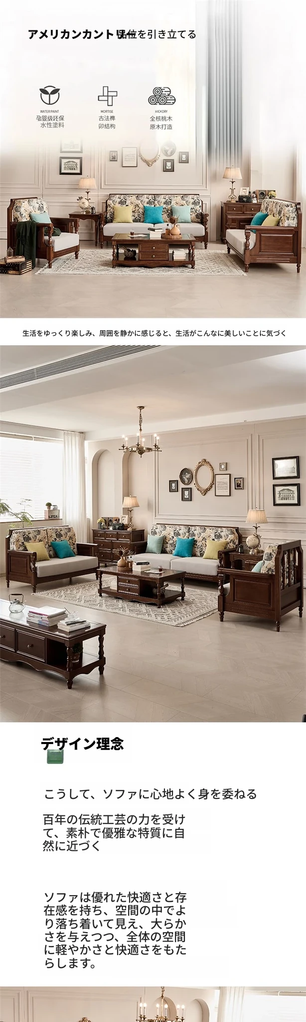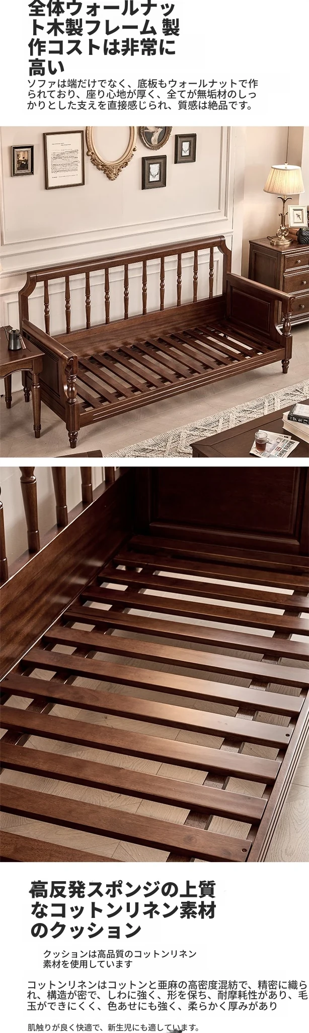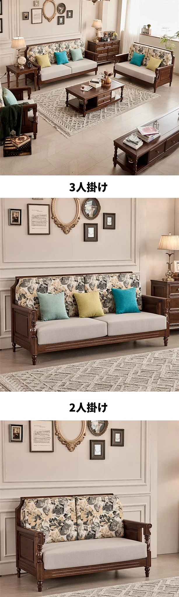 アメリカンスタイルの無垢材製カバー付きU字型ソファ - 小型リビングに最適なカントリー風レトロ家具、3人掛けのコンパクトデザイン!