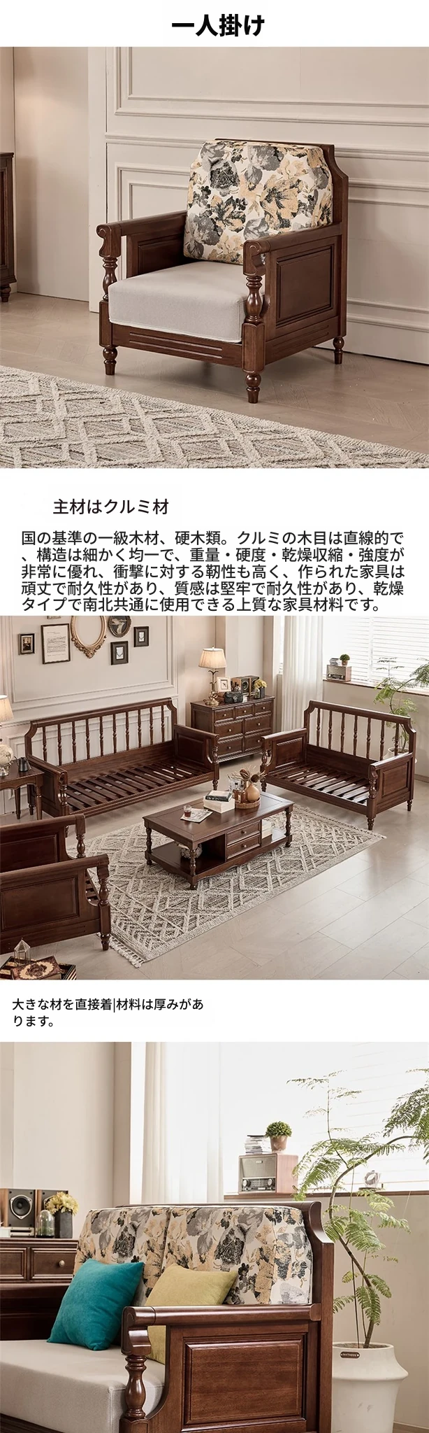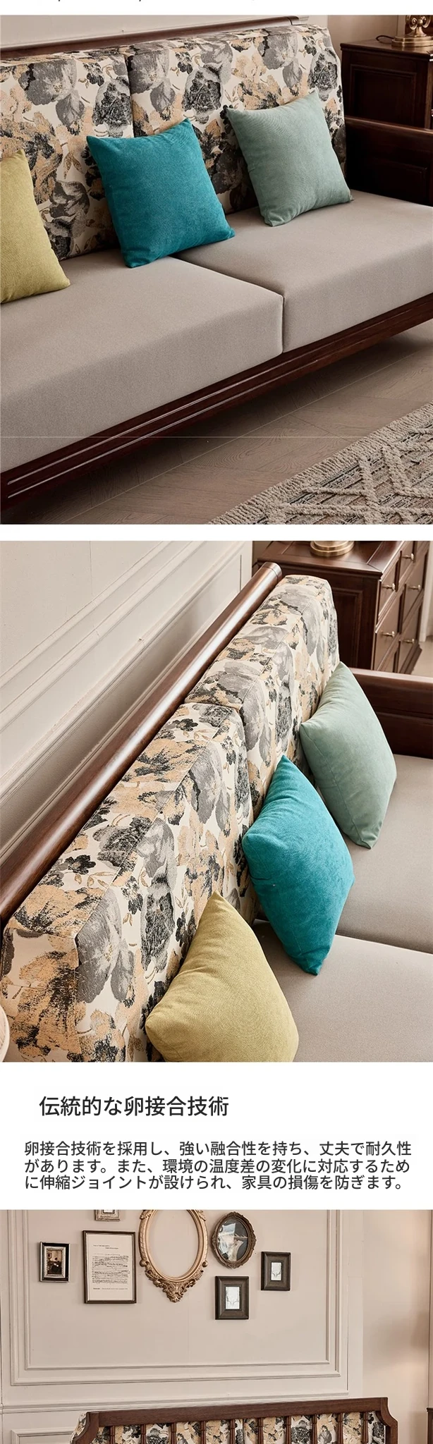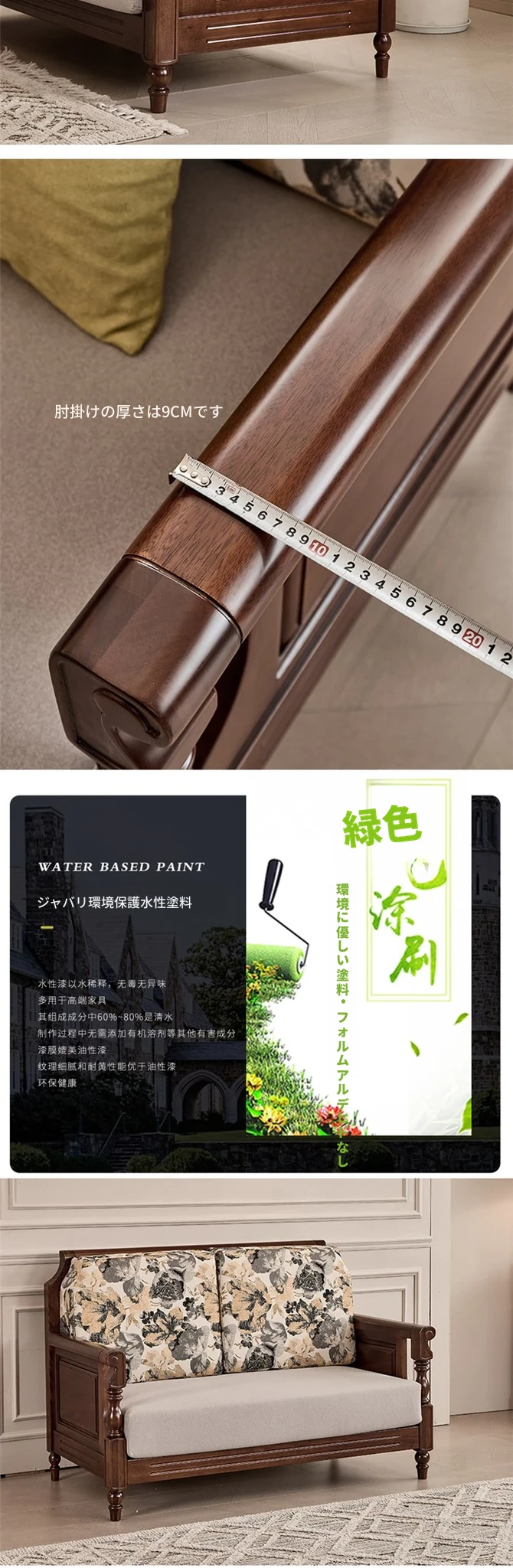 アメリカンスタイルの無垢材製カバー付きU字型ソファ - 小型リビングに最適なカントリー風レトロ家具、3人掛けのコンパクトデザイン!