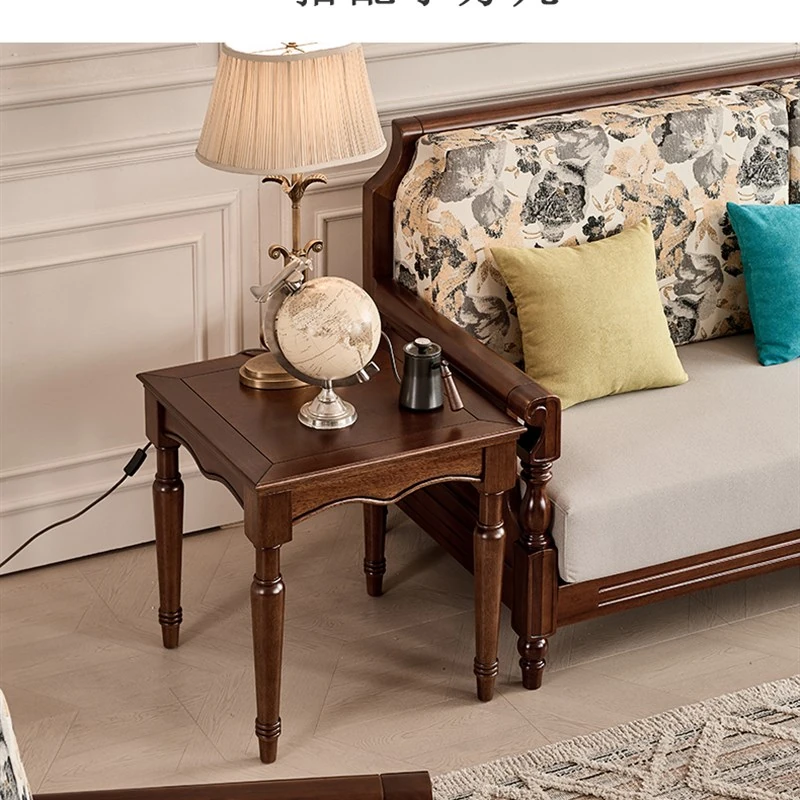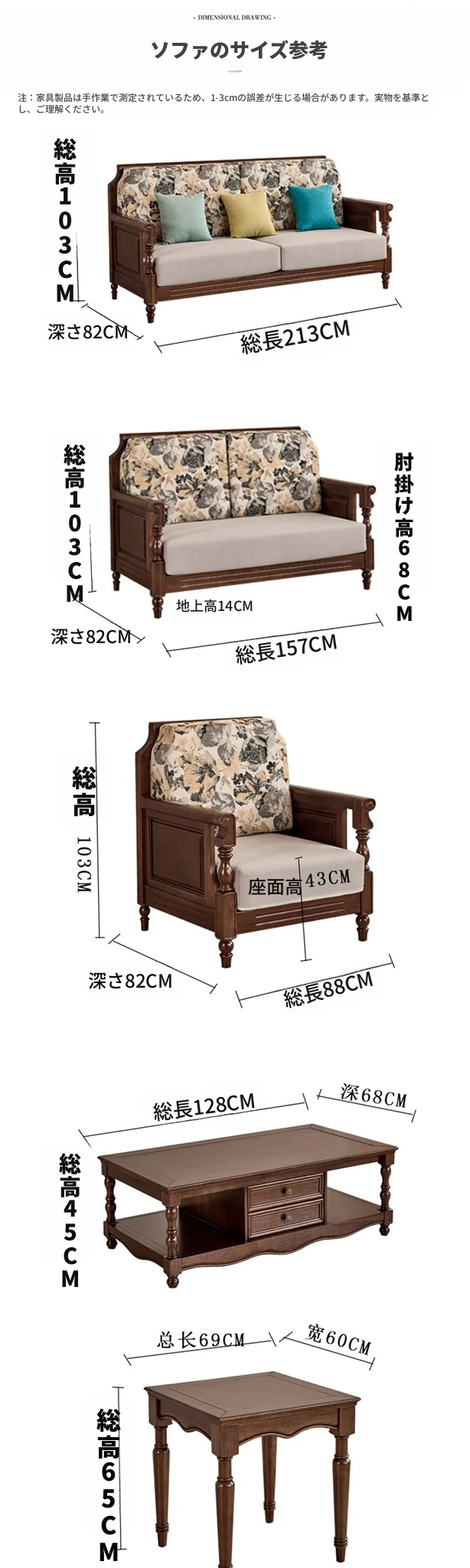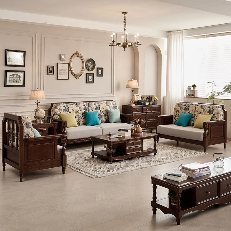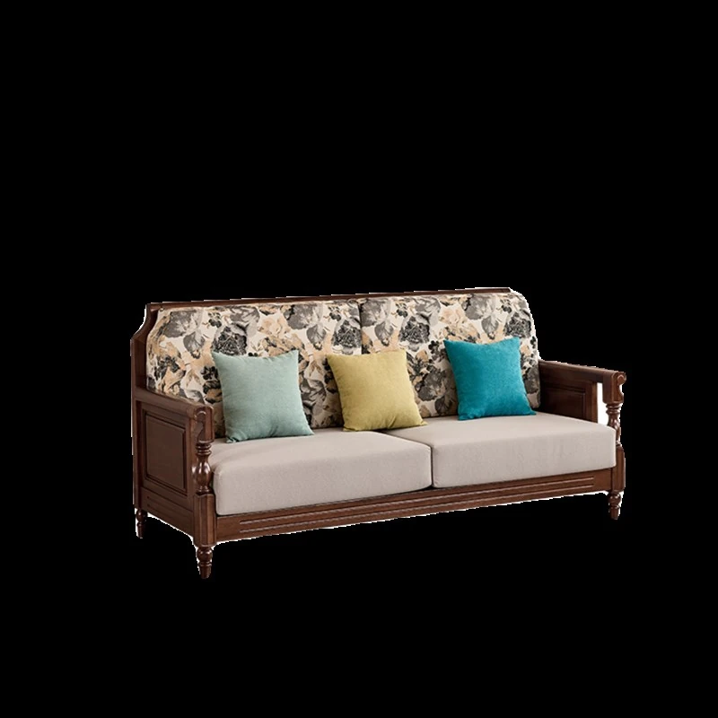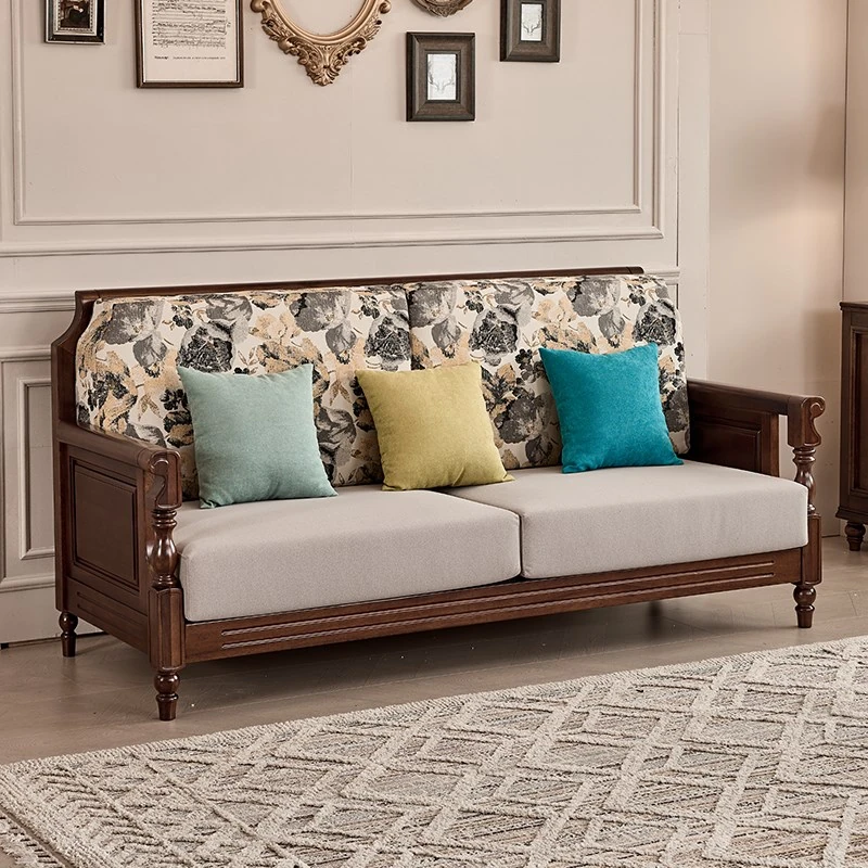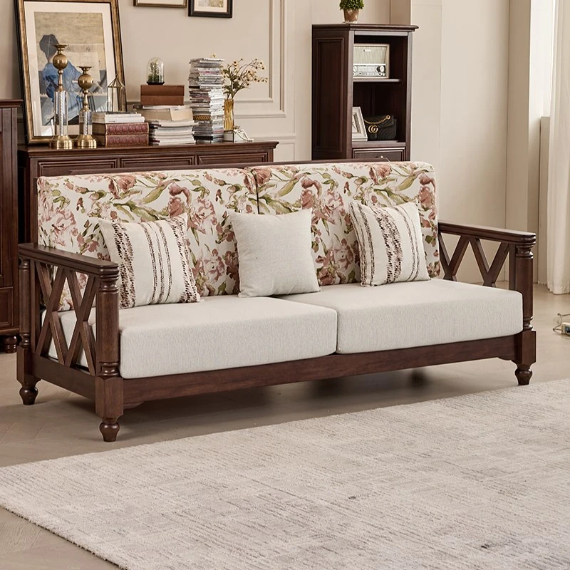 アメリカンスタイルの無垢材製カバー付きU字型ソファ - 小型リビングに最適なカントリー風レトロ家具、3人掛けのコンパクトデザイン!