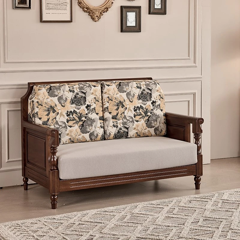 リビングや小さな部屋に最適!シンプルモダンなデザインの無垢材製ソファ。新中式スタイルで、快適さとスタイルを両立。小さなお部屋にもぴったりなコンパクトサイズ!