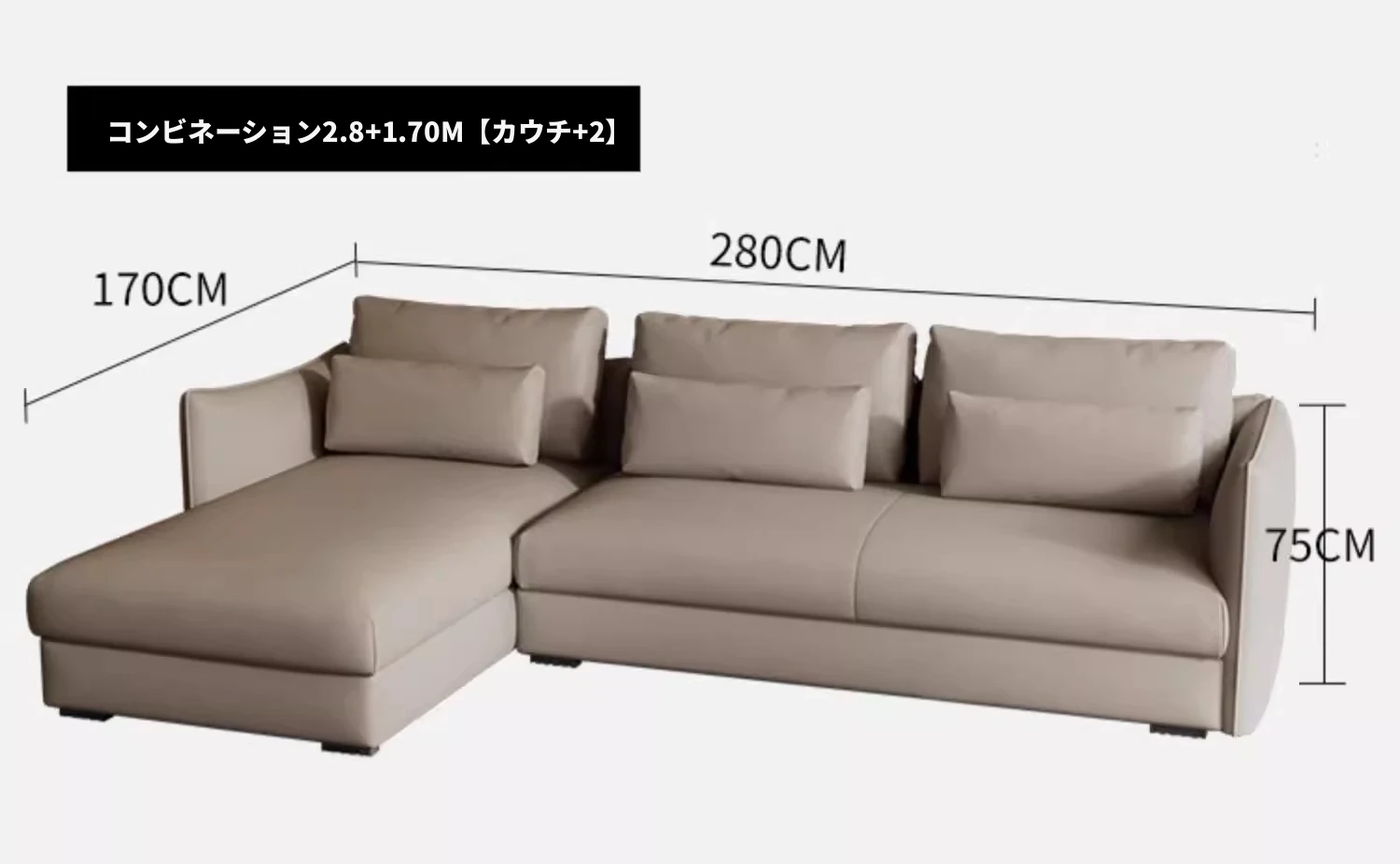 【高級オリジナル S級 厚手のトップレザー + 環境に優しいダウン座包 香奈儿ソファ】直置き2.8メートル