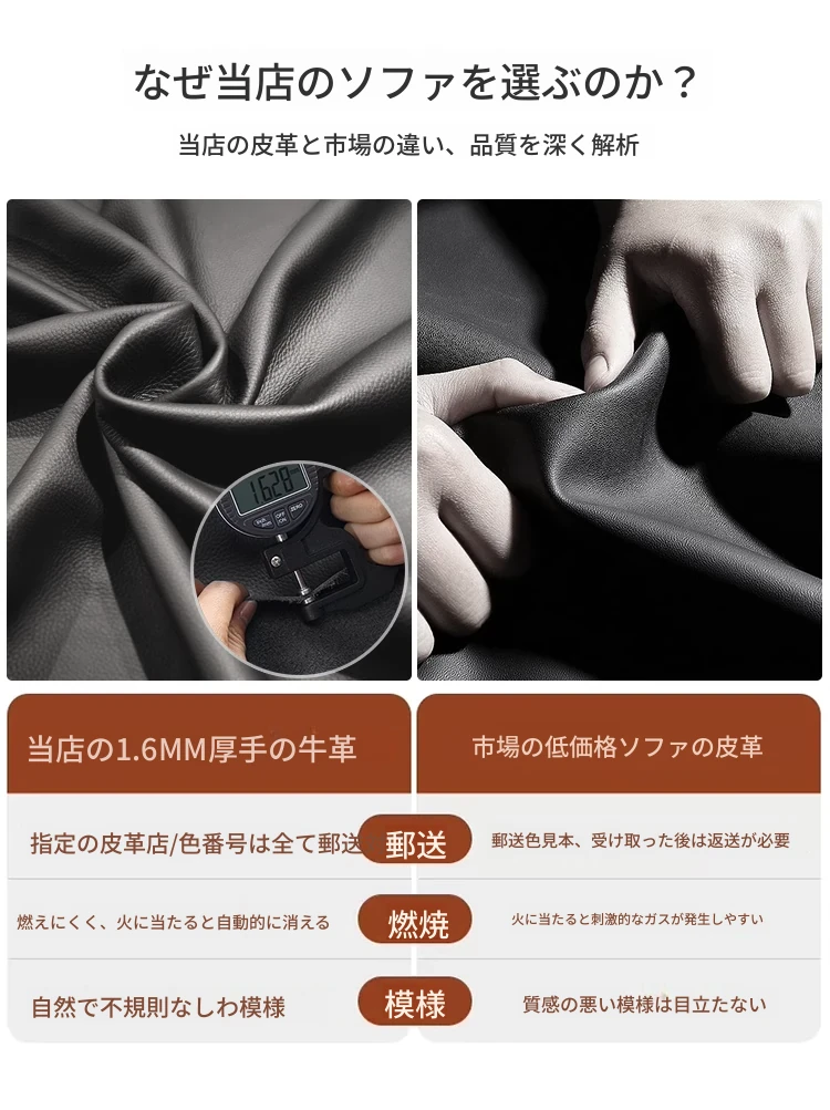 【高級オリジナル S級 厚手のトップレザー + 環境に優しいダウン座包 香奈儿ソファ】直置き2.2メートル