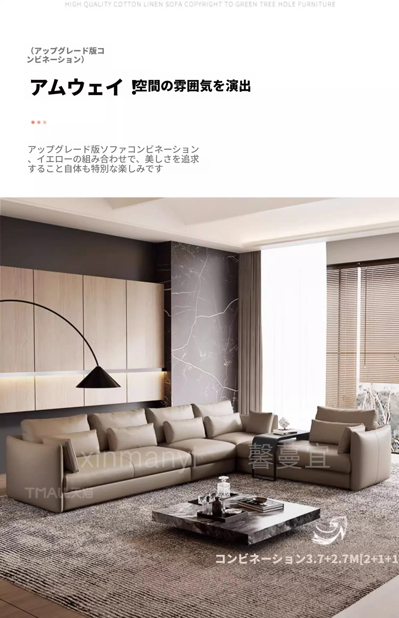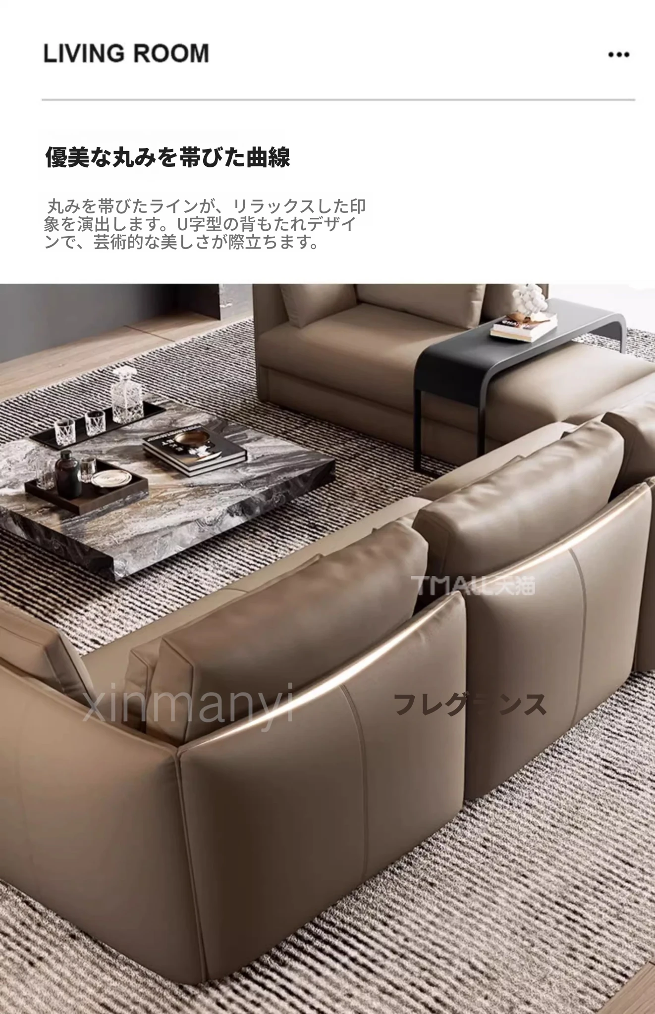 【高級オリジナル S級 厚手のトップレザー + 環境に優しいダウン座包 香奈儿ソファ】直置き3.8メートル