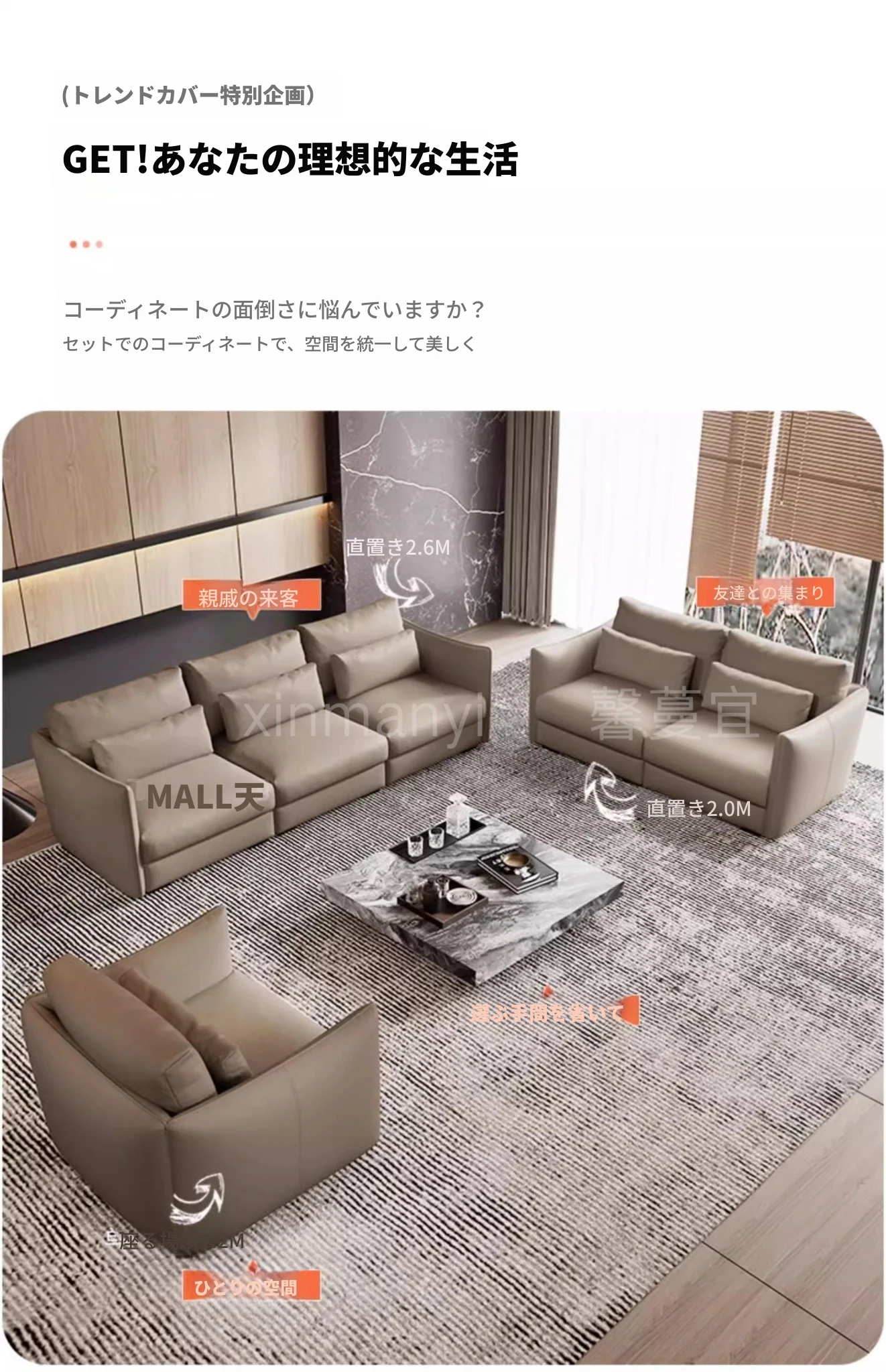 【高級オリジナル S級 厚手のトップレザー + 環境に優しいダウン座包 香奈儿ソファ】直置き3.6メートル