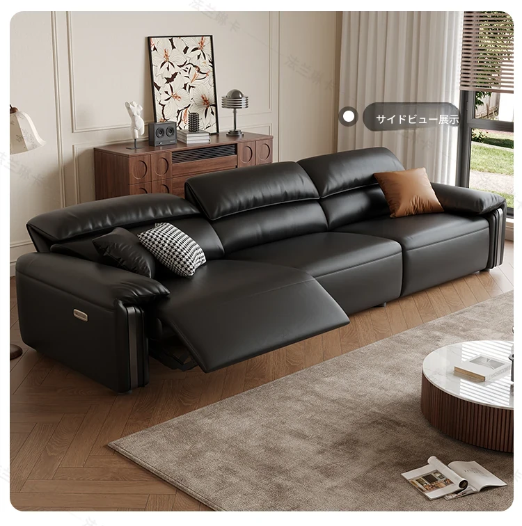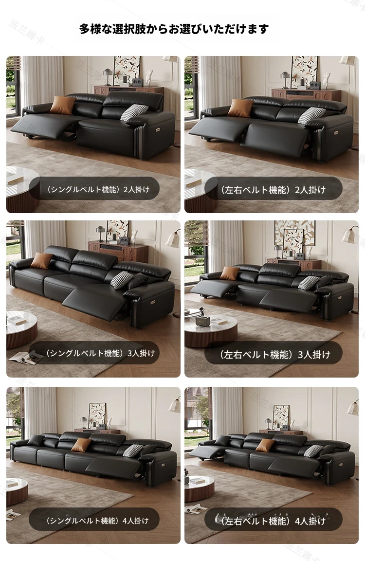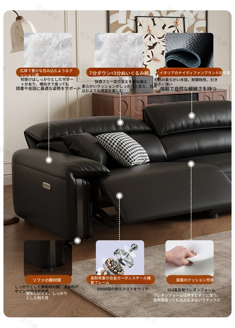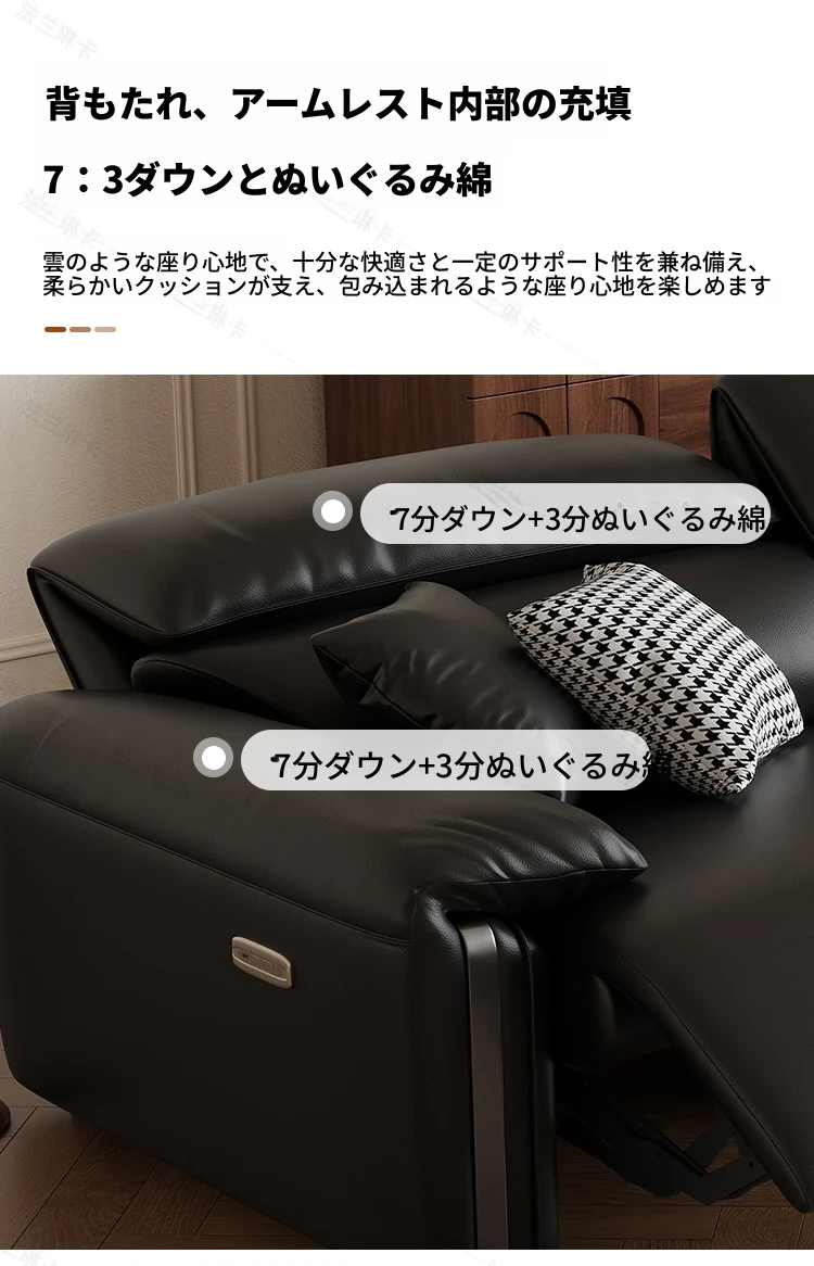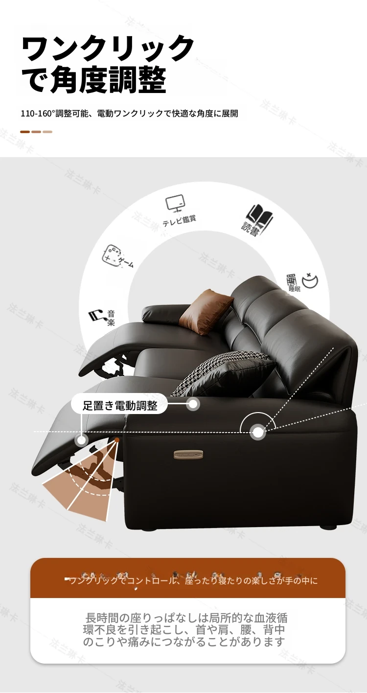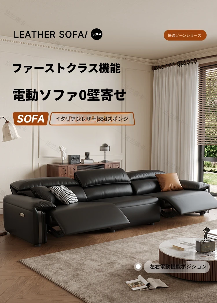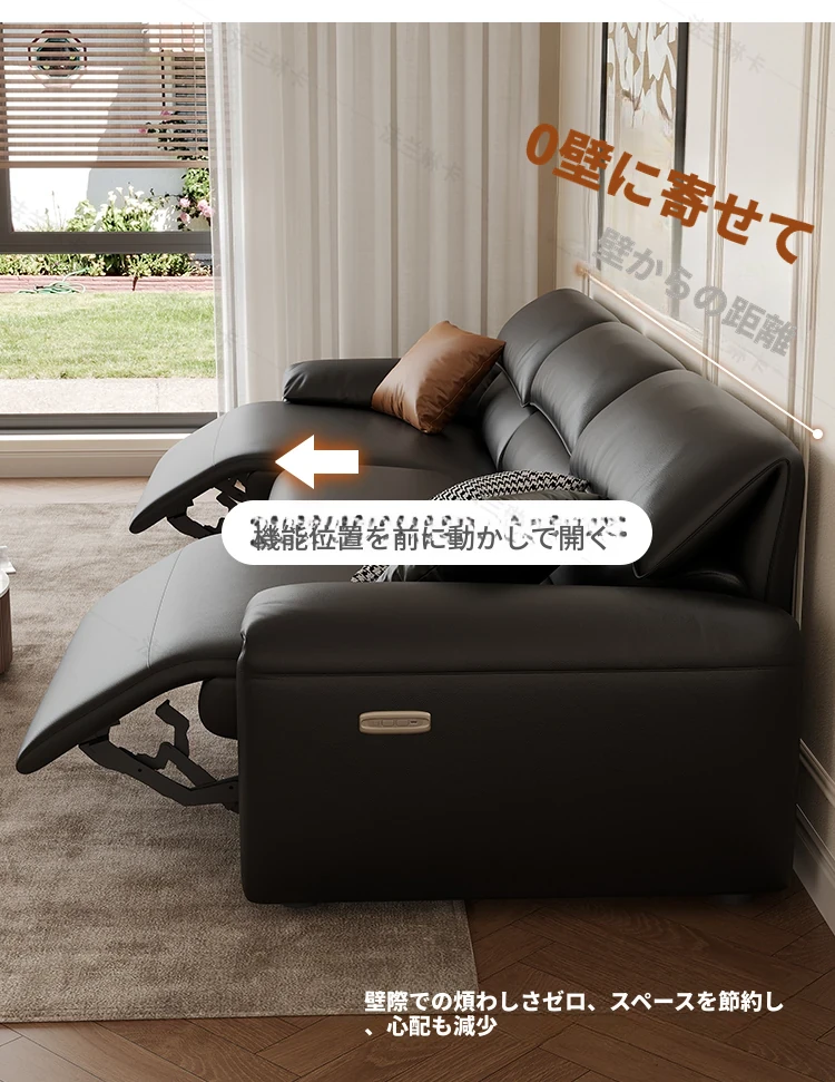 電動機能付き本革ソファ イタリアンミニマリズム 大耳のデザイン リビングやシアターに最適 スリムで調整可能 壁にぴったりフィット!快適な座り心地を実現!