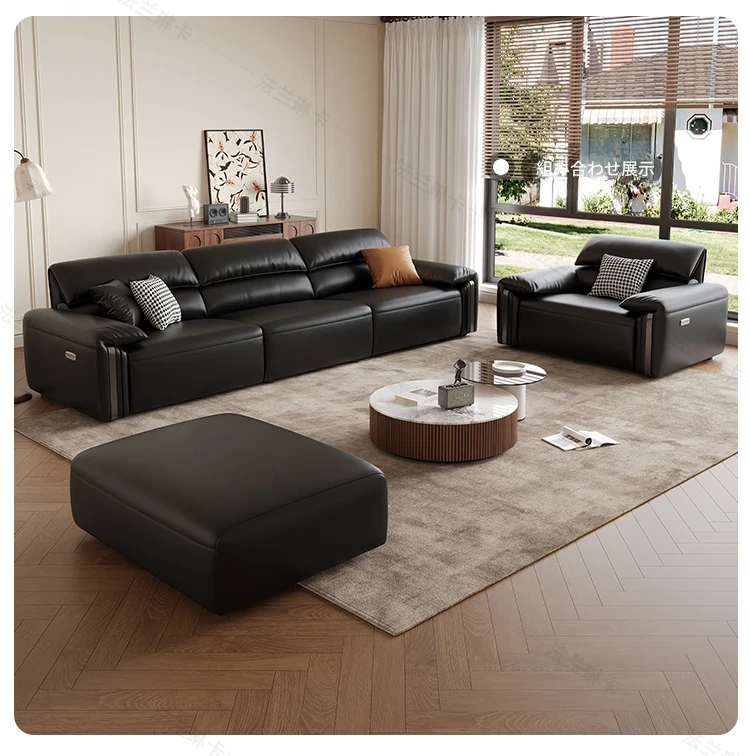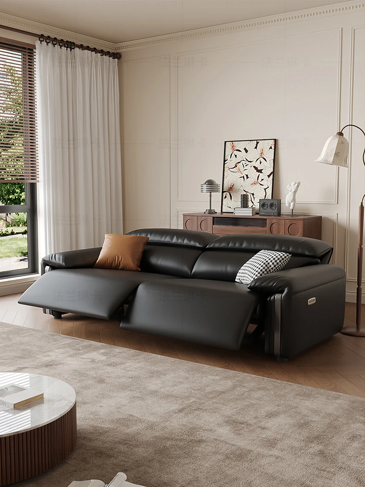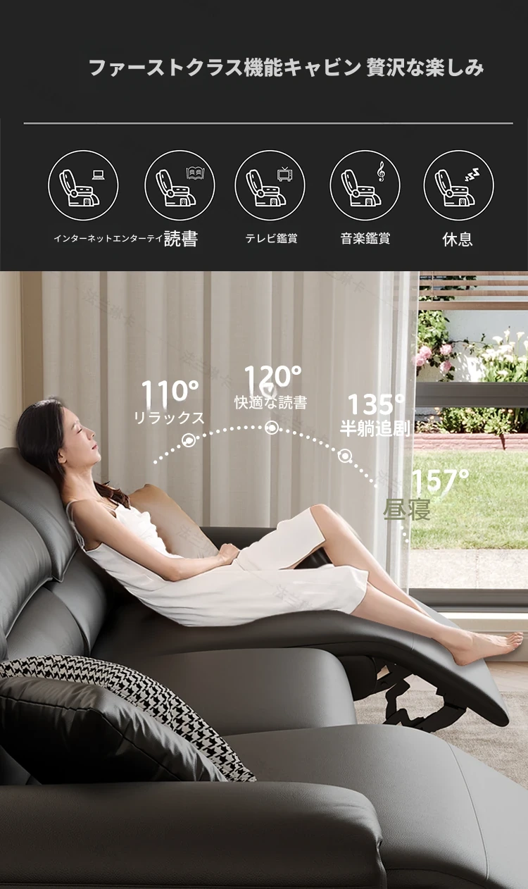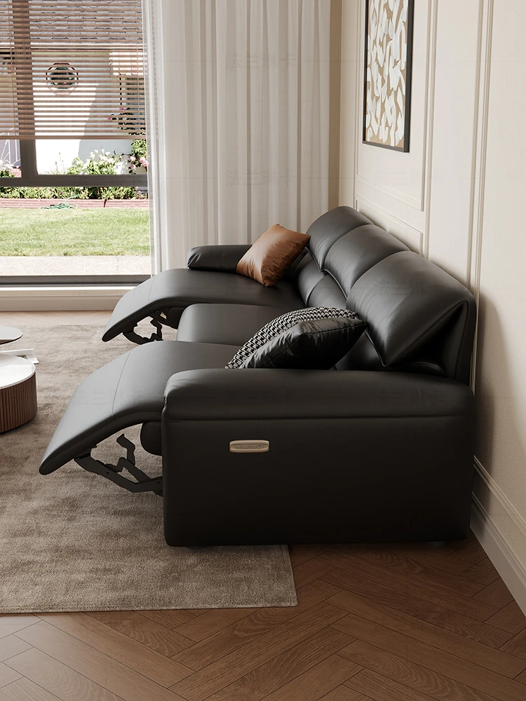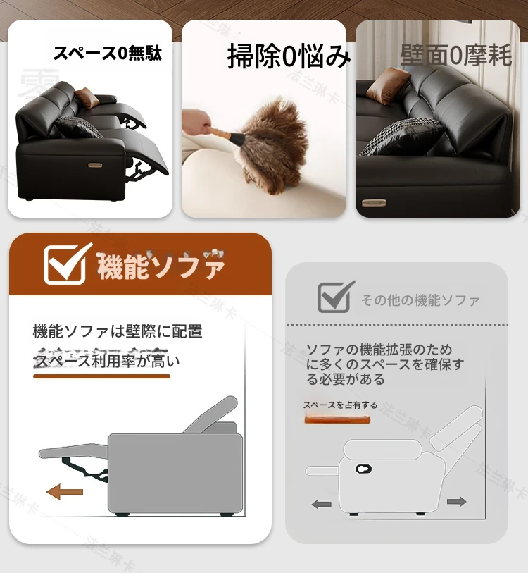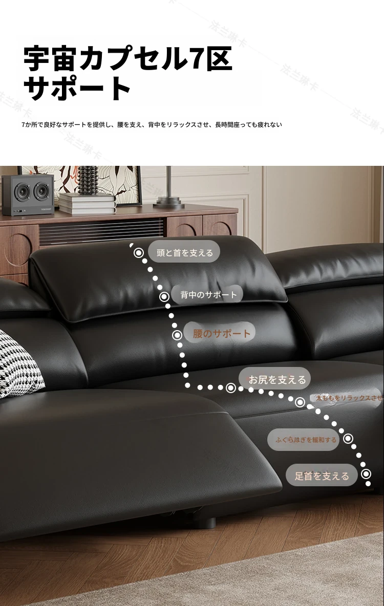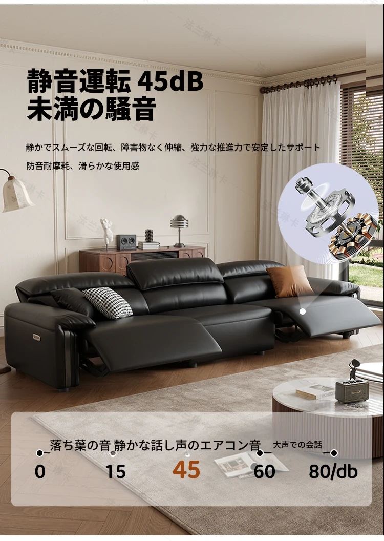 電動機能付き本革ソファ イタリアンミニマリズム 大耳のデザイン リビングやシアターに最適 スリムで調整可能 壁にぴったりフィット!快適な座り心地を実現!