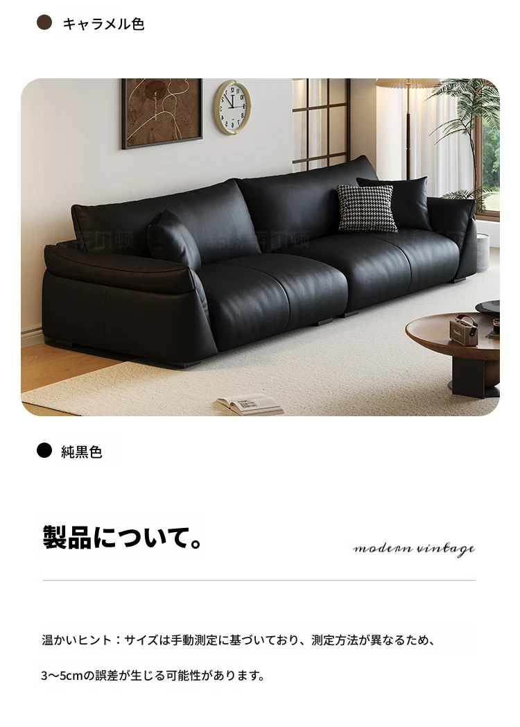 本革ソファ イタリアンミニマリストデザイン 小型住宅向け ヴィンテージスタイル ブラック モダンシンプル 3〜4人掛け リビングルームに最適!おしゃれで機能的な空間を演出します。