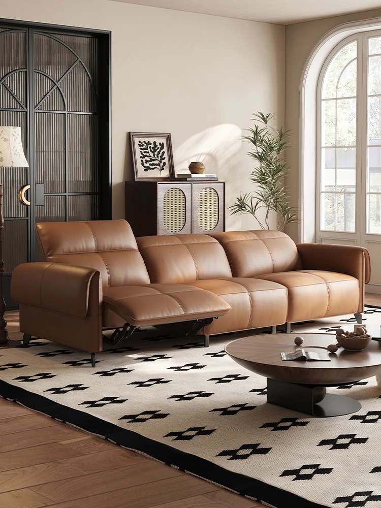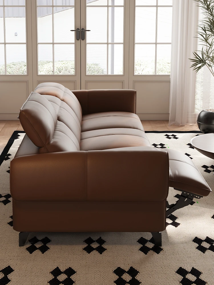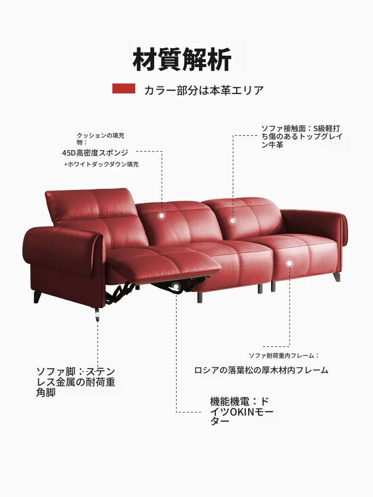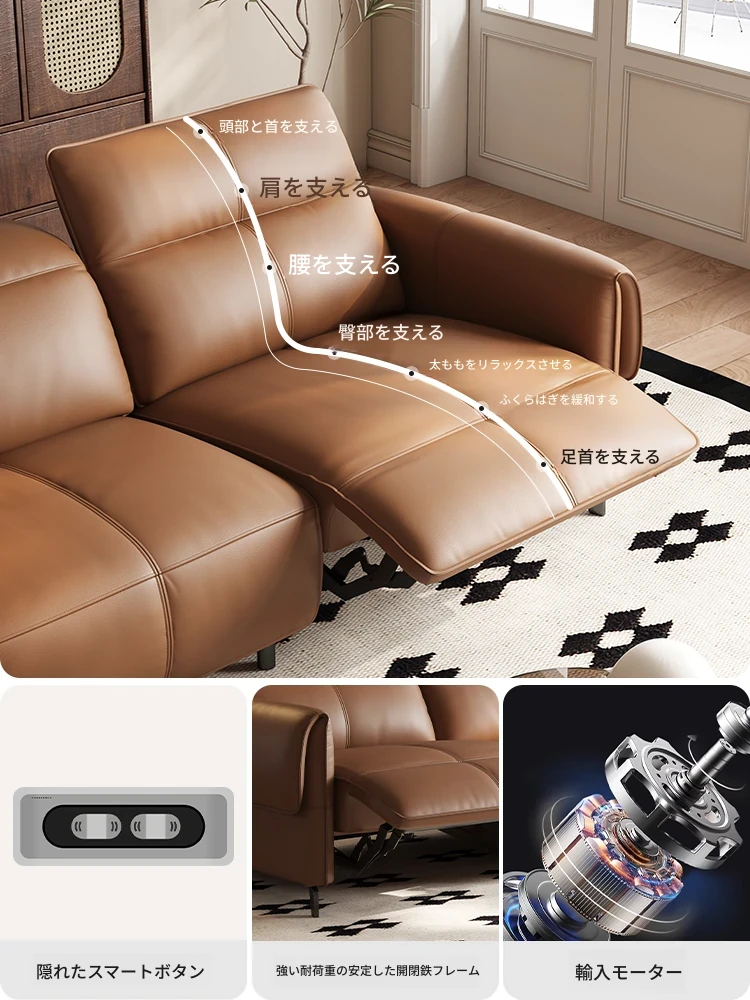 イタリアンミニマルデザイン本革ソファ - 多機能電動ハイエンドゼロウォール三人掛けファーストクラスソファで、贅沢な空間を演出!リラックスできる極上の座り心地をお楽しみください。
